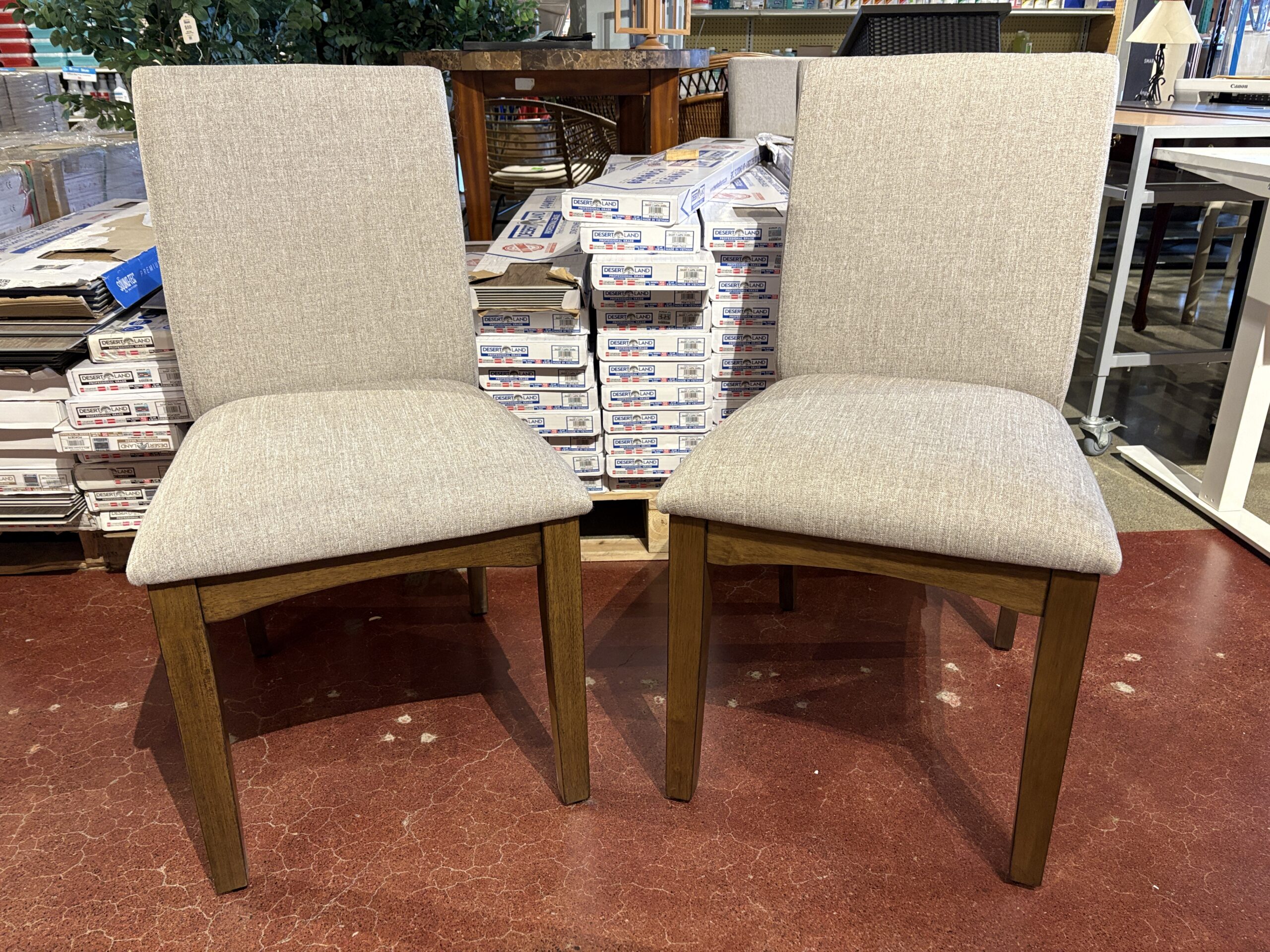 NEW! CARMEL VALLEY Gray Upholstered Walnut Dining Chairs ( Set of 2 )