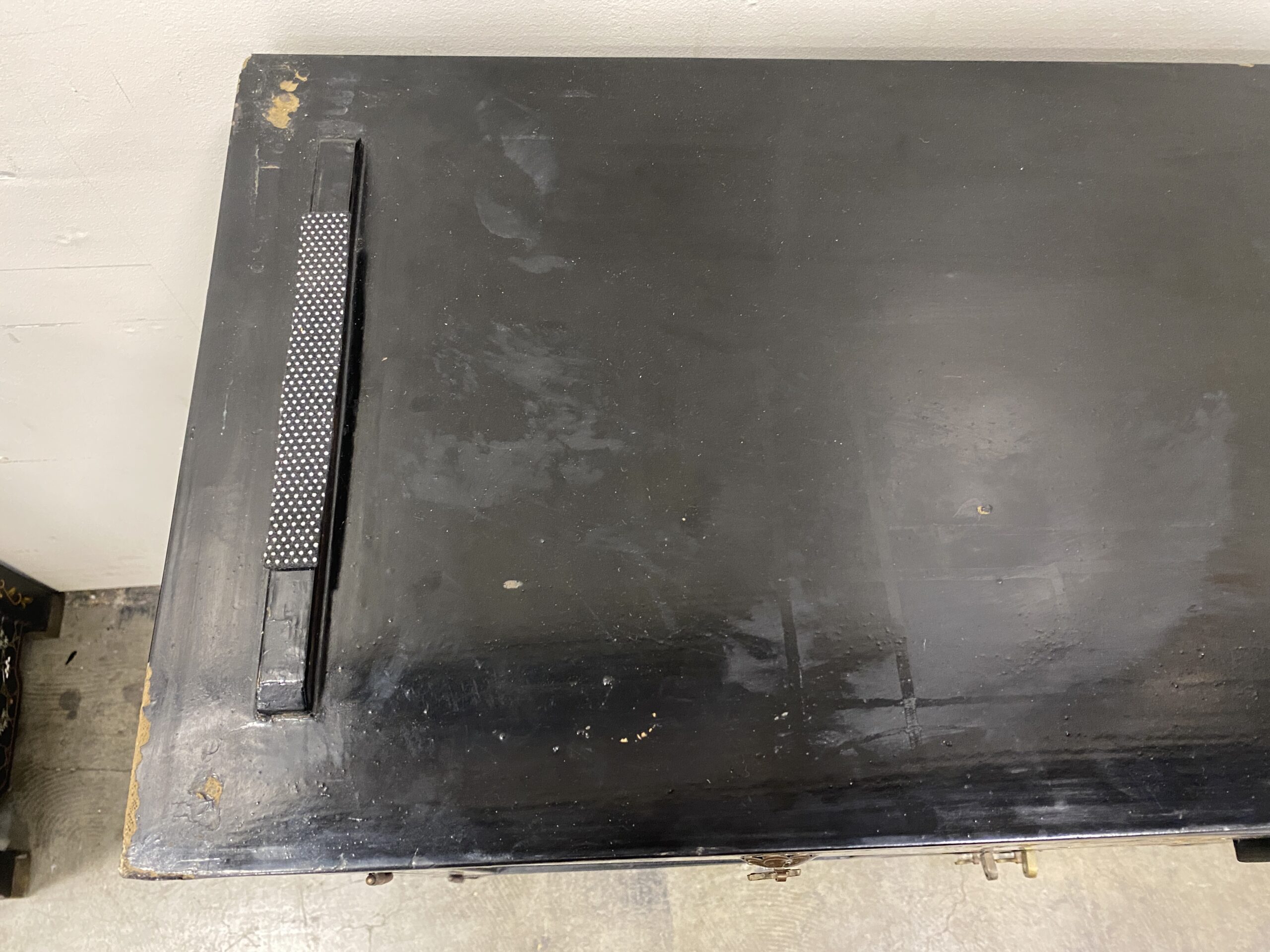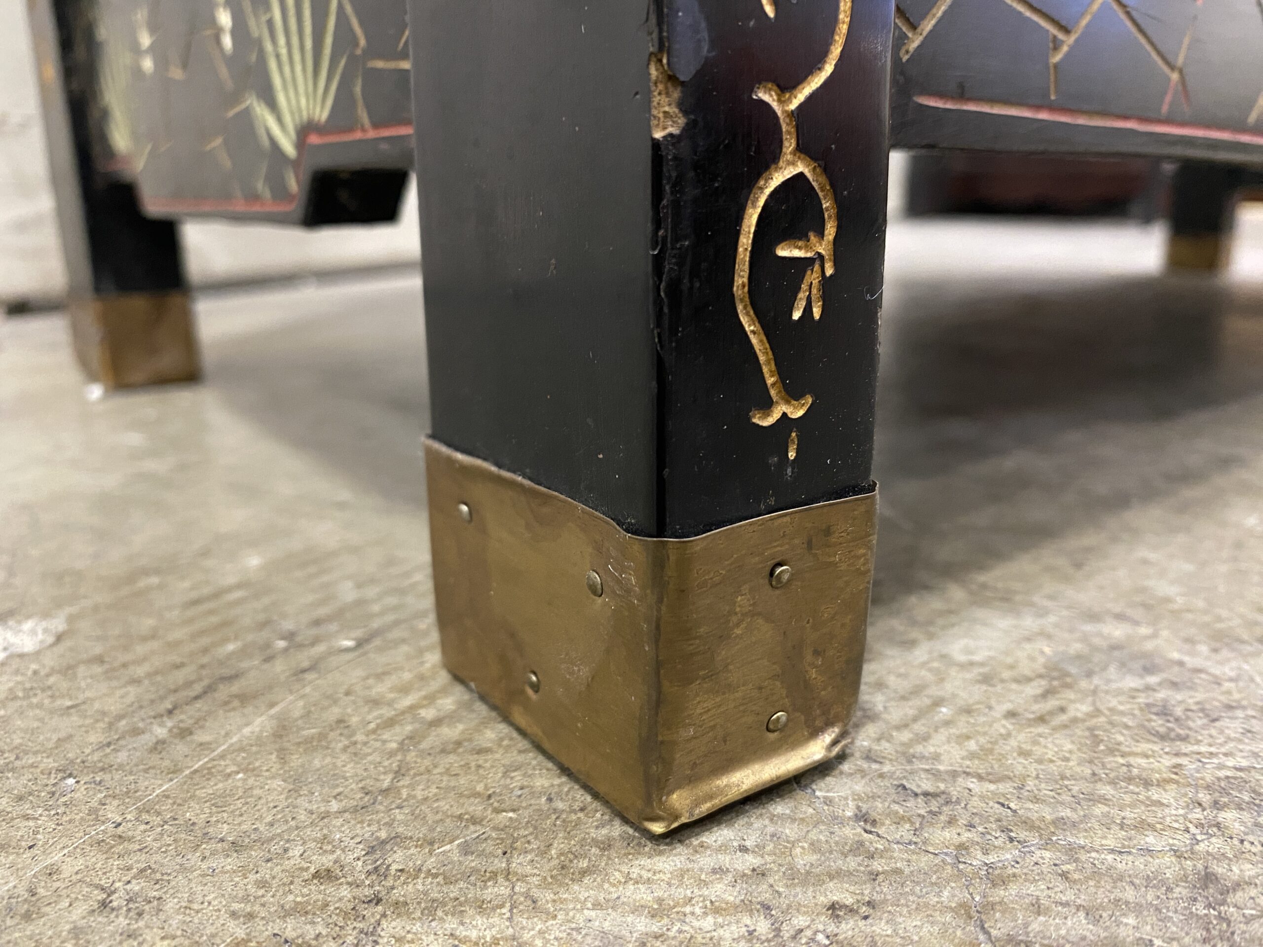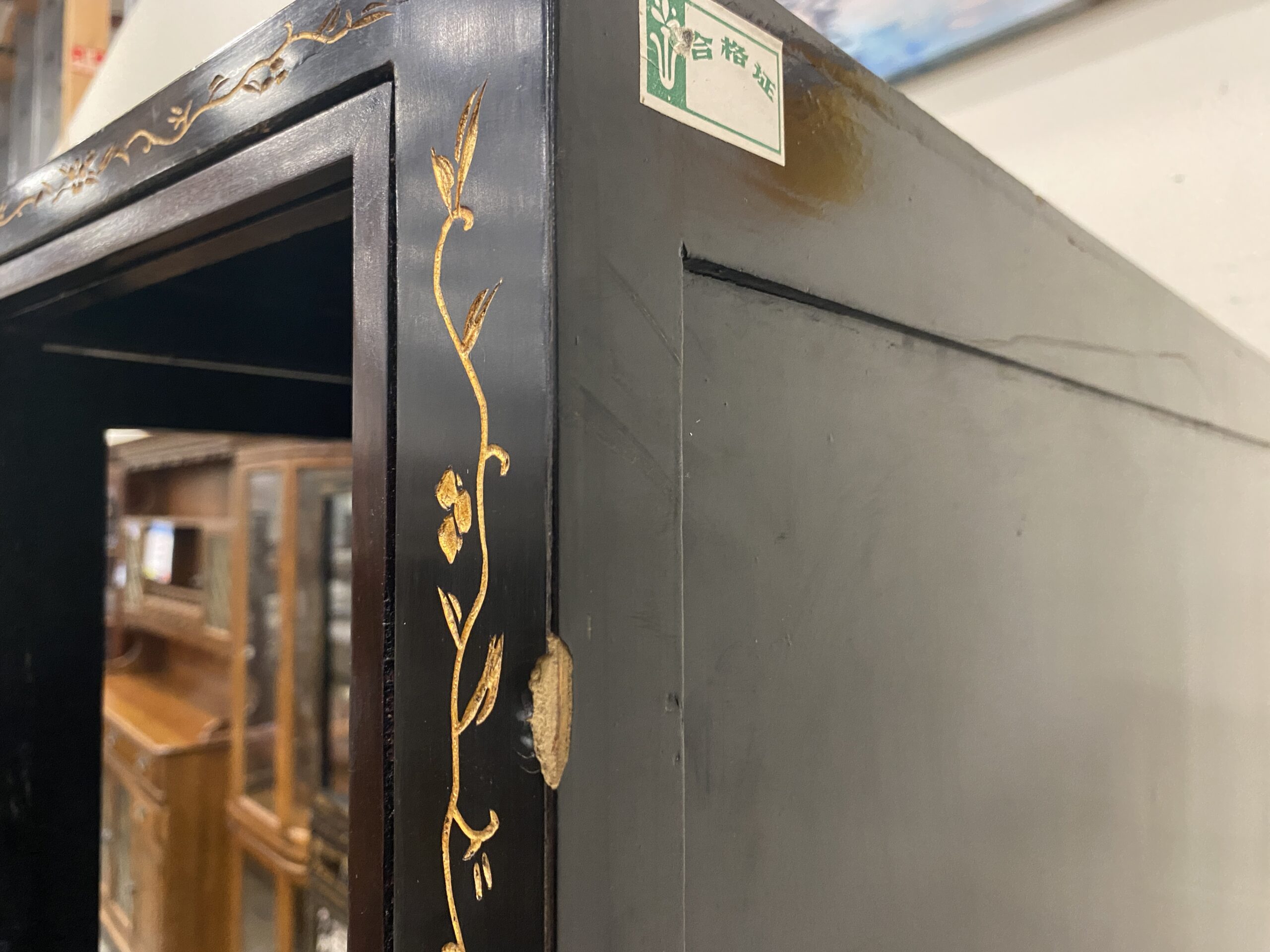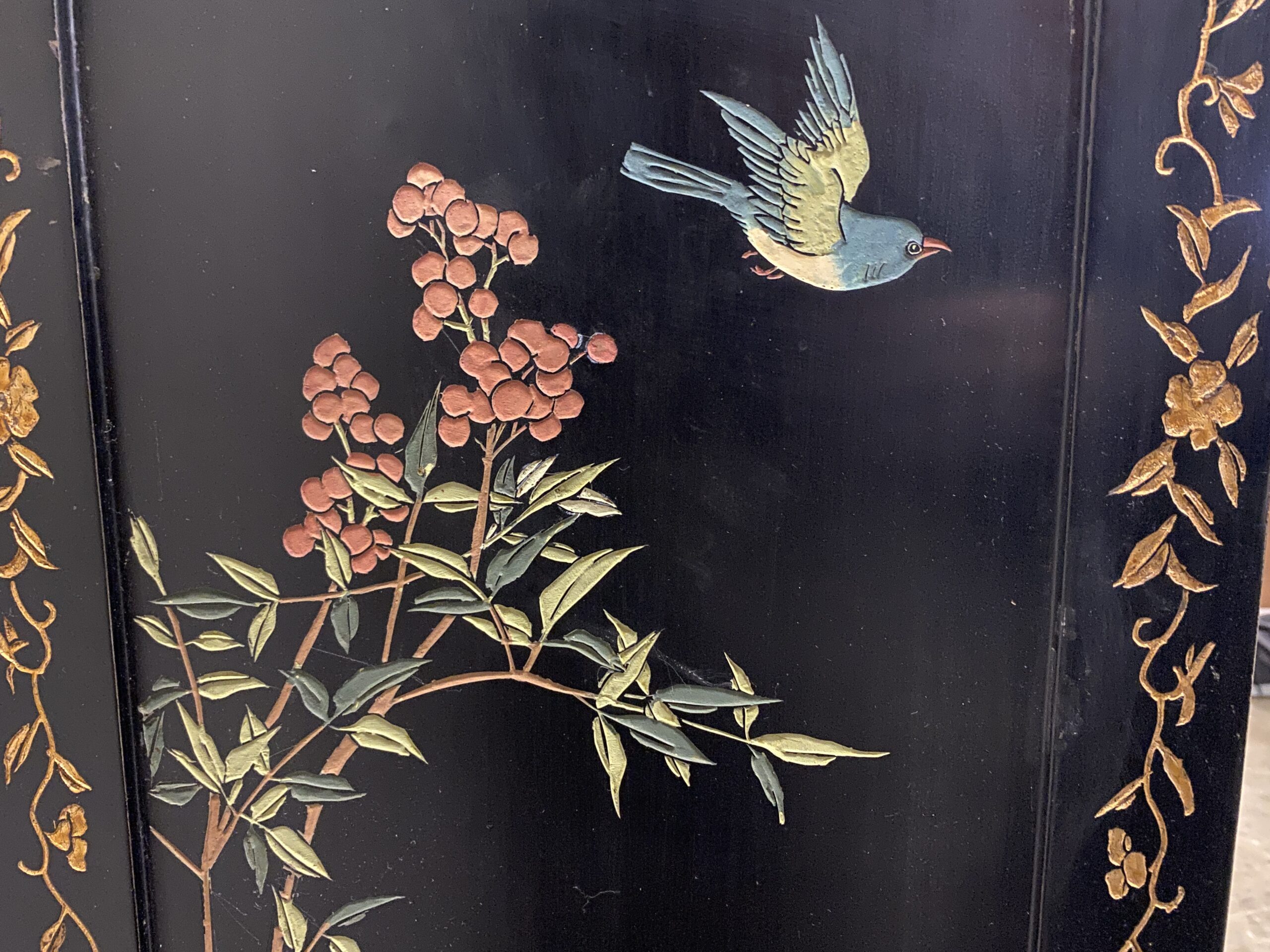 Black and Champagne Chinoiserie China Hutch with Glass Doors and Painted Details