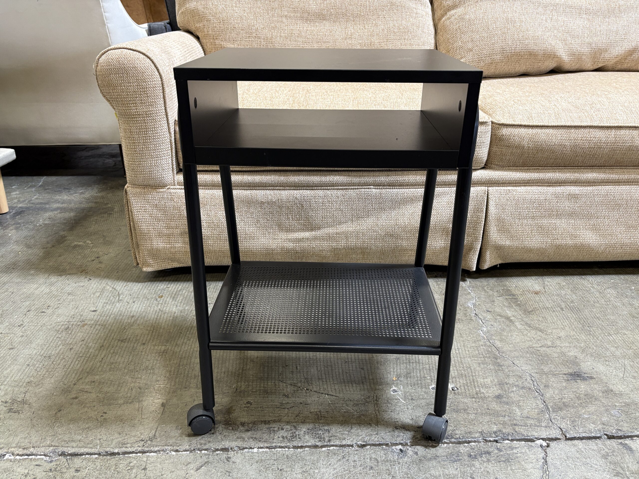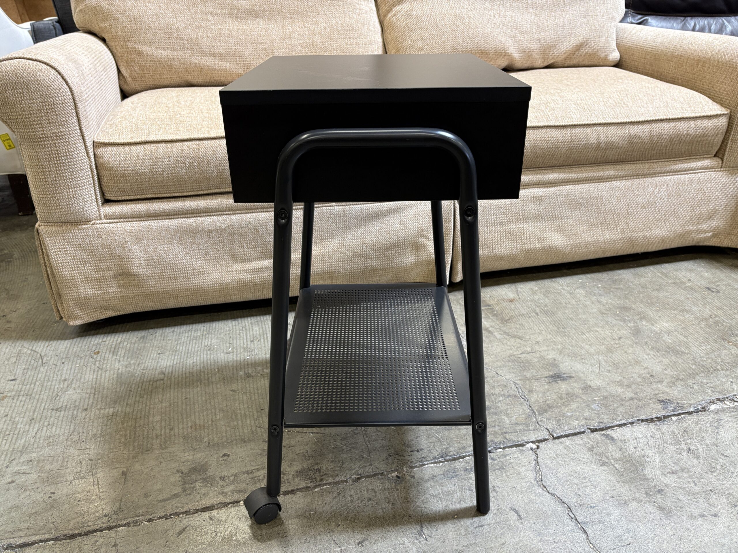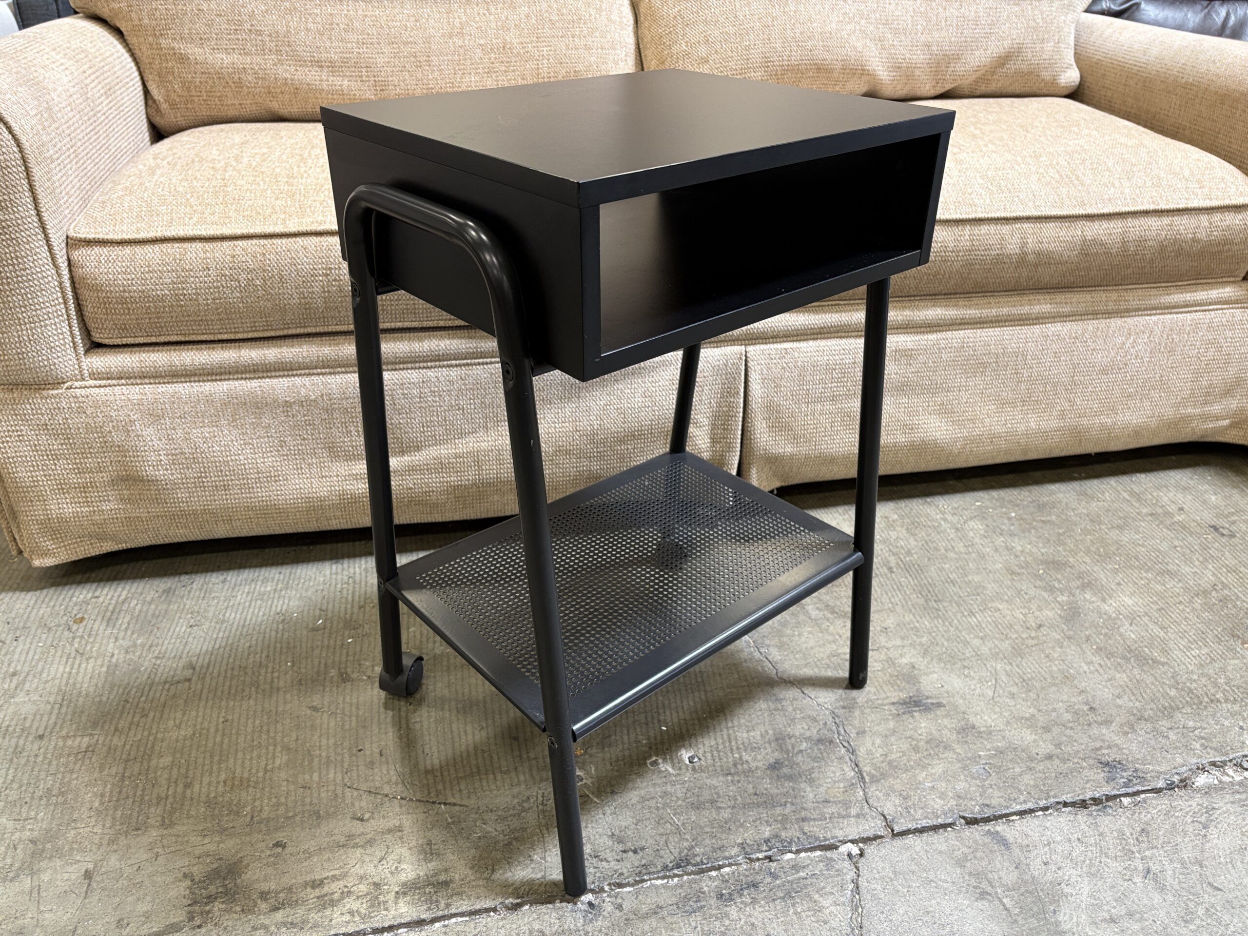 Black Rolling 2 Tier Nightstand with with Pocket Shelf