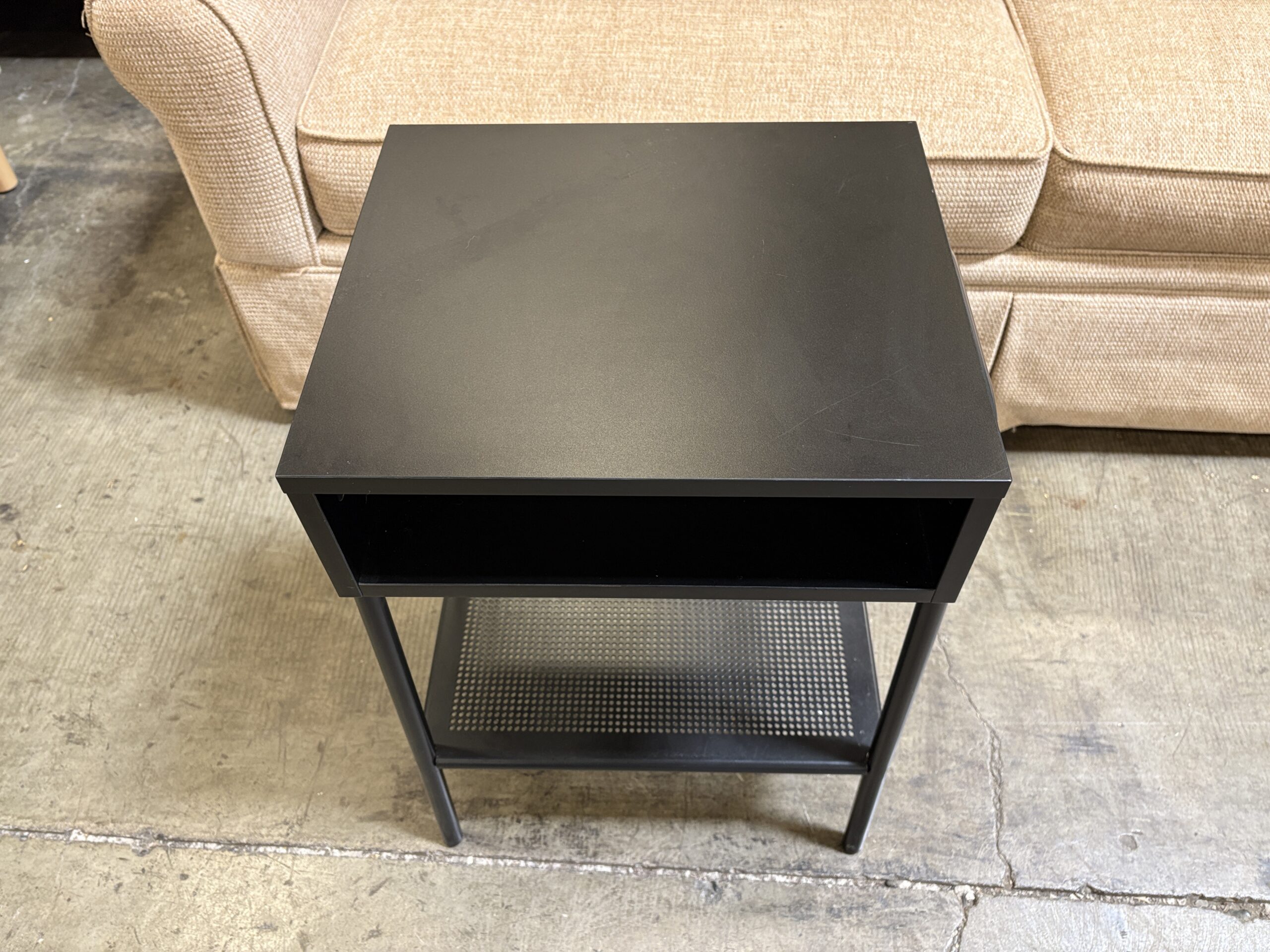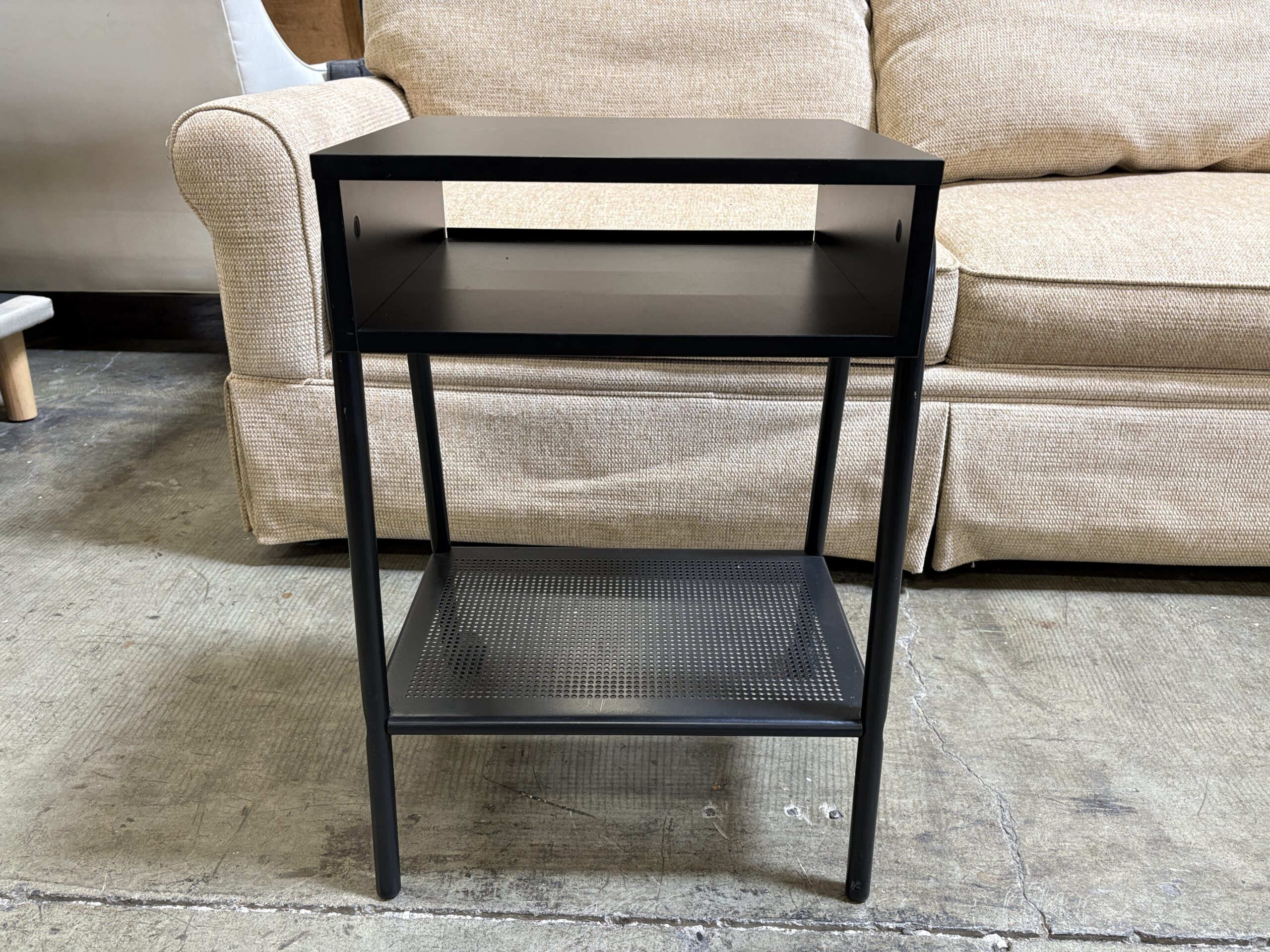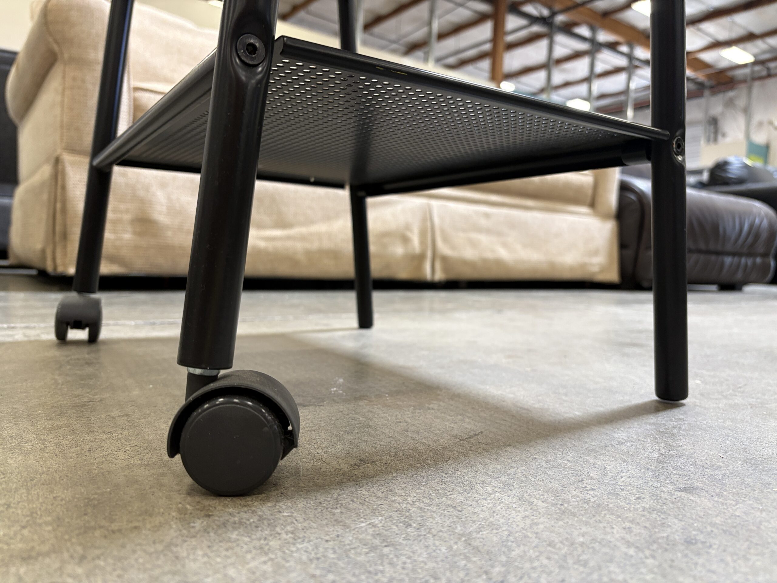 Black Rolling 2 Tier Nightstand with with Pocket Shelf