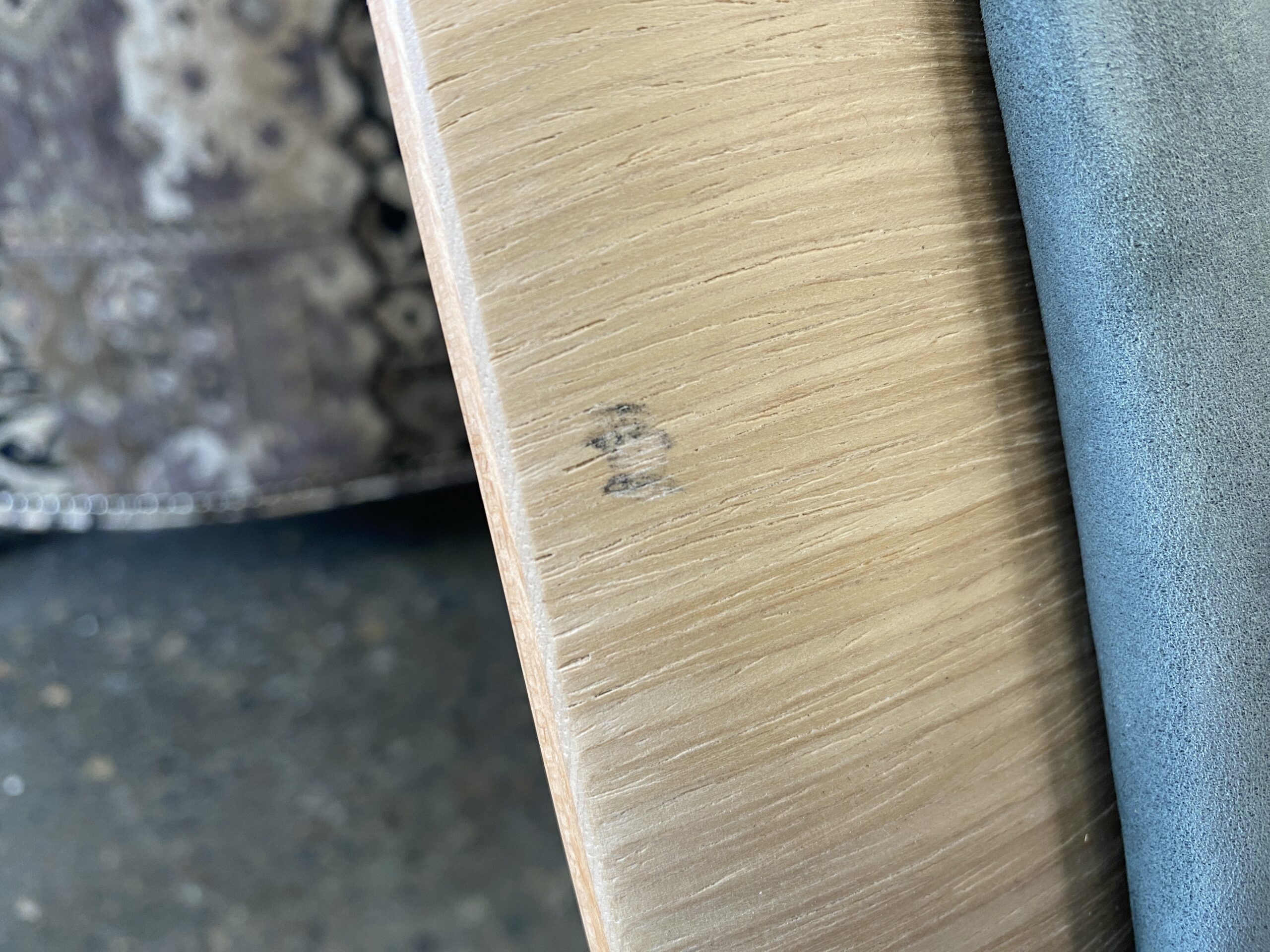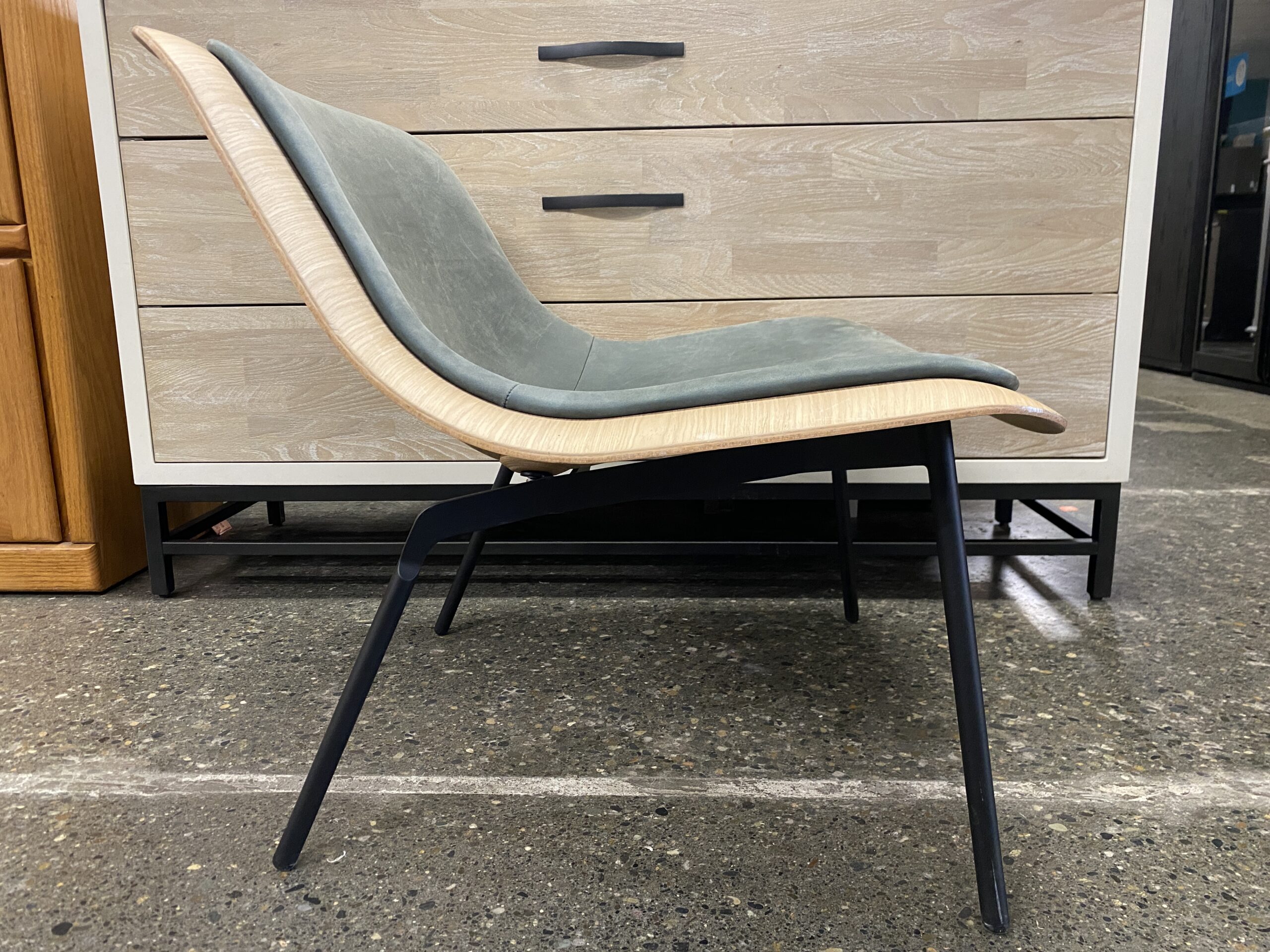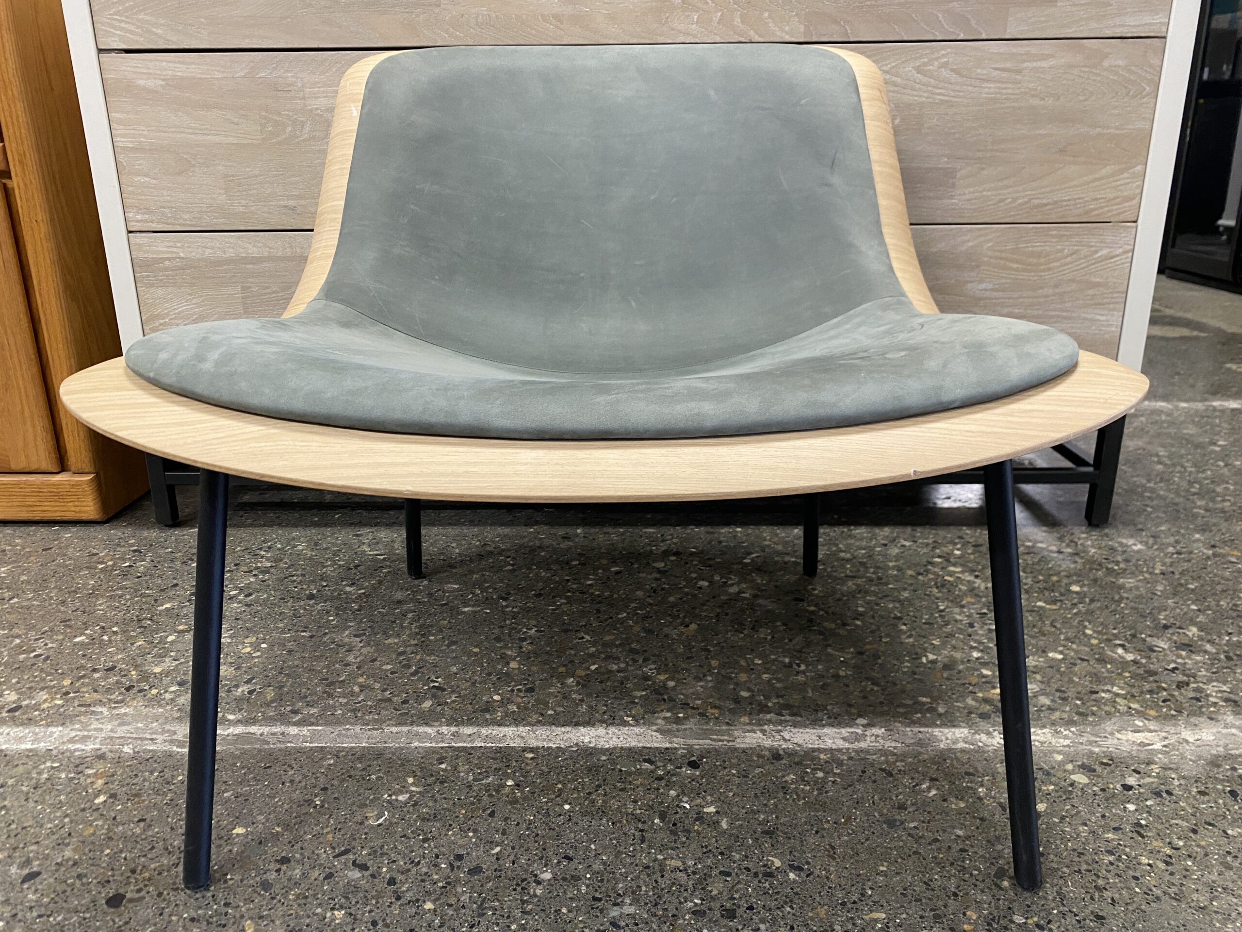 BLU DOT Nonesuch Blonde Upholstered Lounge Chair w/ Greyish Green Cusion