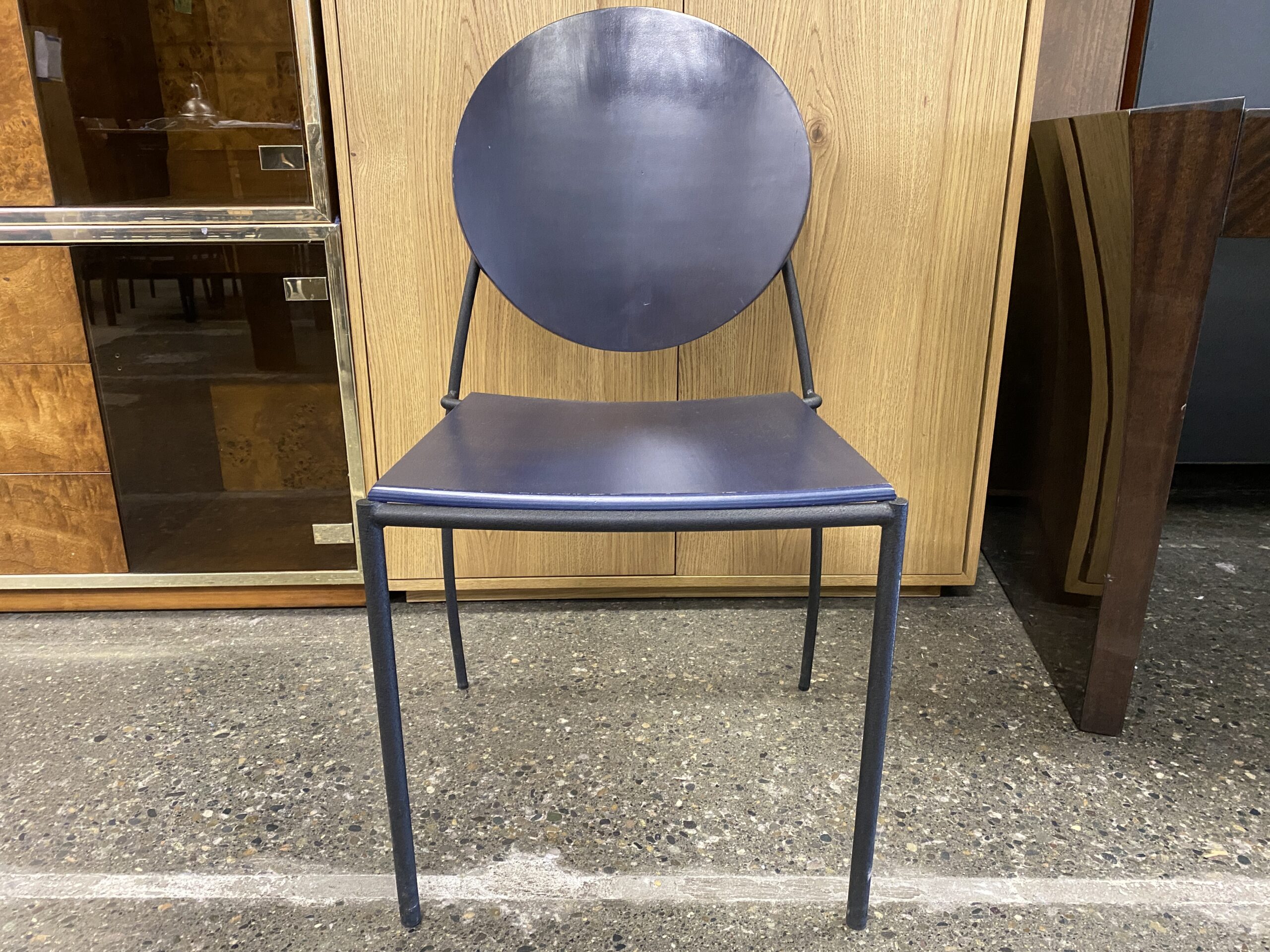 Blue Painted Wood Side Chair w/ Metal Frame