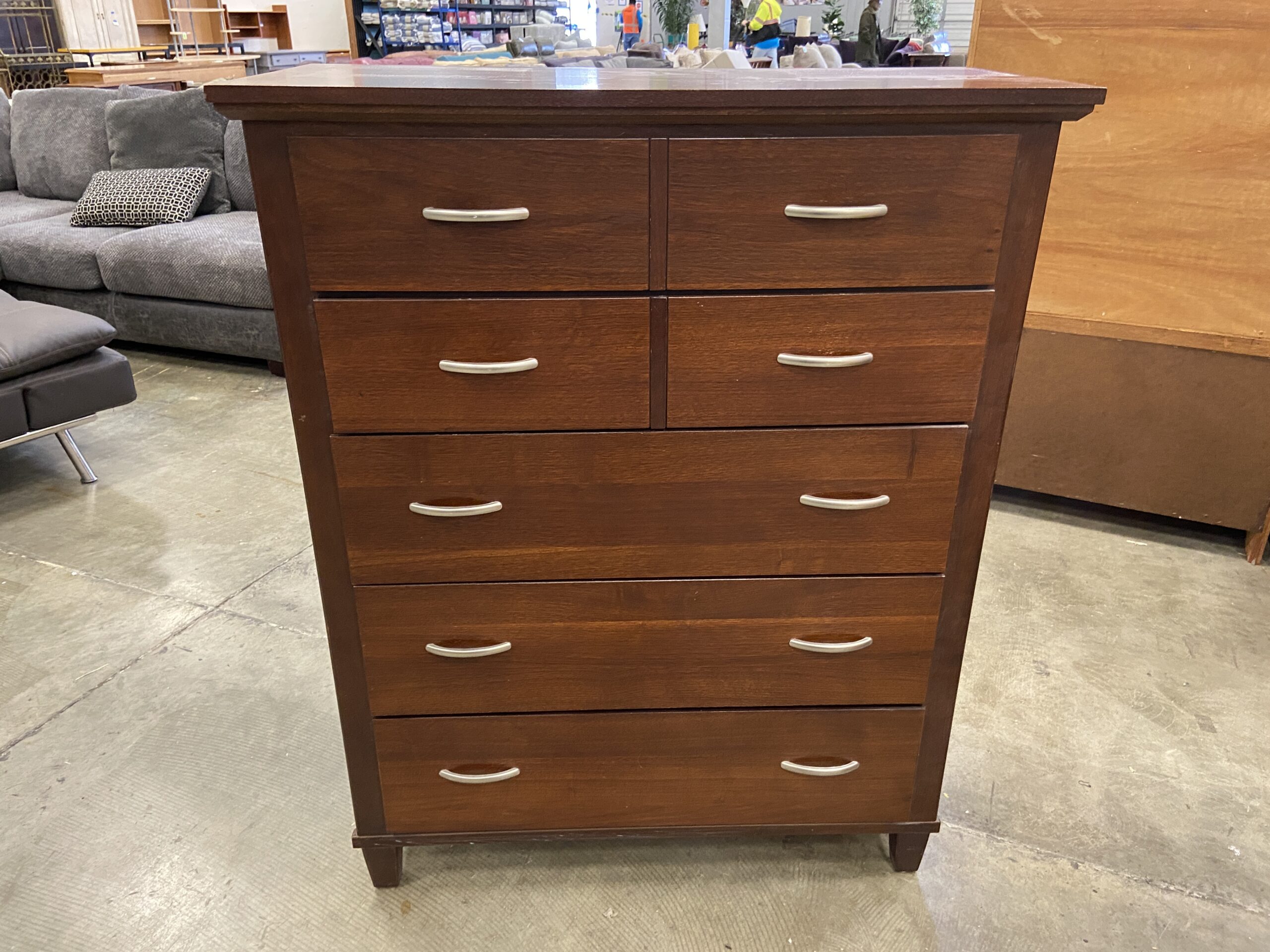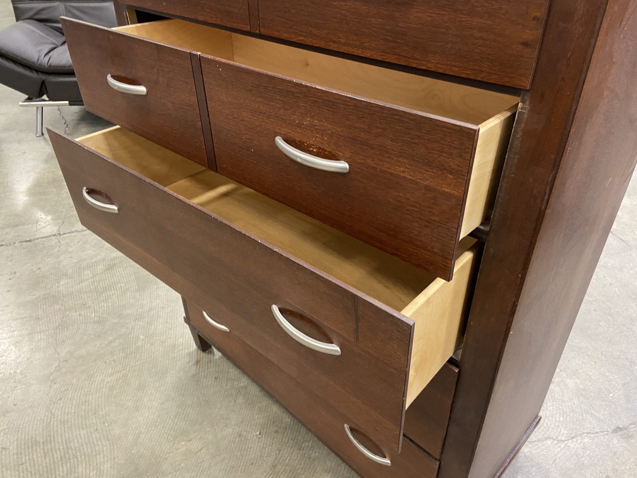 BROYHILL Cherry Finish Wooden 5 Drawer Dresser with Sleek Silver Pulls