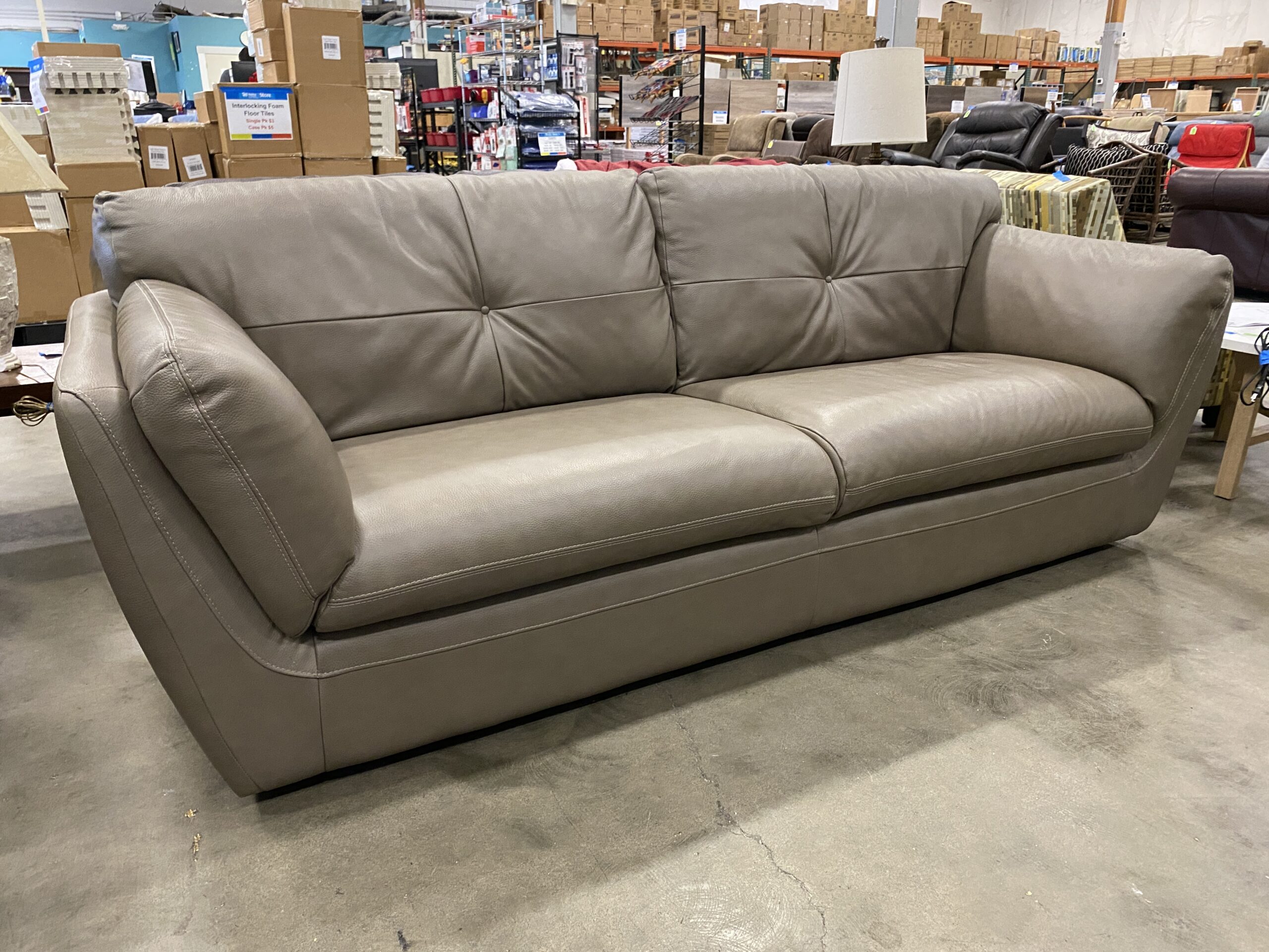 CHATEAU D’AX Modern Grey Brown Leather 2 Seat Sofa