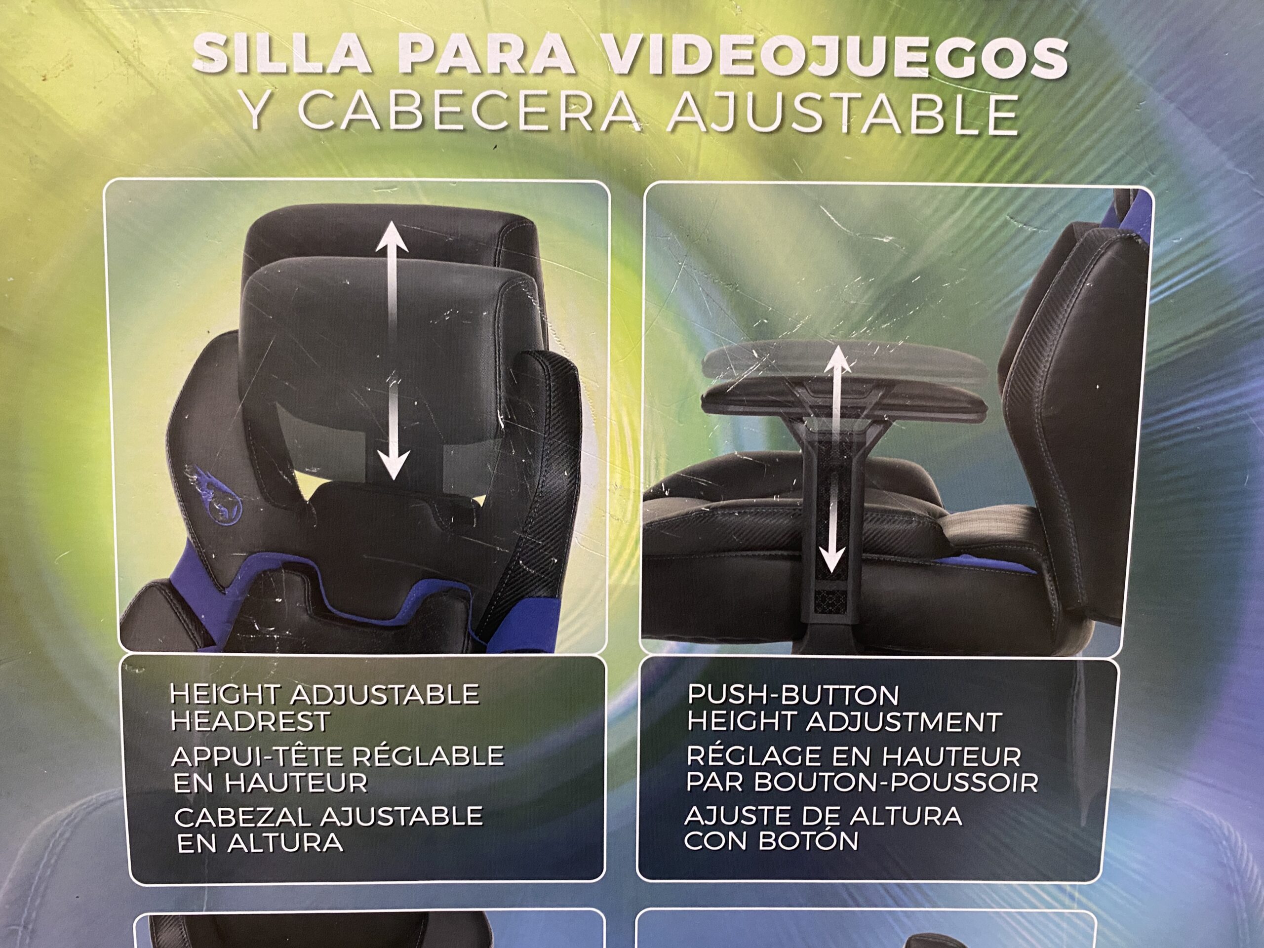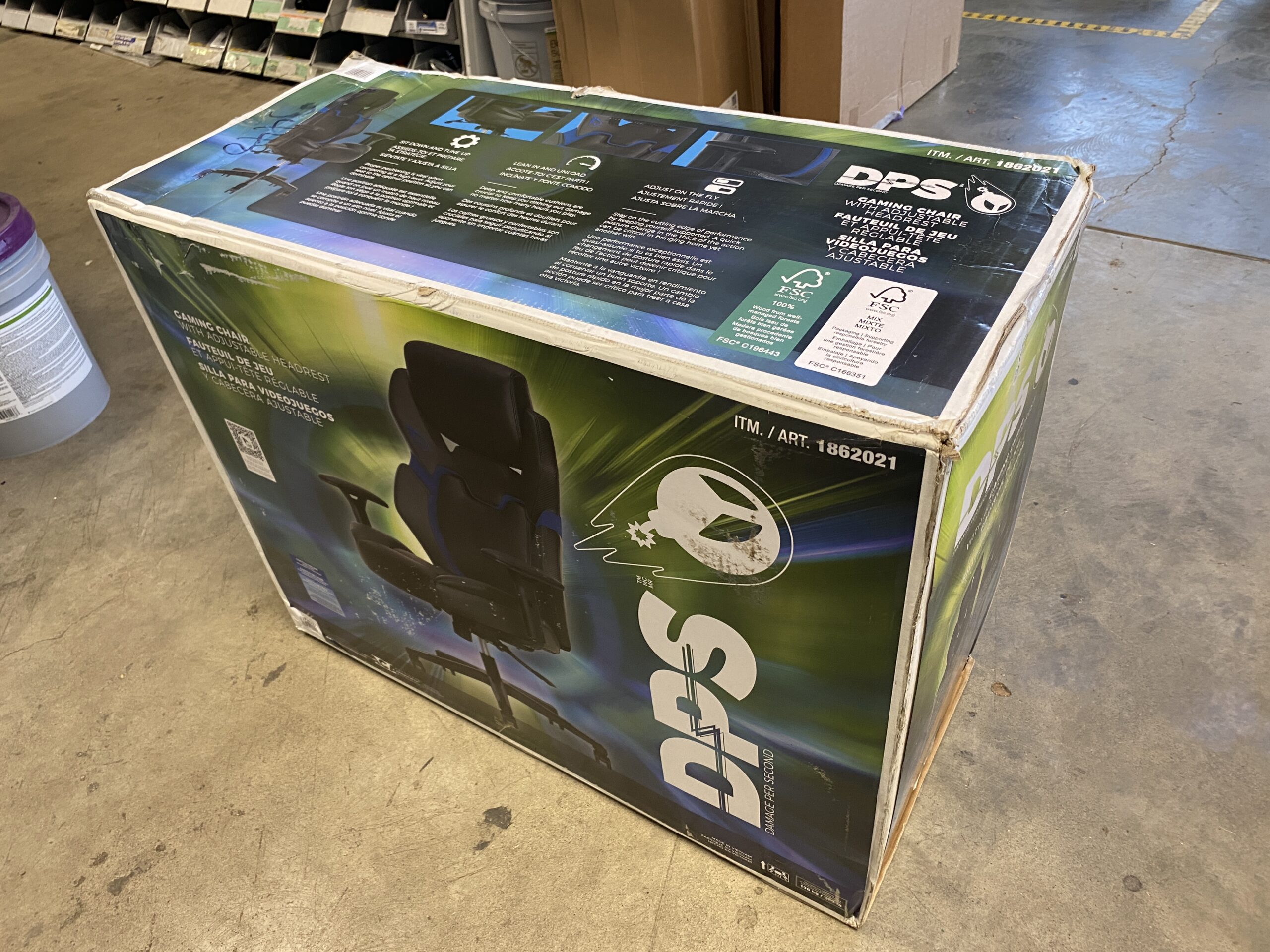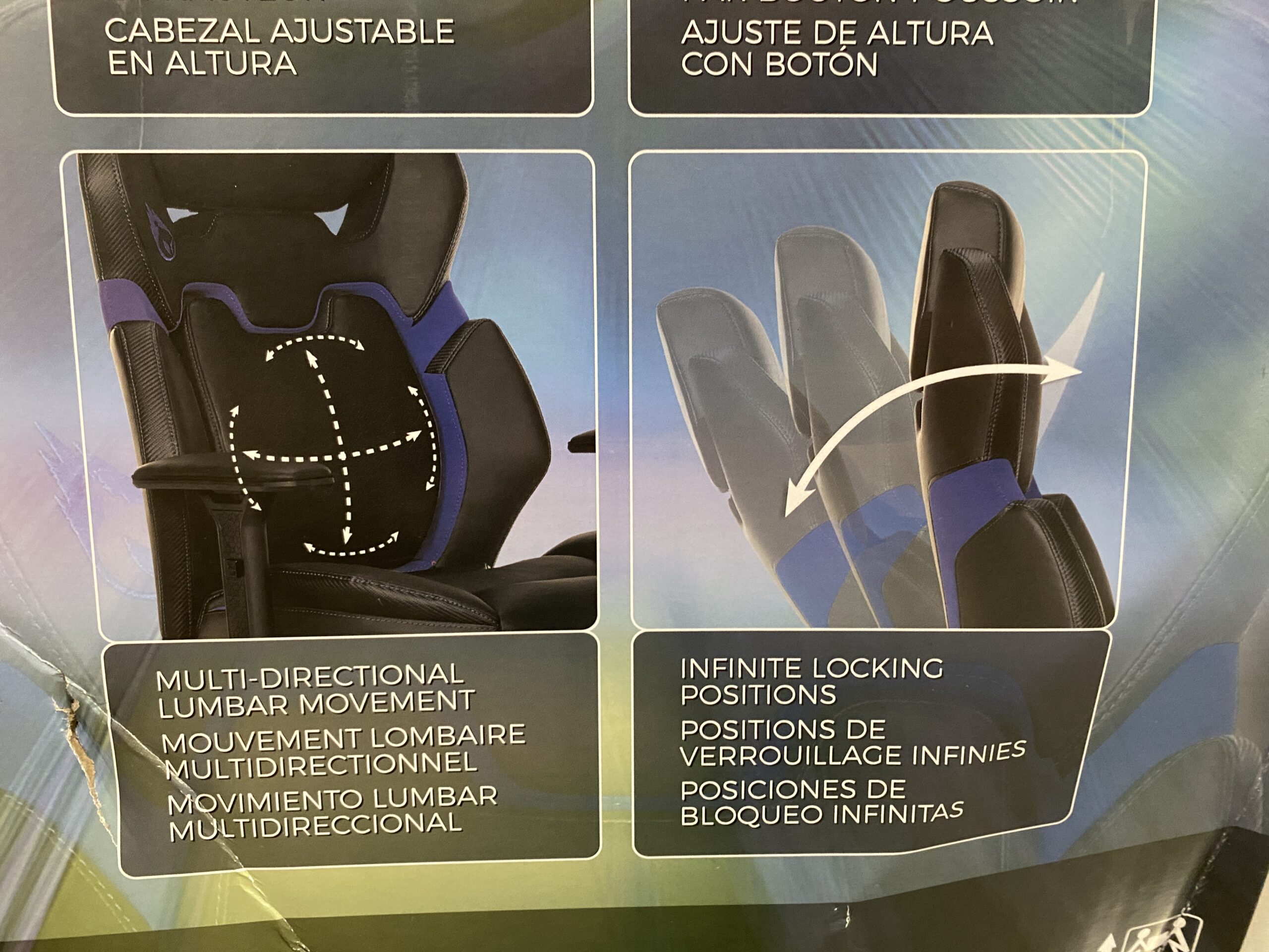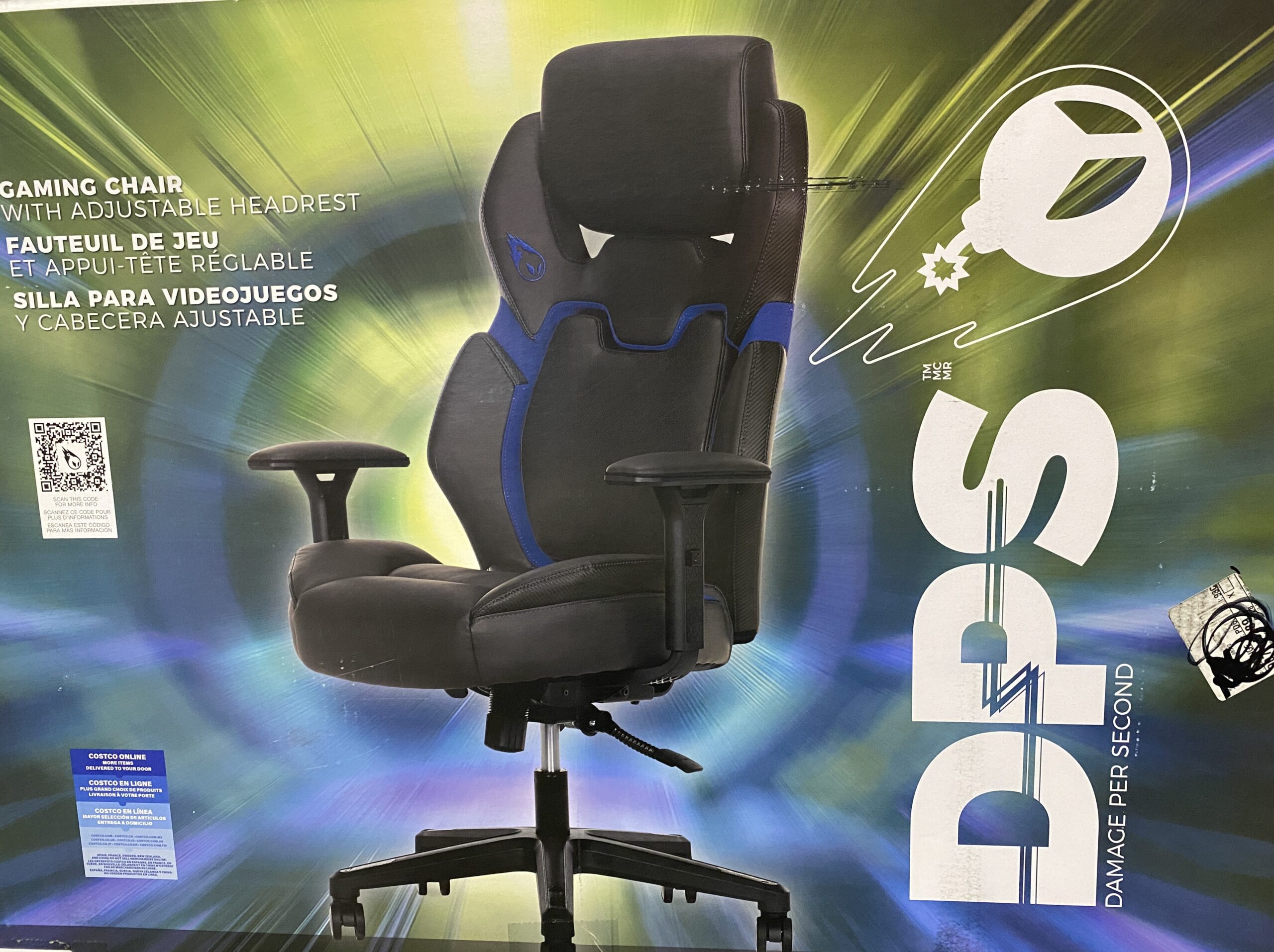 DPS Black and Blue Gaming Chair with Adjustable Headrest and Blue Contrast Stitching