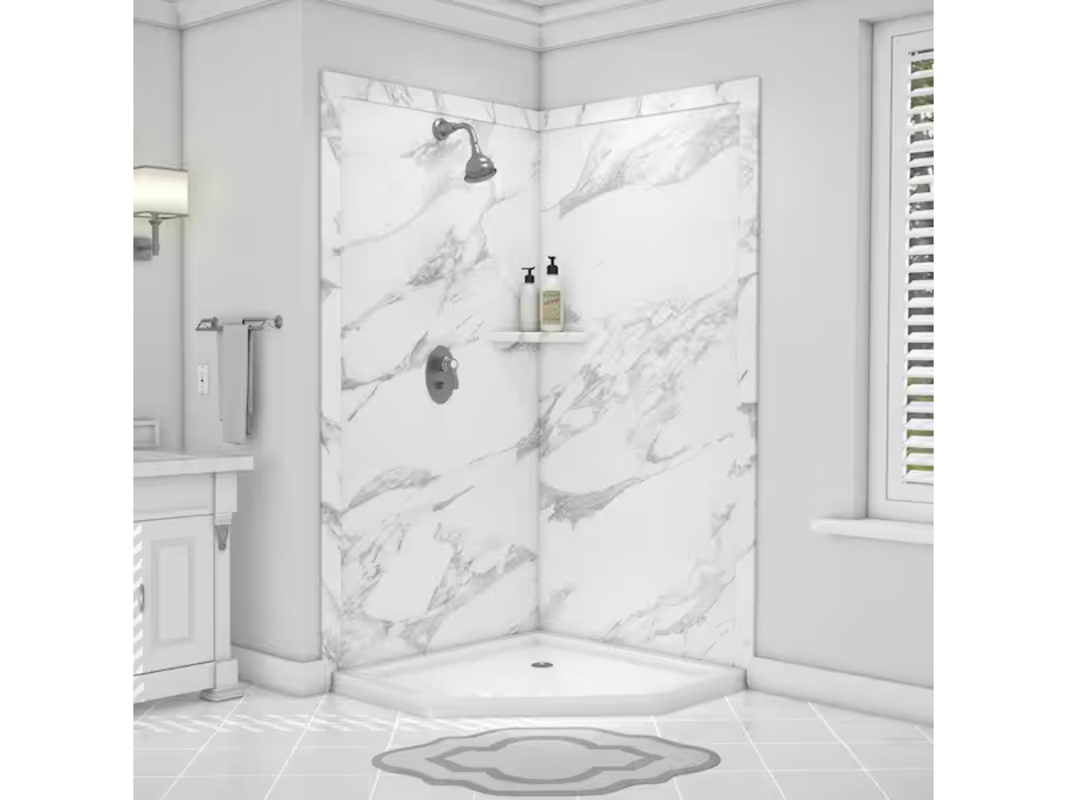 FLEXSTONE Splendor 40″ x 40″ x 80″ Corner Shower Wall Surround in Calacatta White