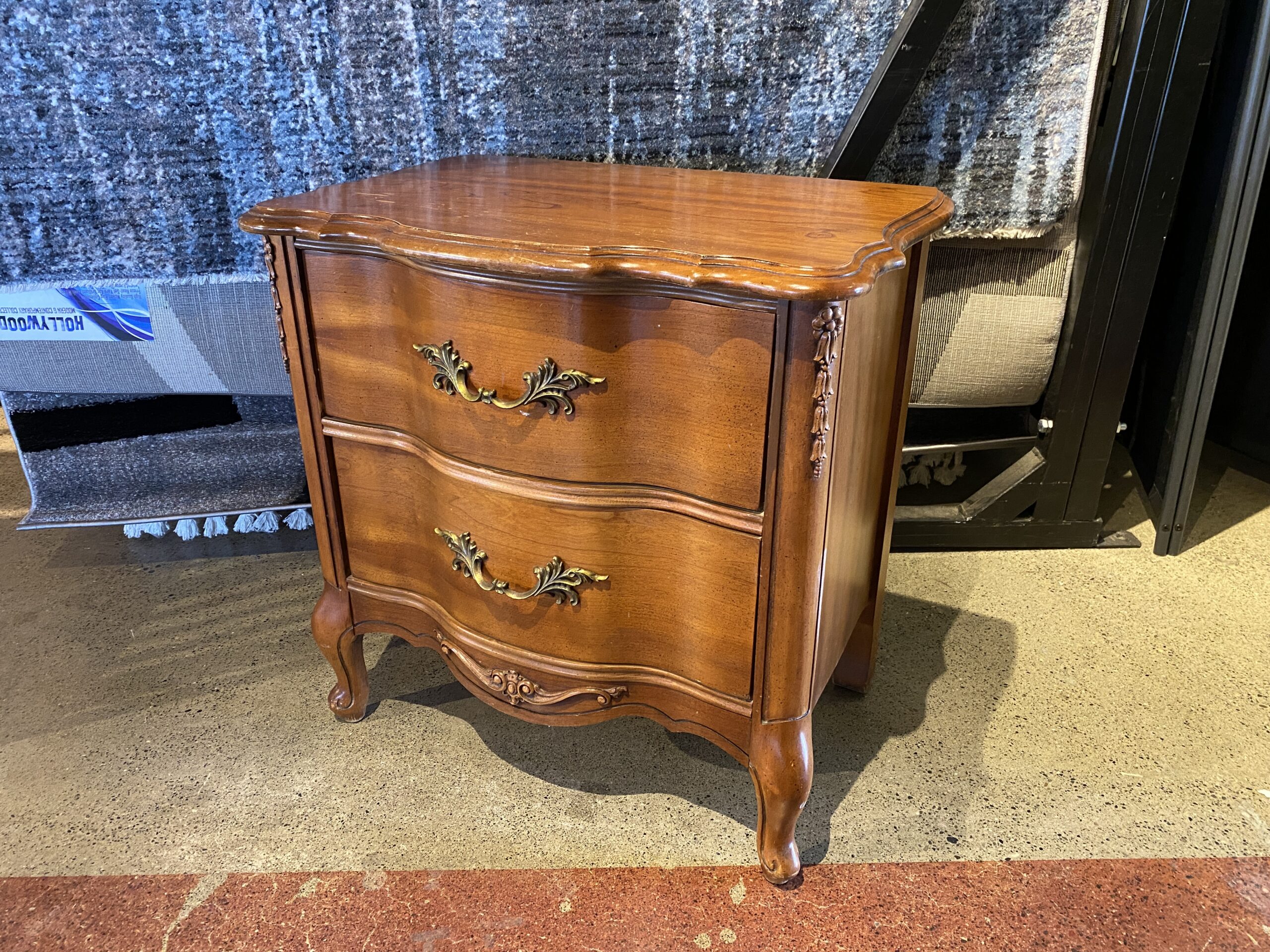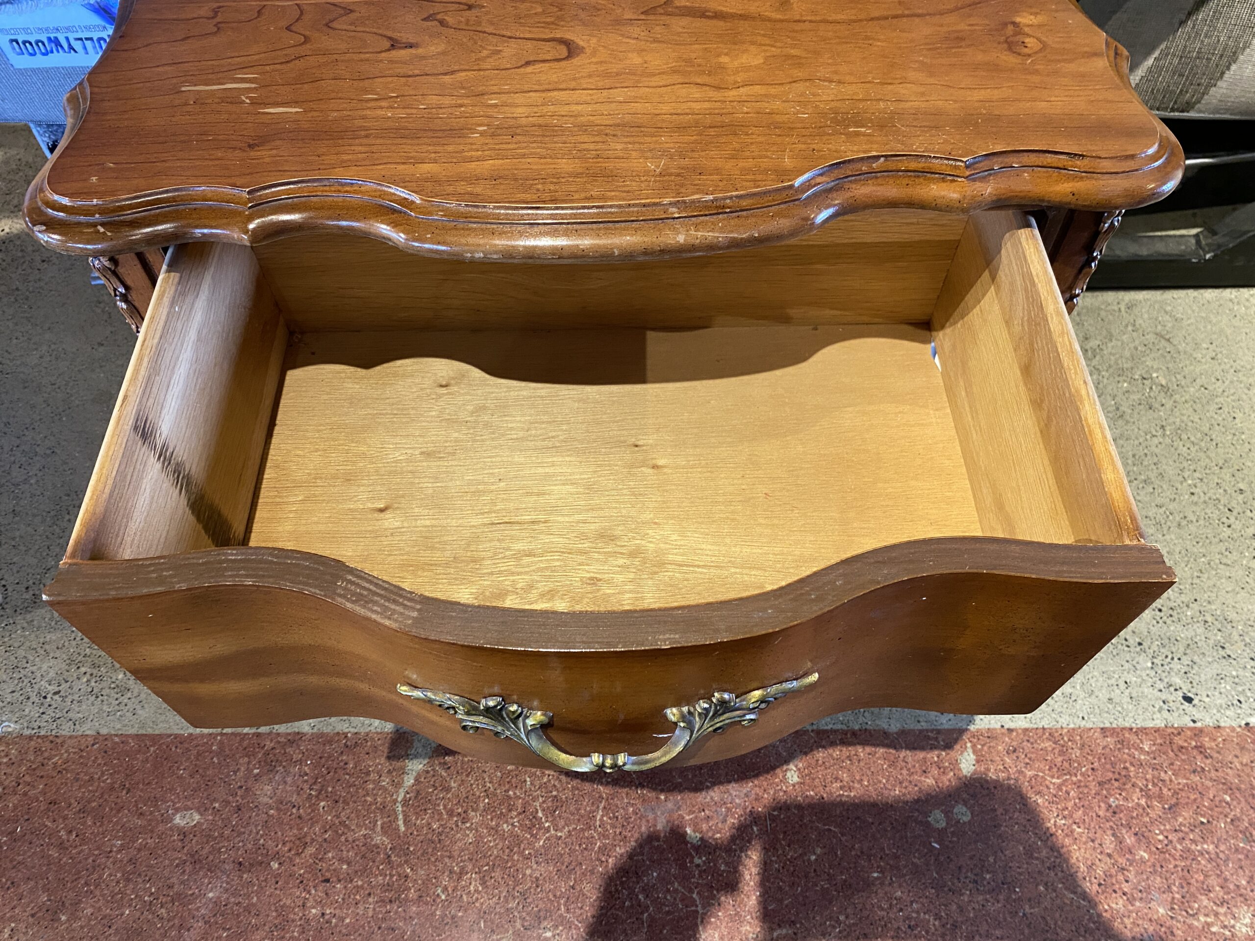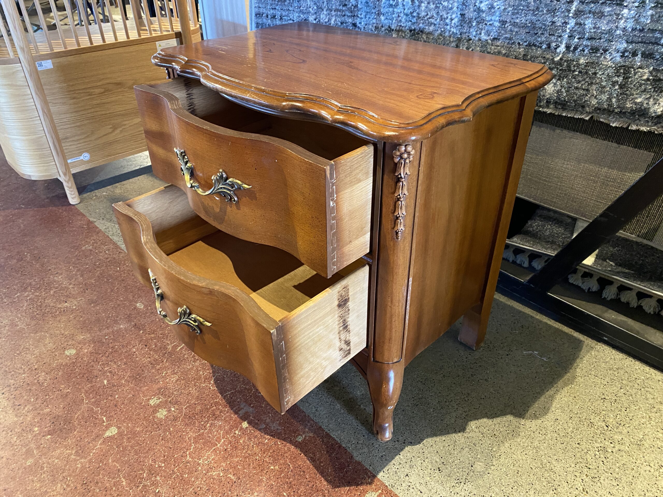 French Provincial 2-Drawer Serpentine Nightstand in Solid Cherry Wood