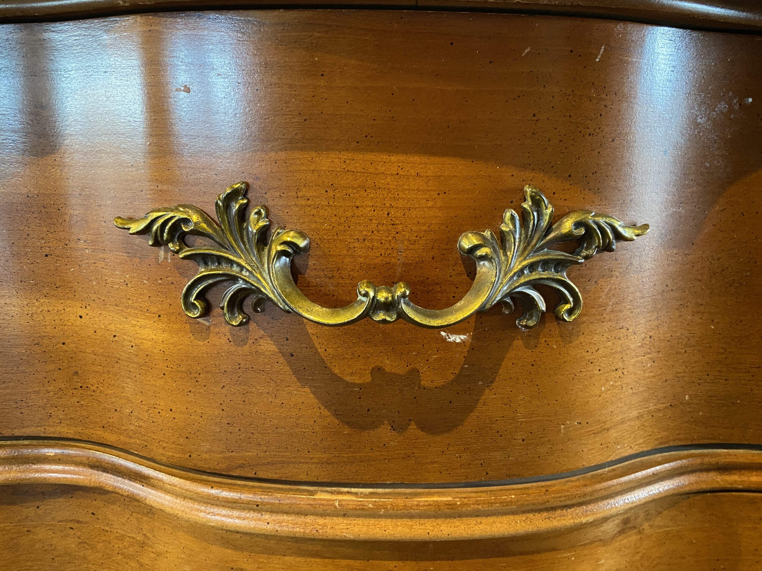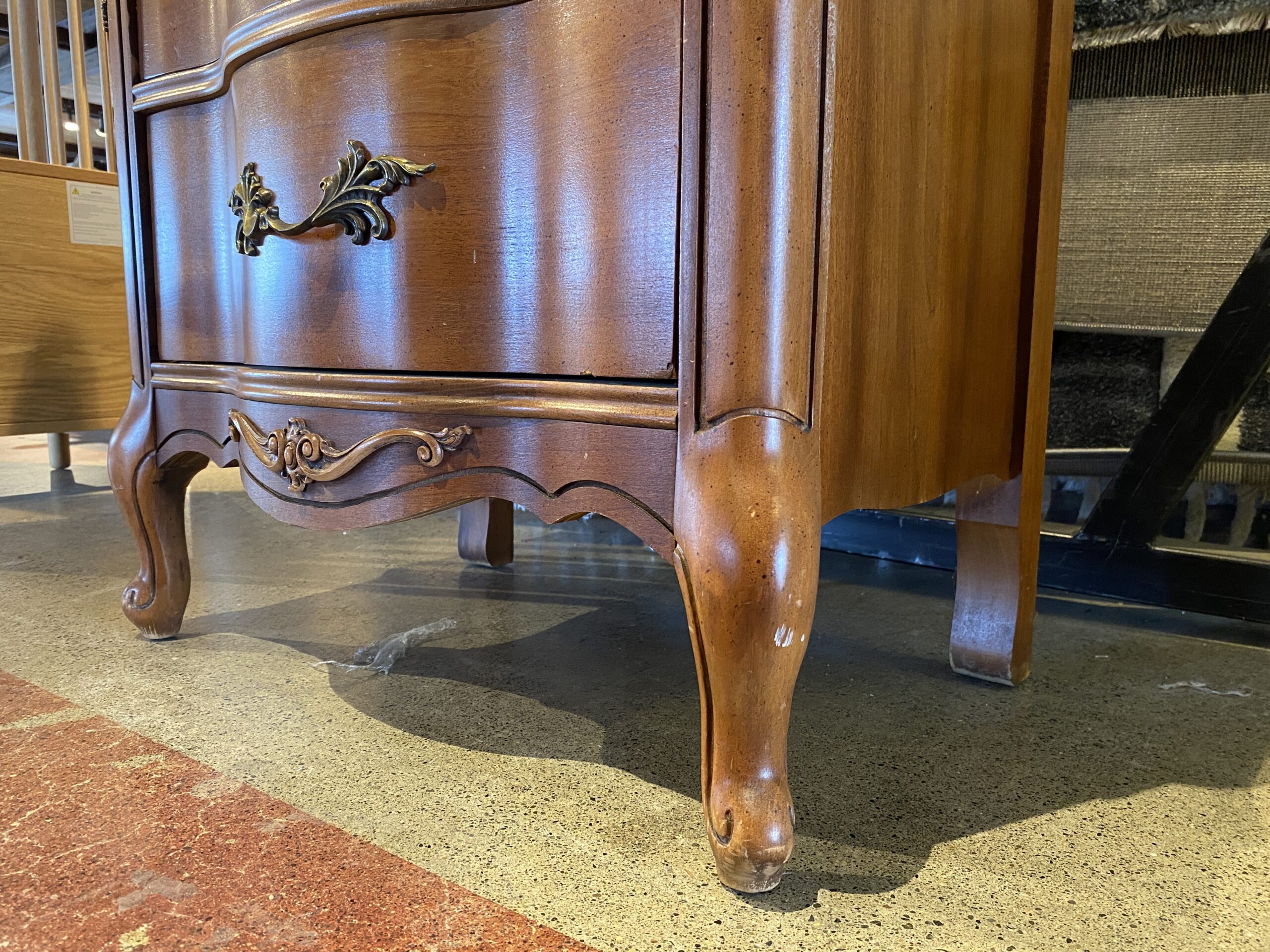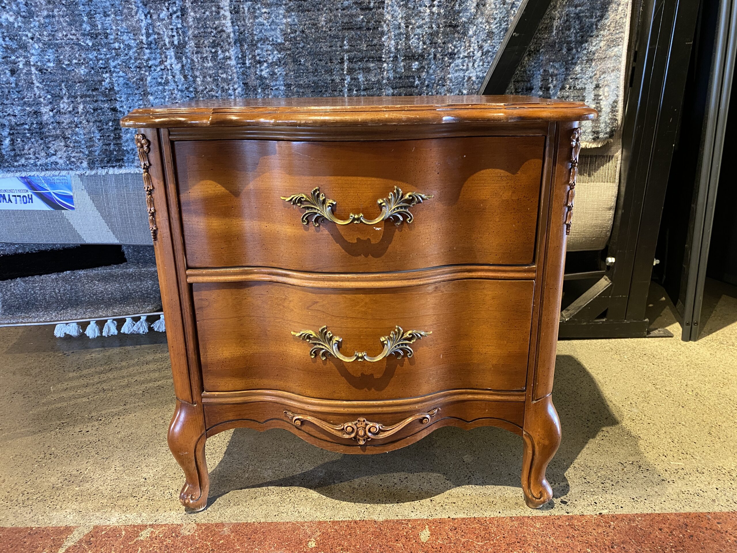 French Provincial 2-Drawer Serpentine Nightstand in Solid Cherry Wood