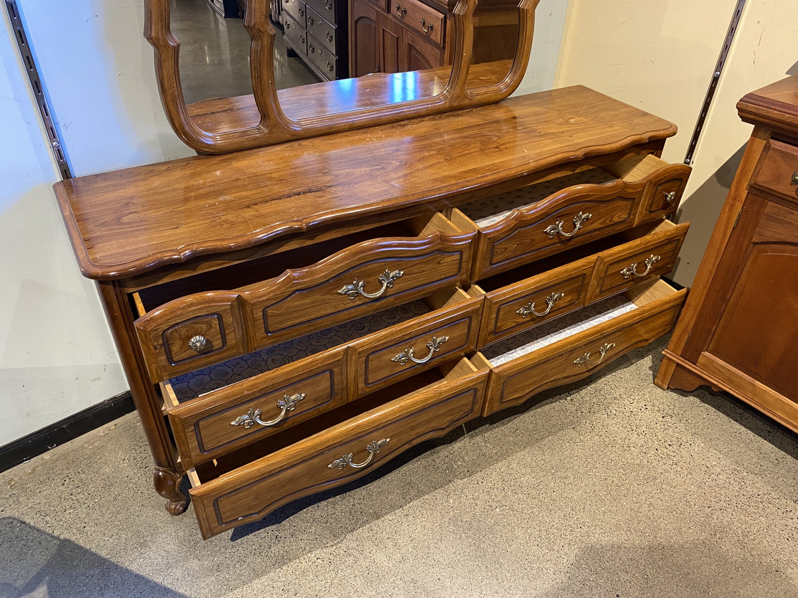 French Provincial Six Drawer Dresser with Mirror
