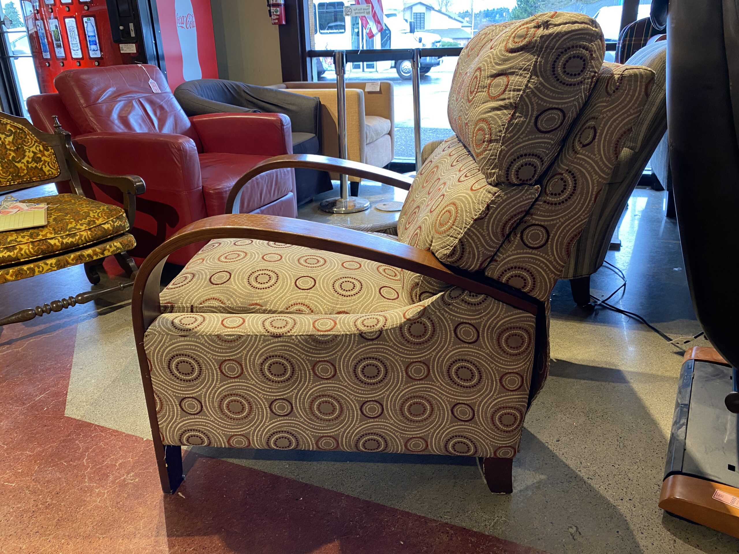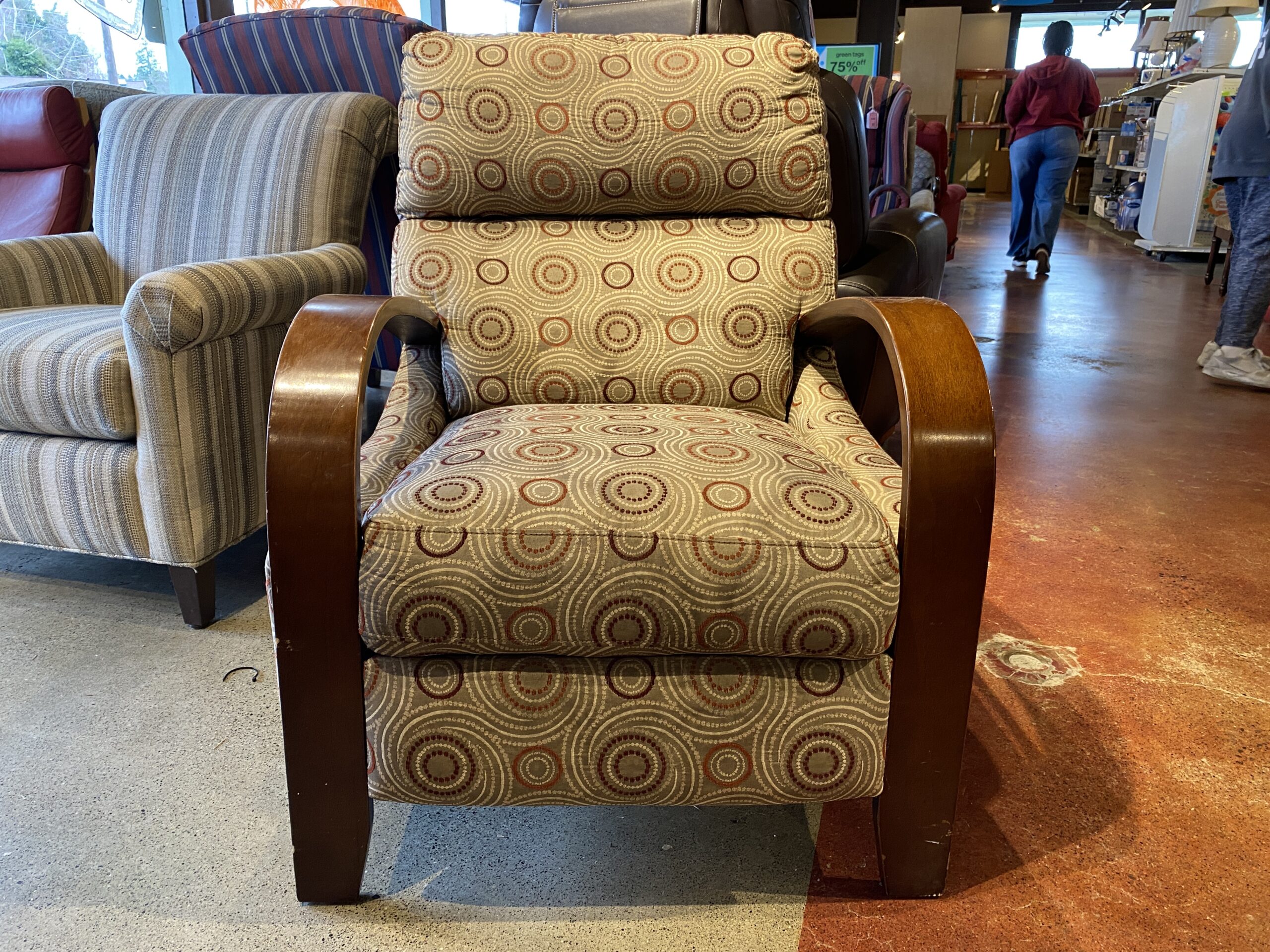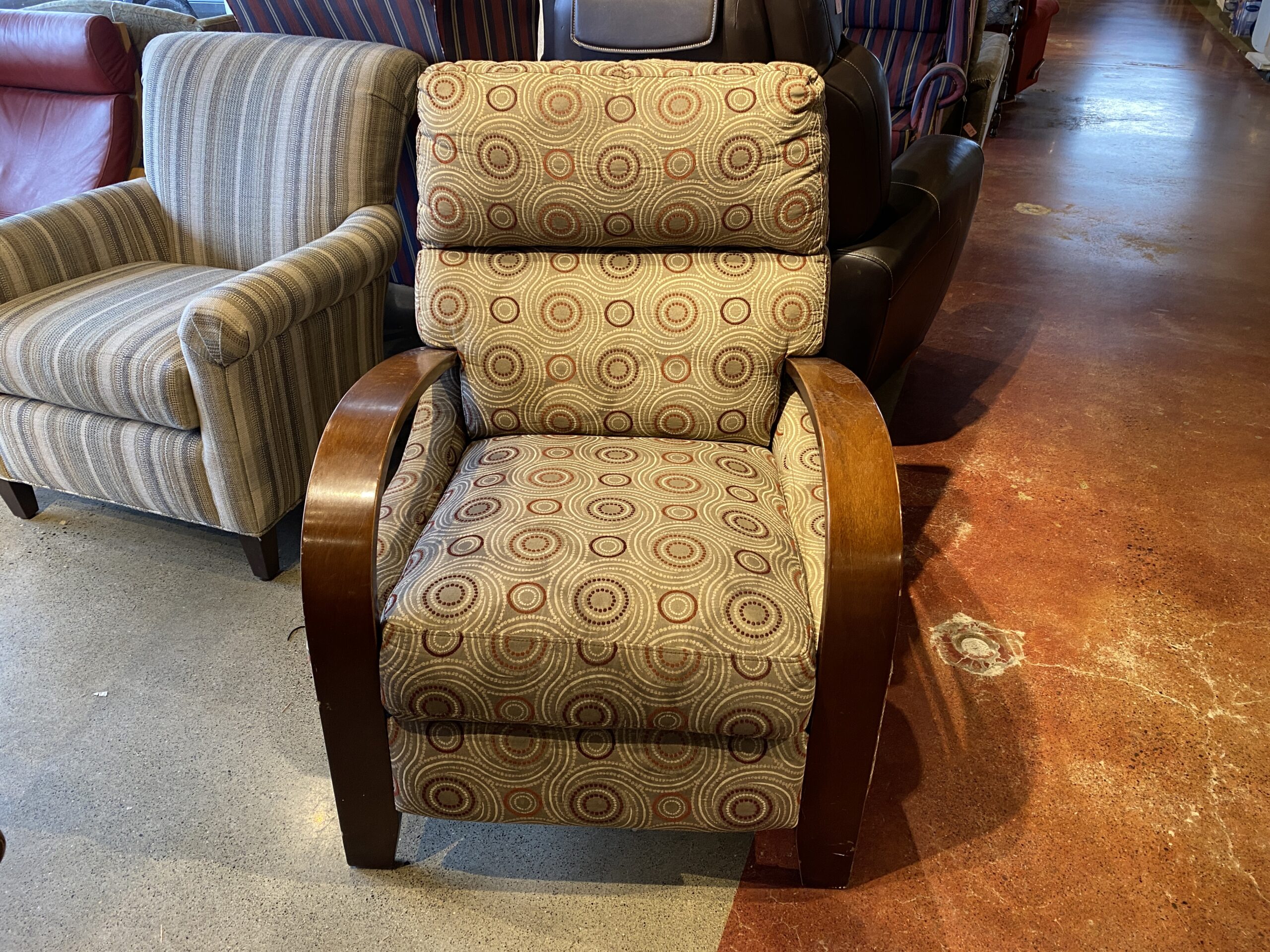 High Leg Recliner Chair with a Geometric Pattern