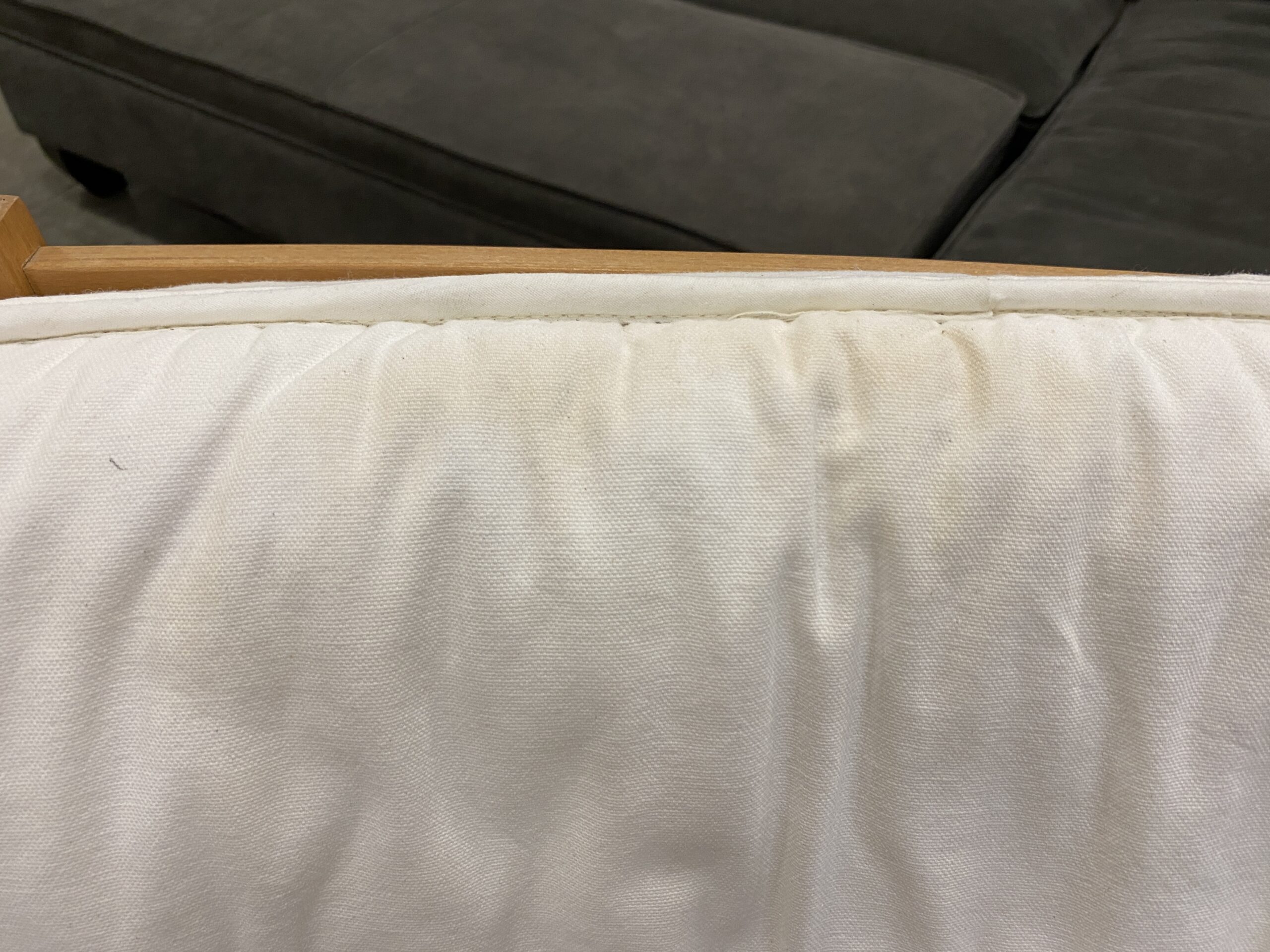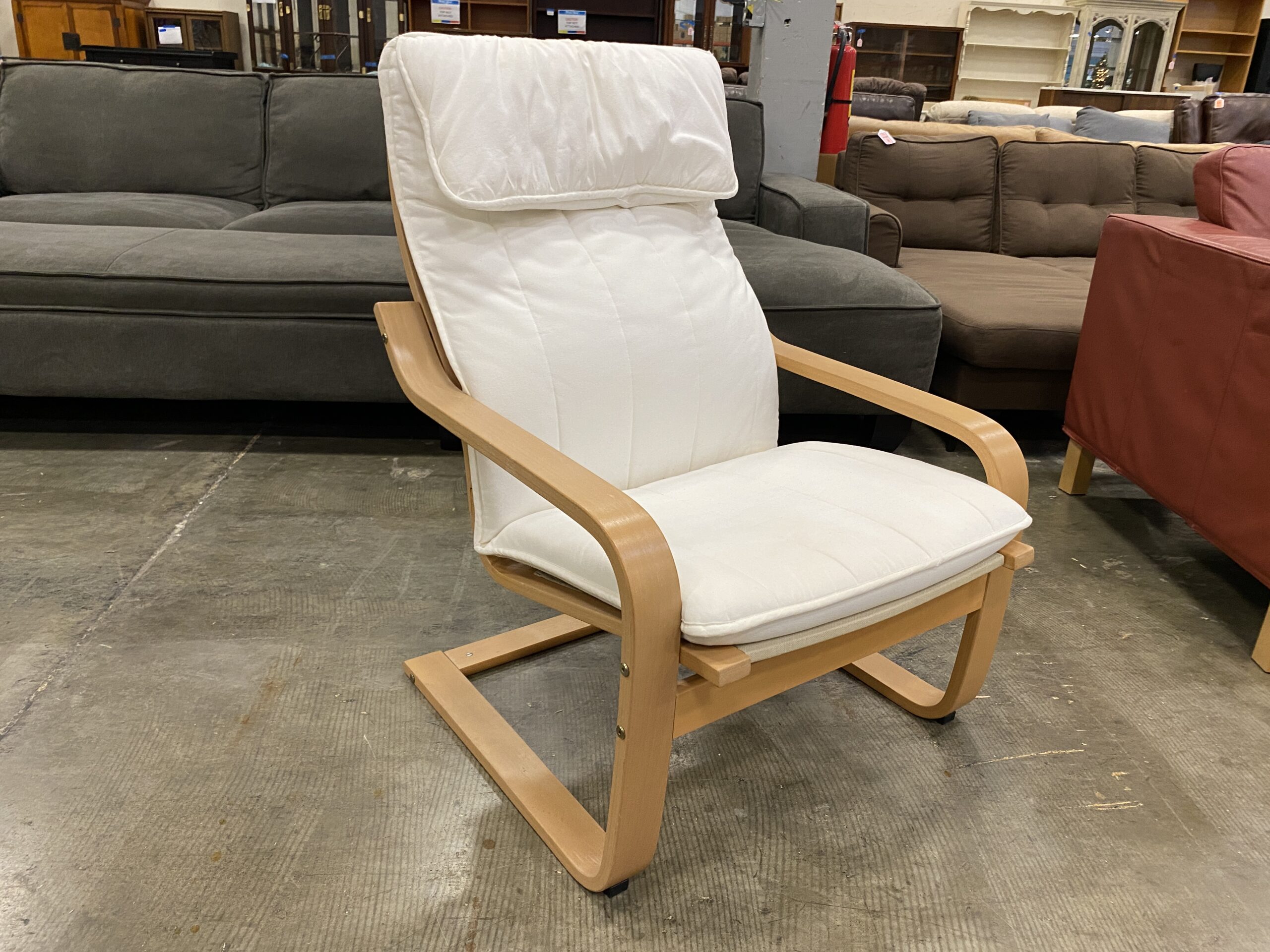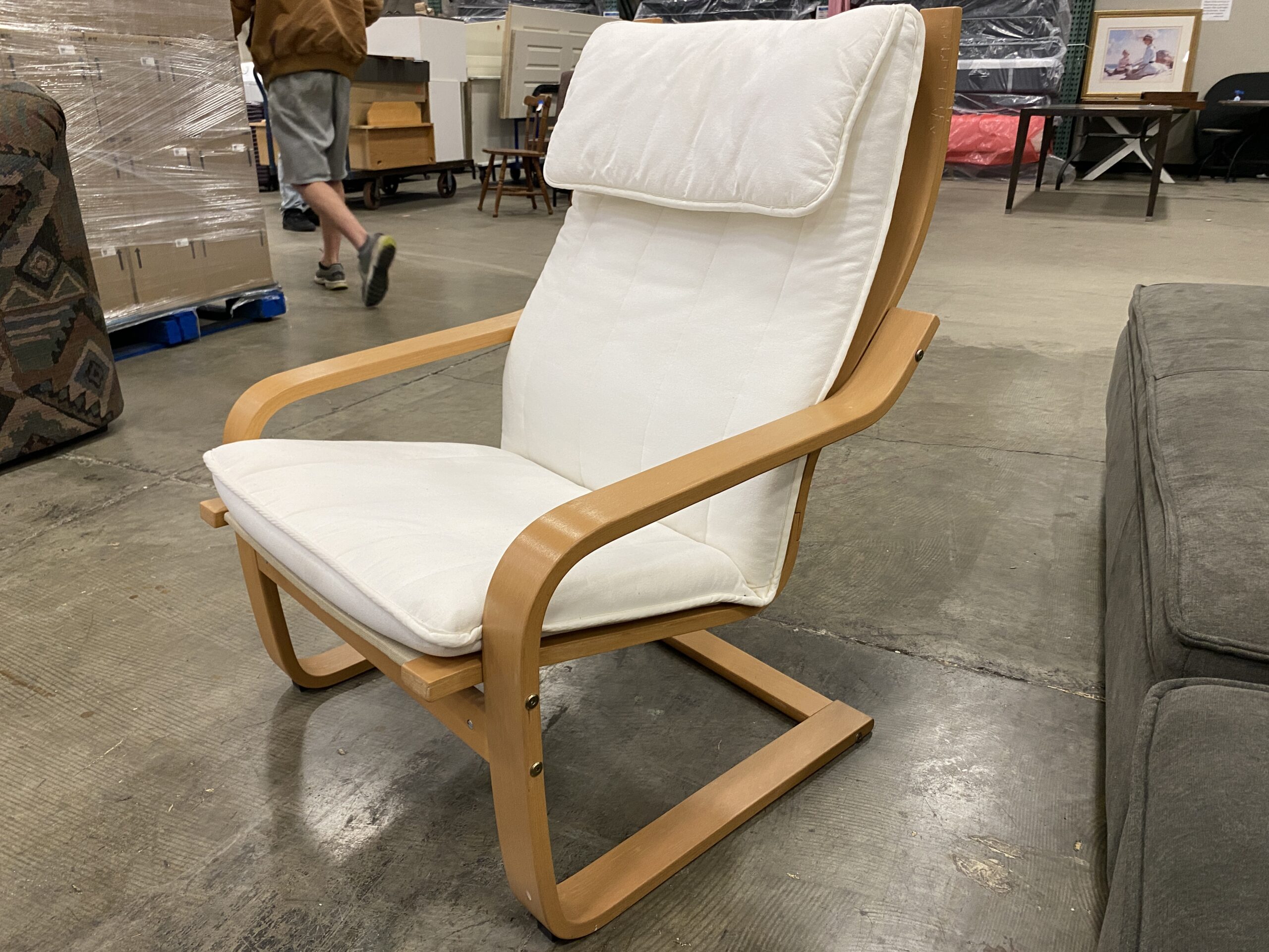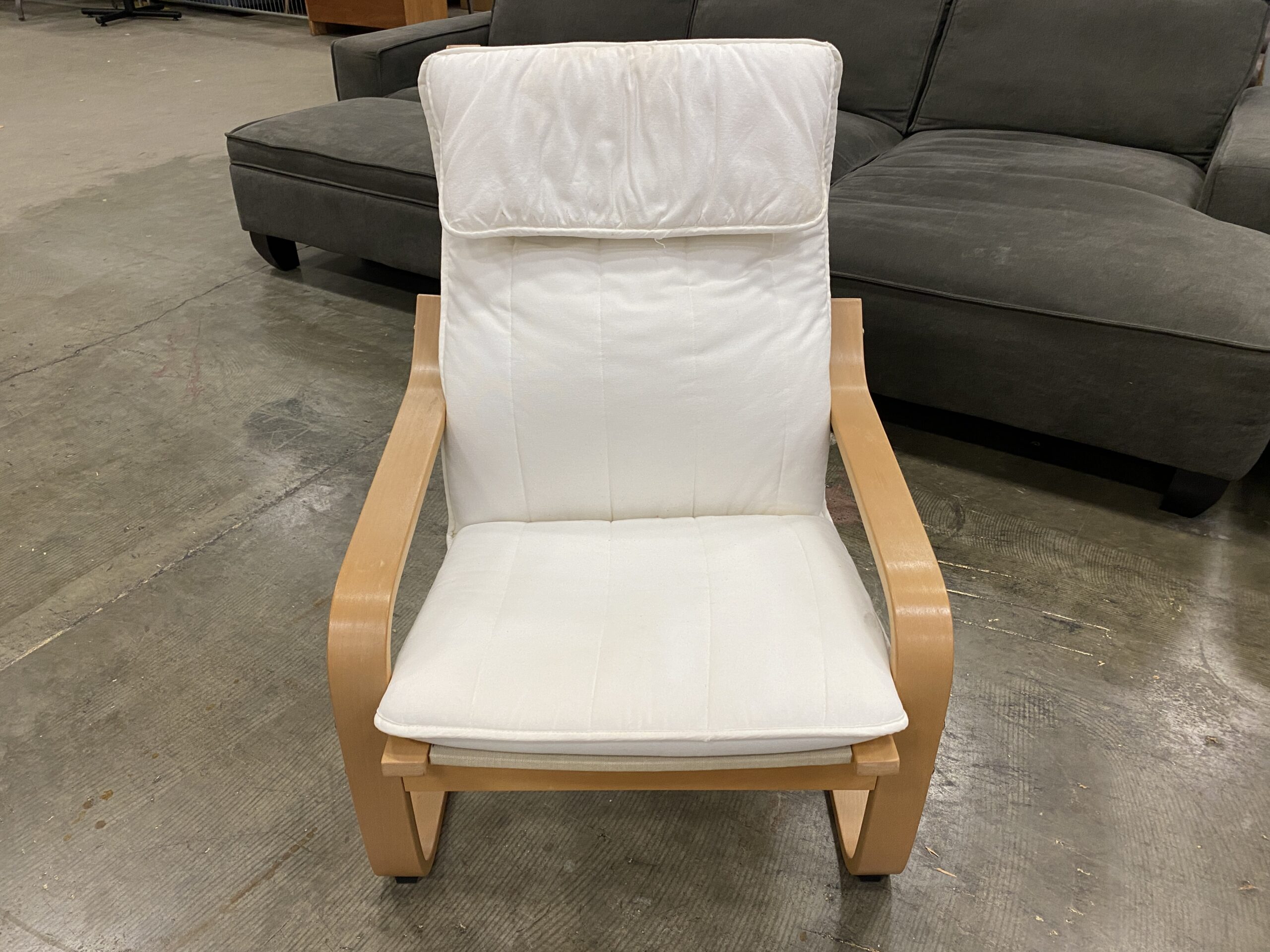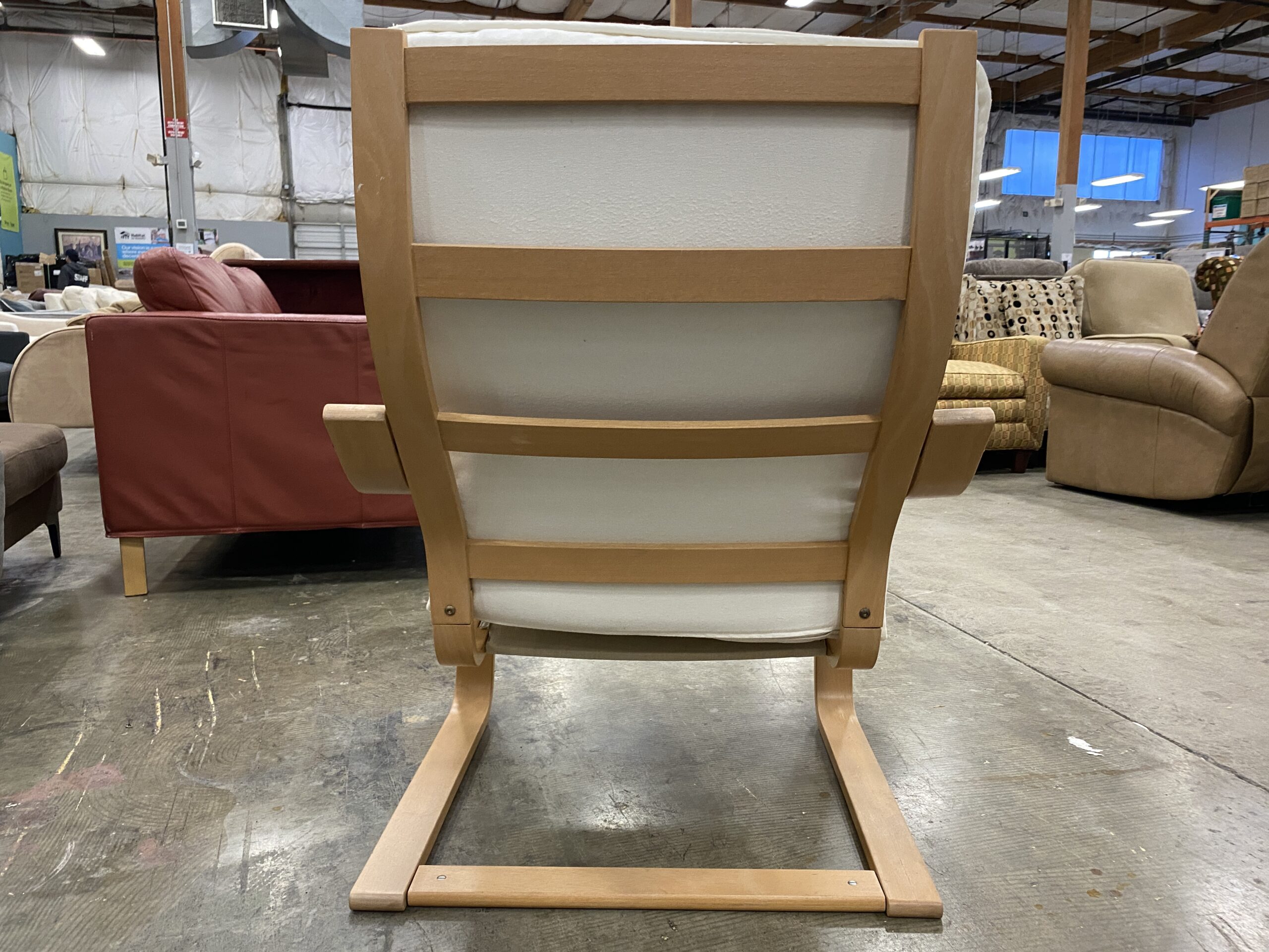 IKEA Poang Rocker and Ottoman with White and Tan Cushions