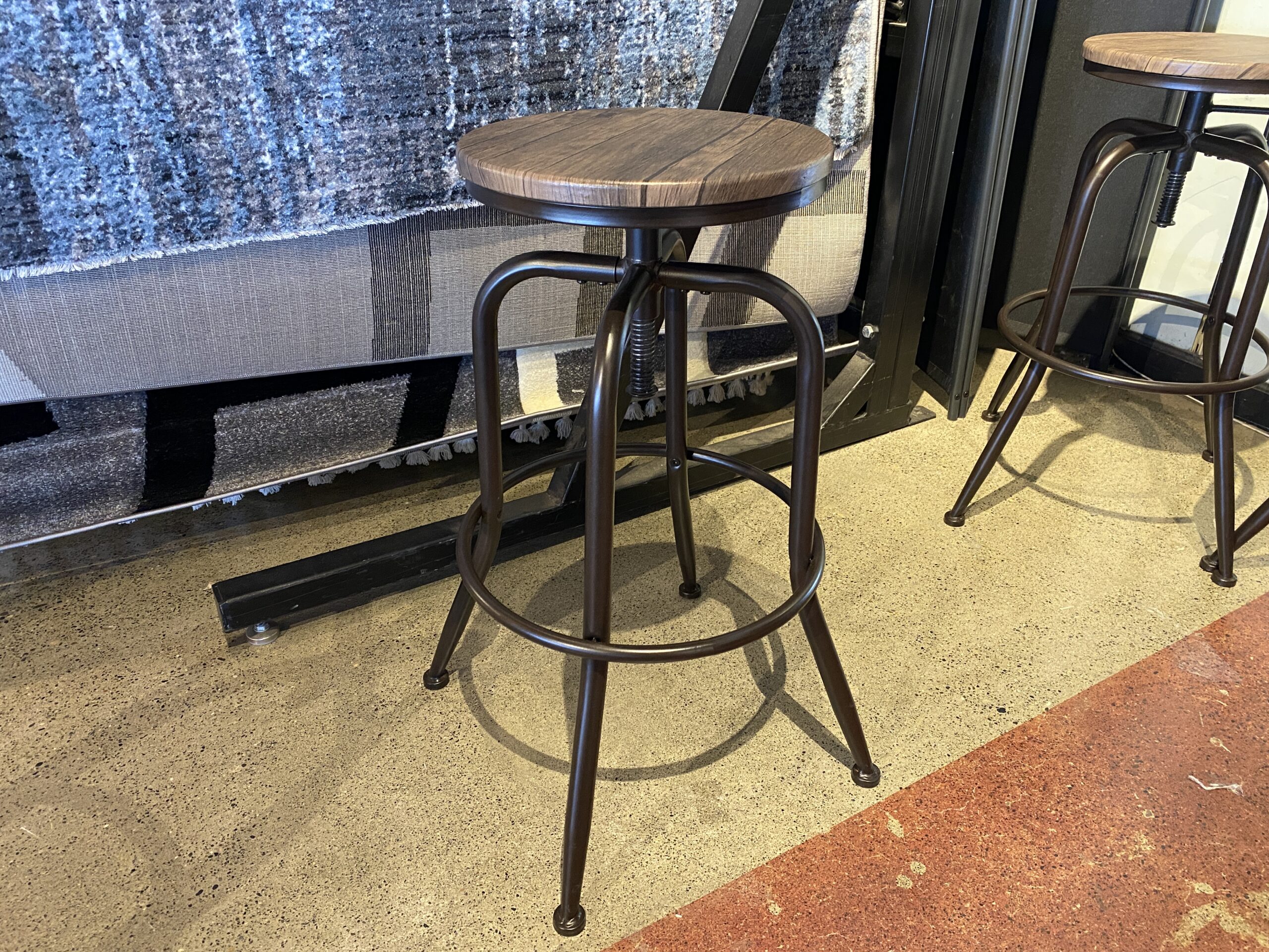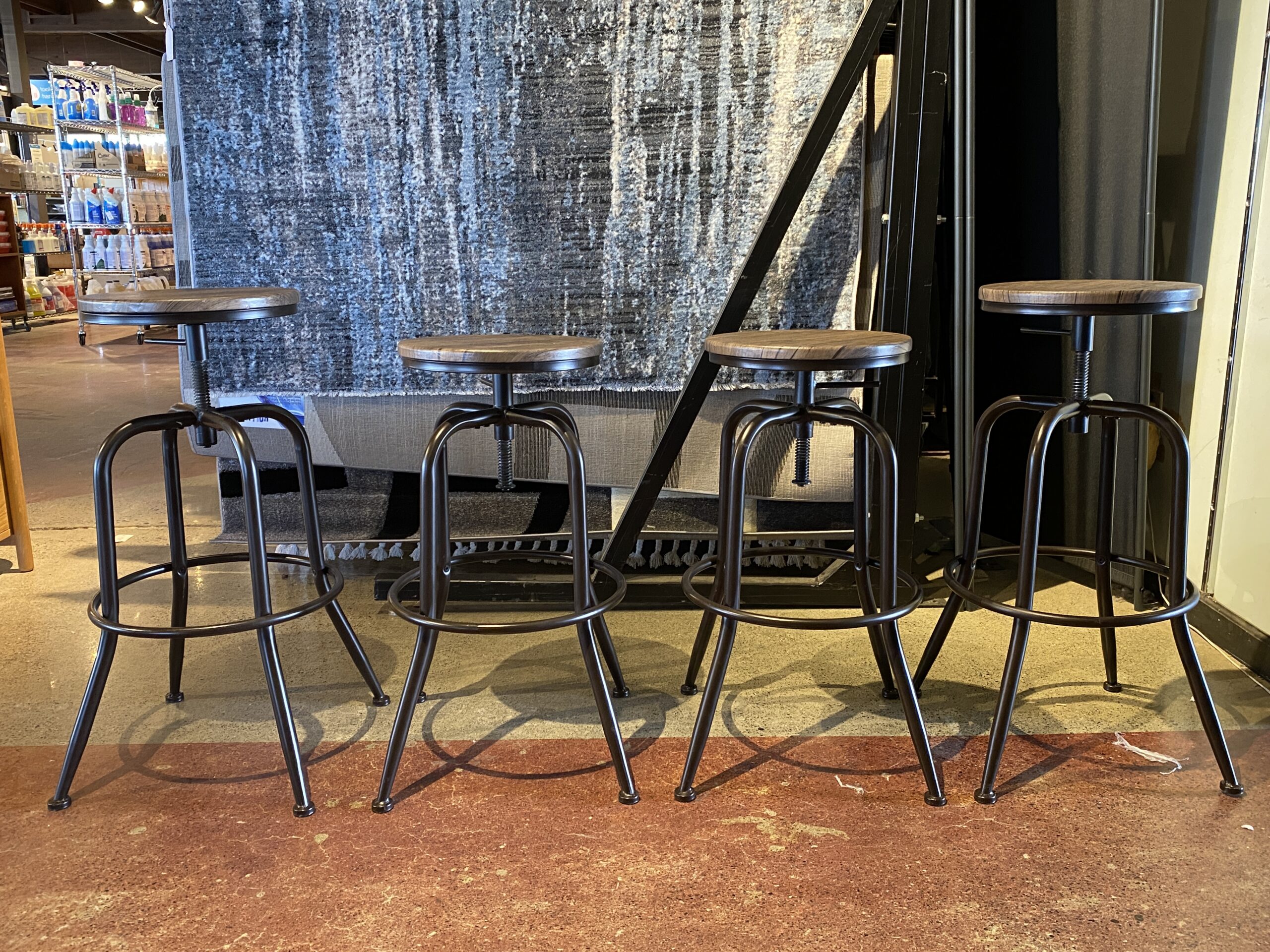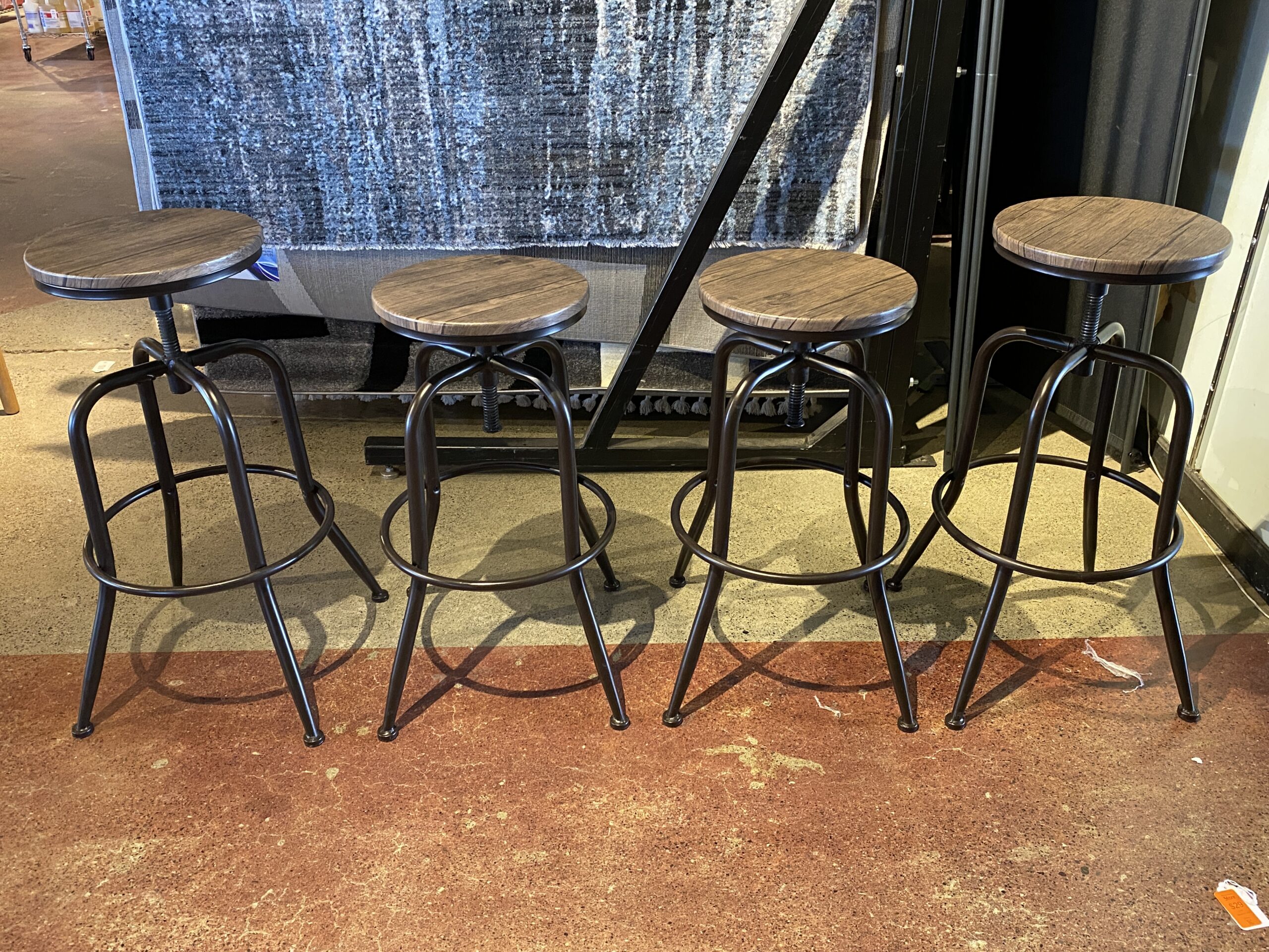 Industrial-Style Adjustable Swivel Bar Stools in Brown (Set of 4 Stools)