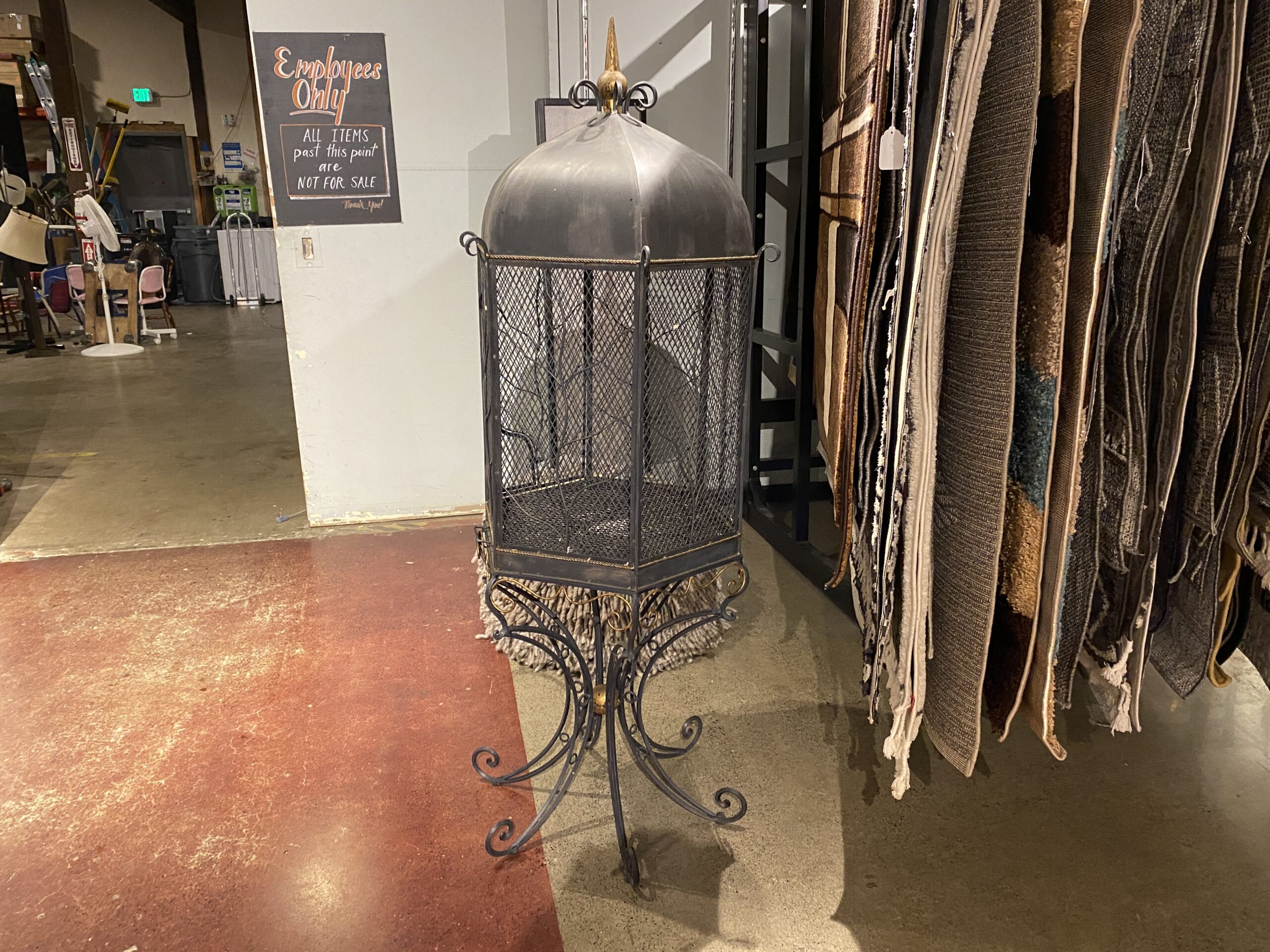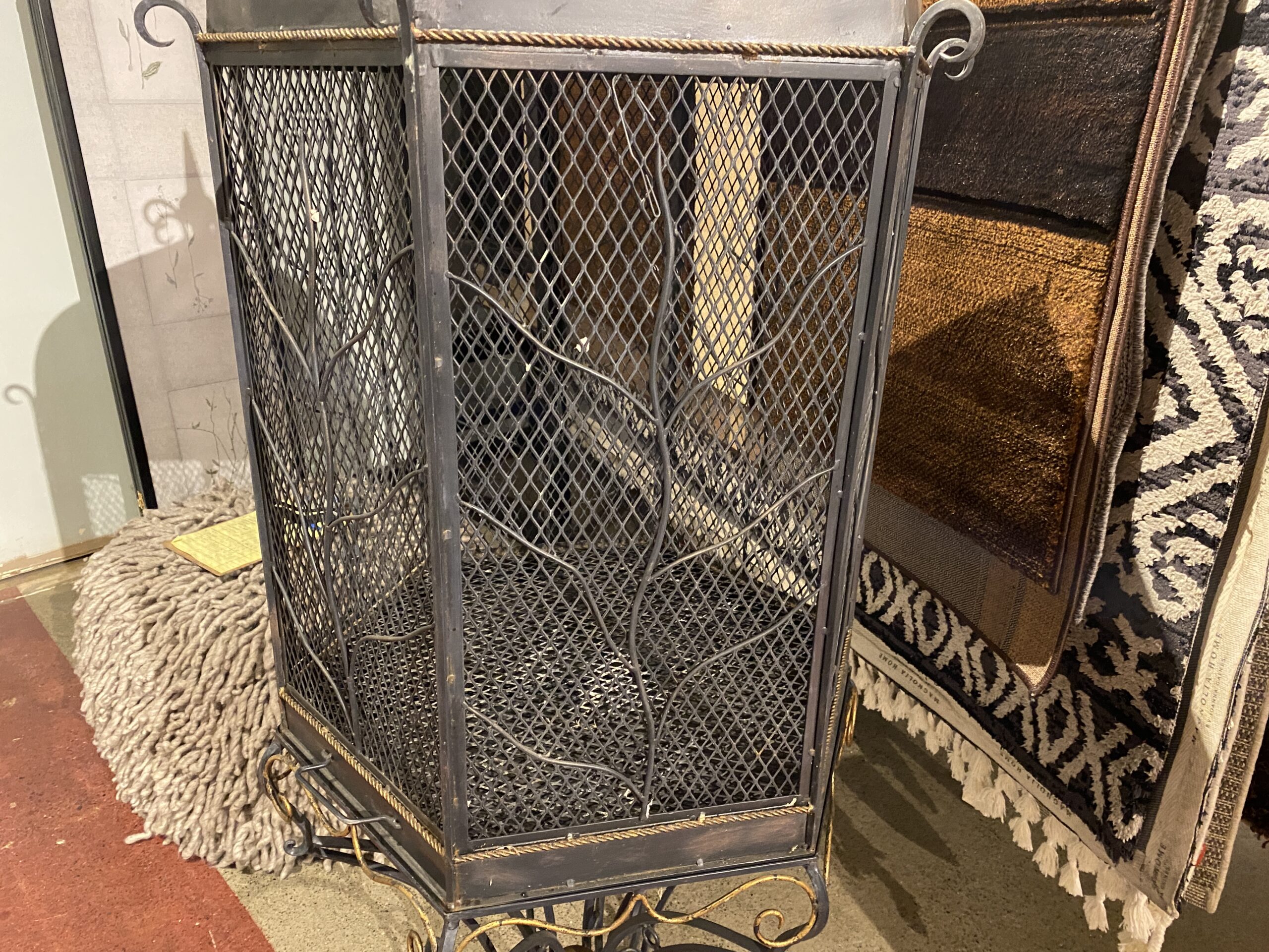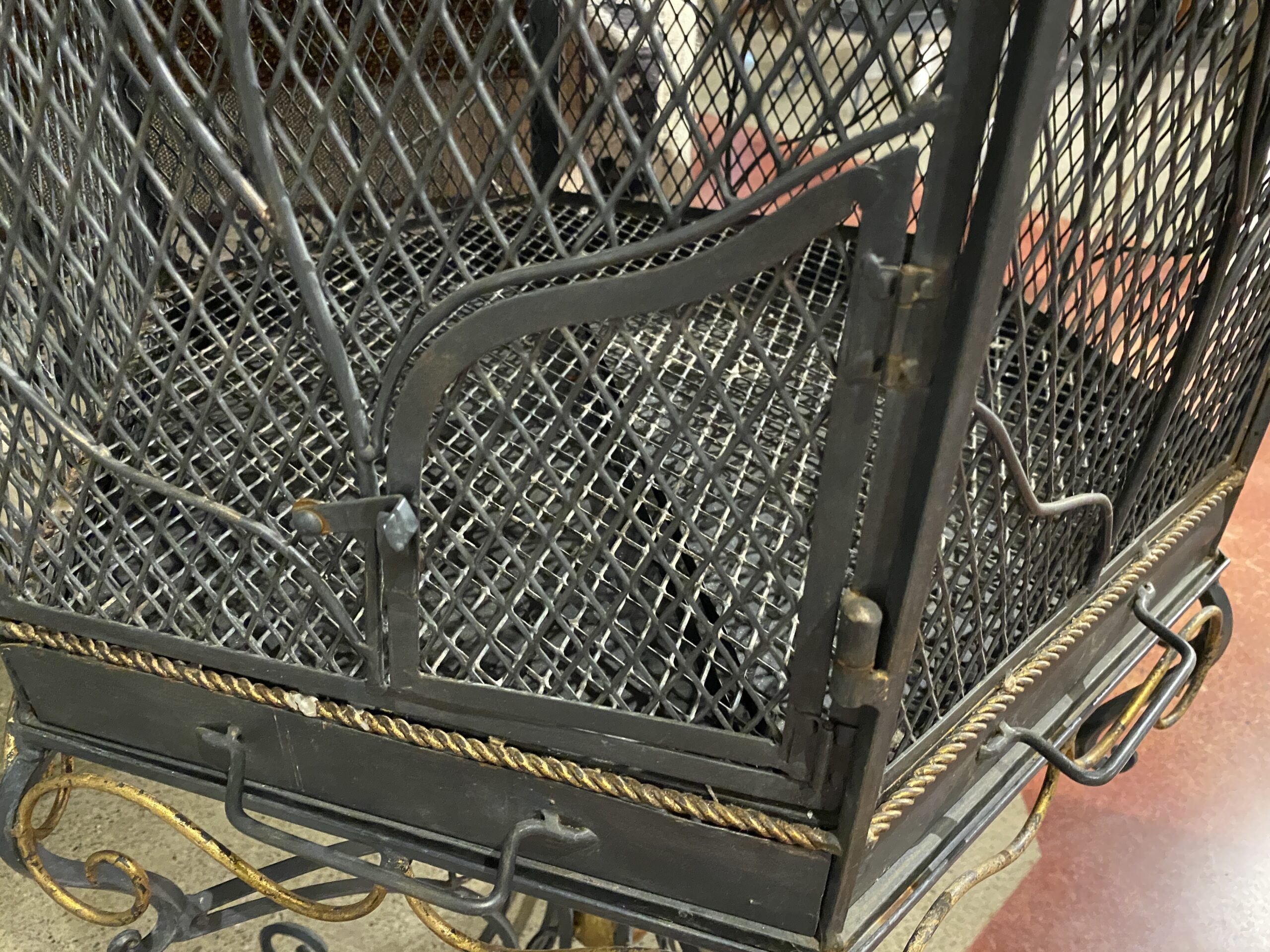 Large Ornate Black Metal Bird Cage with Intricate Scrollwork
