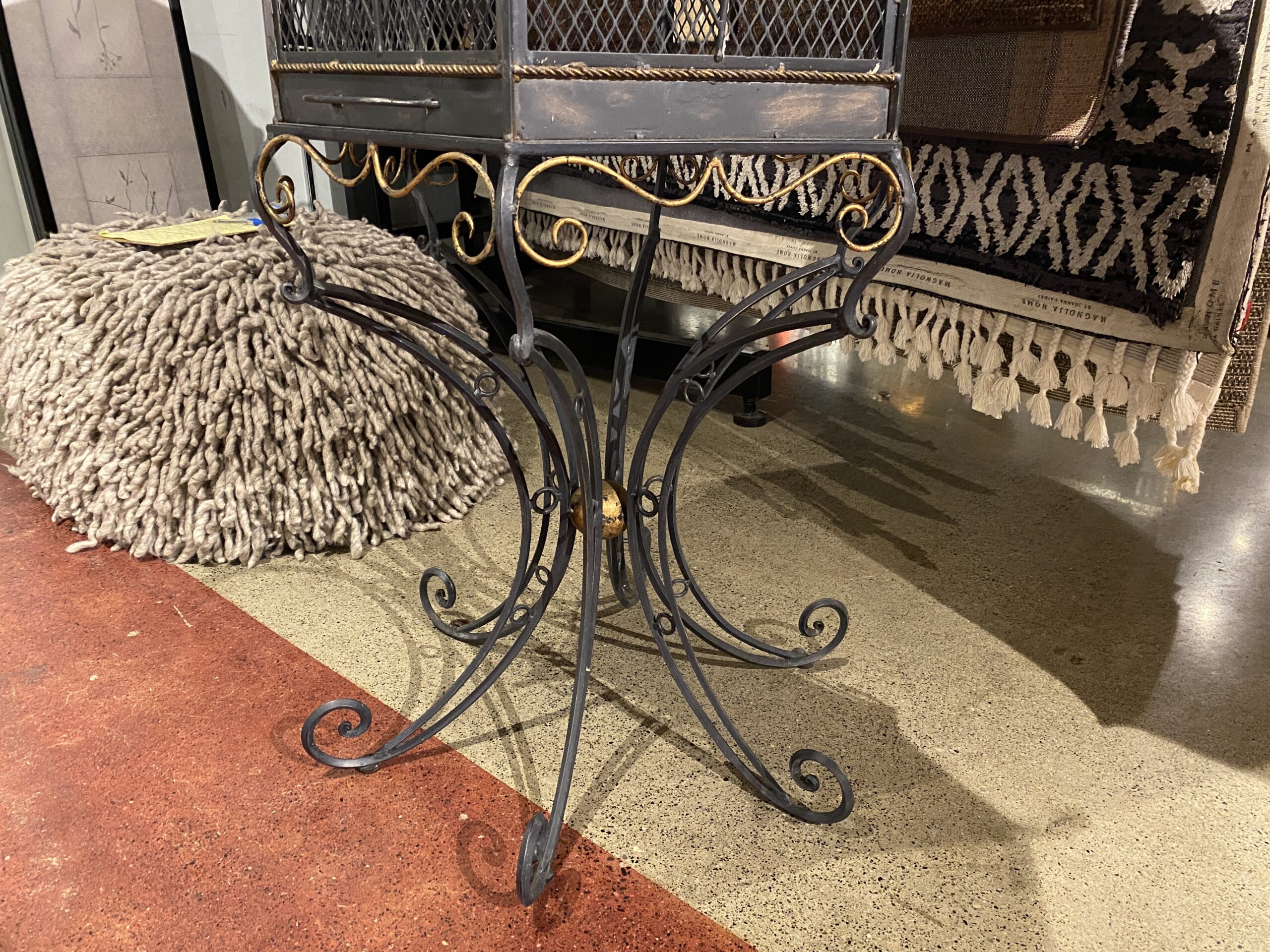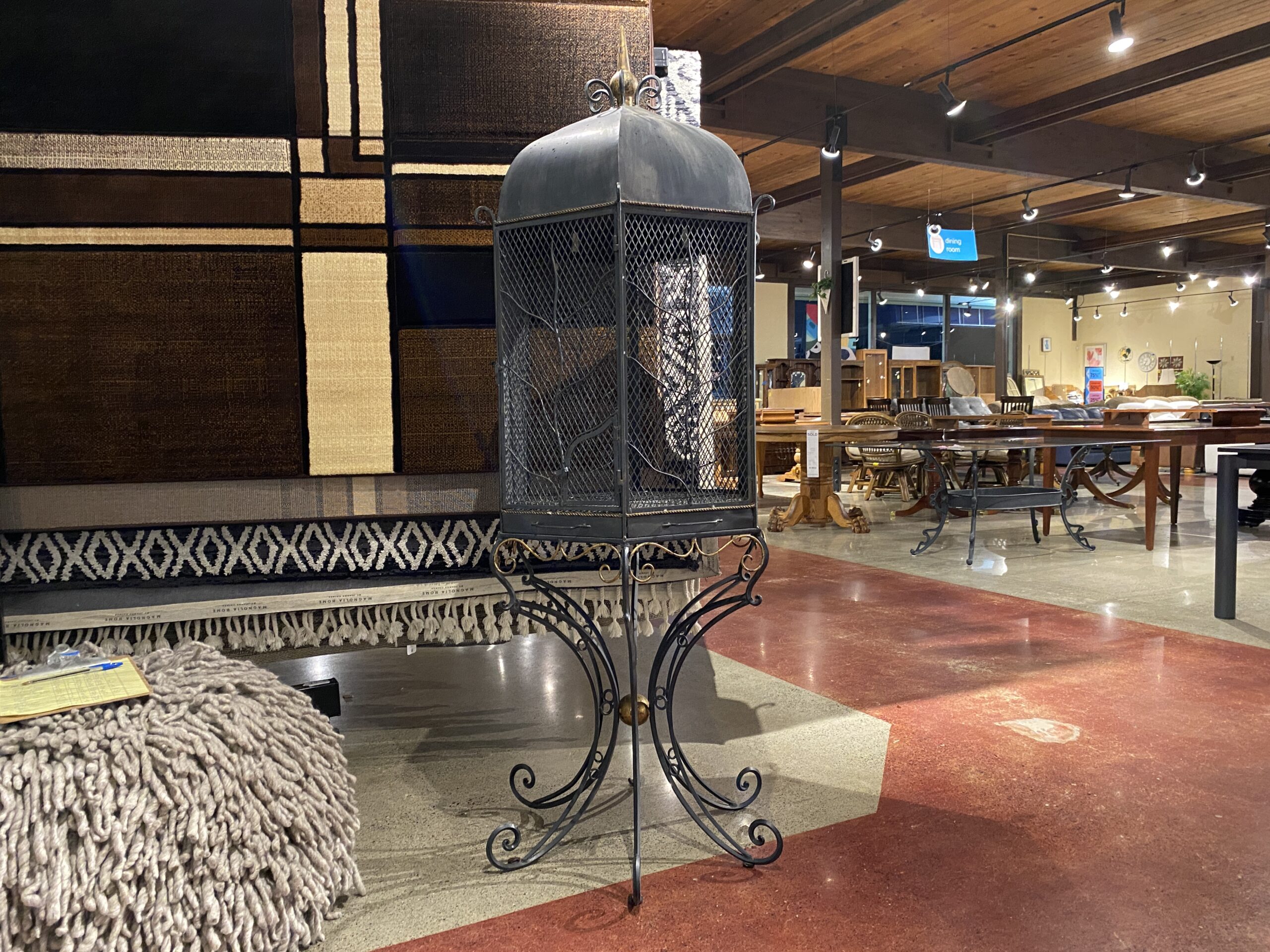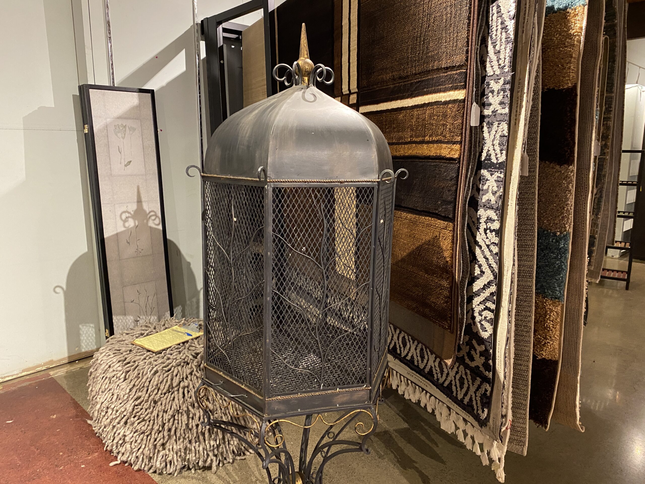 Large Ornate Black Metal Bird Cage with Intricate Scrollwork