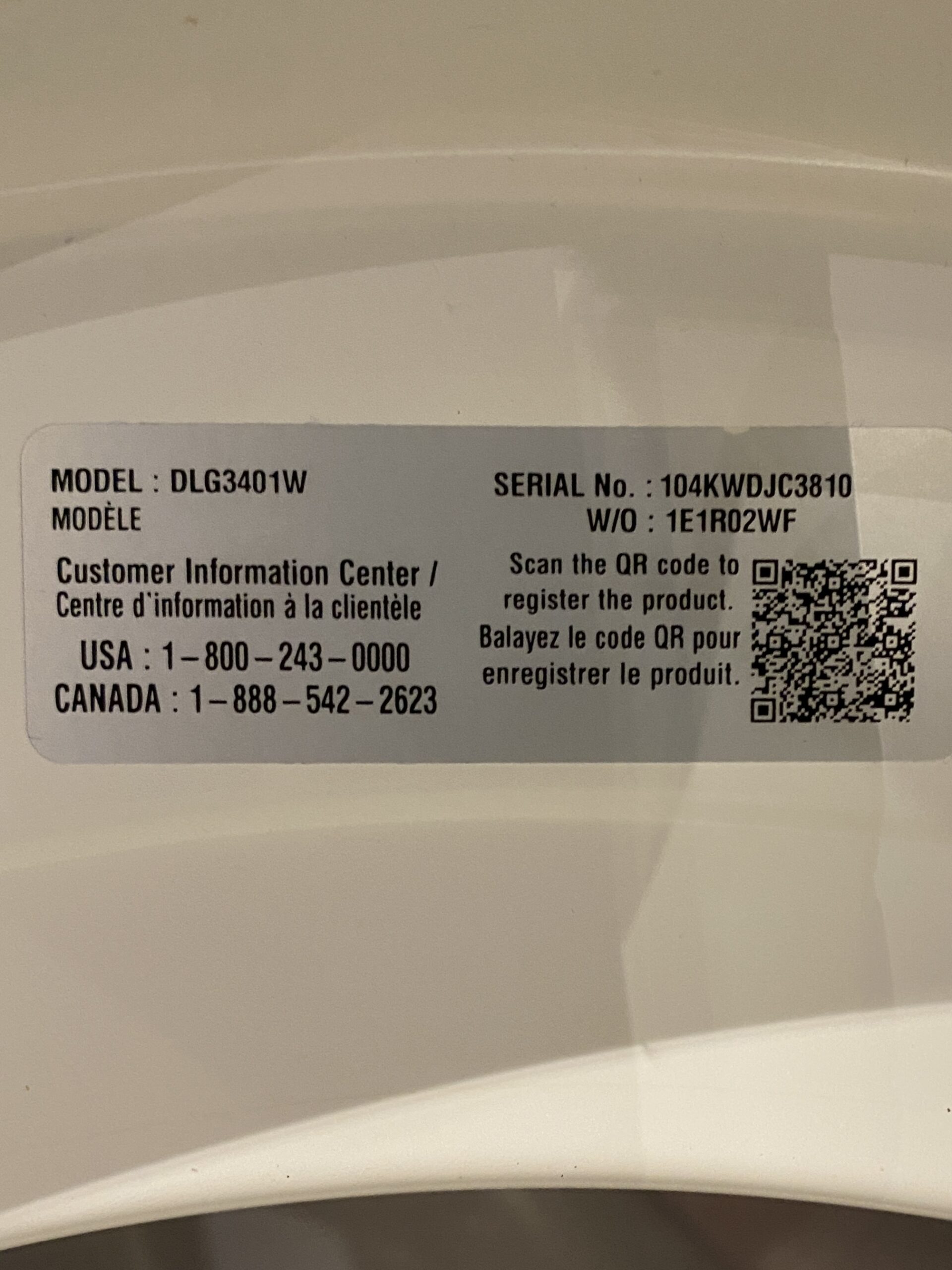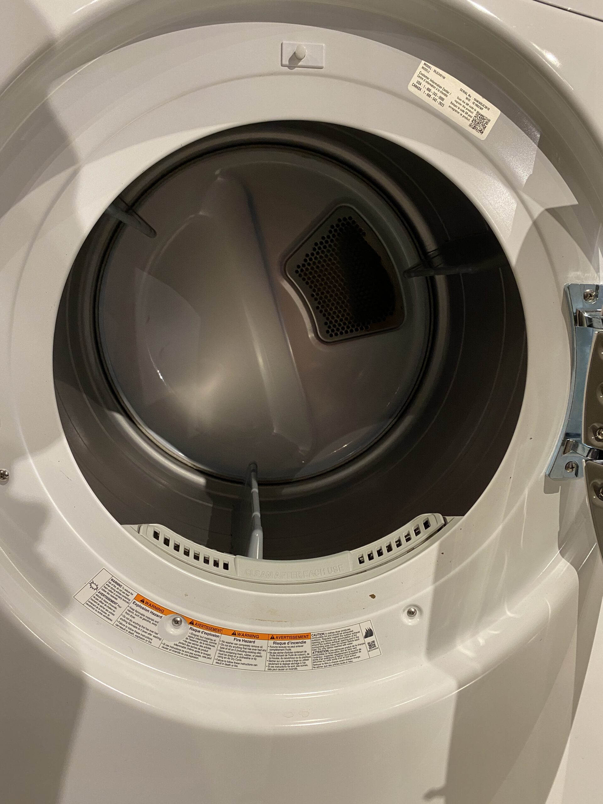 LG Ultra Capacity Front Load Stackable GAS Dryer Model #DLG3401W, Like New
