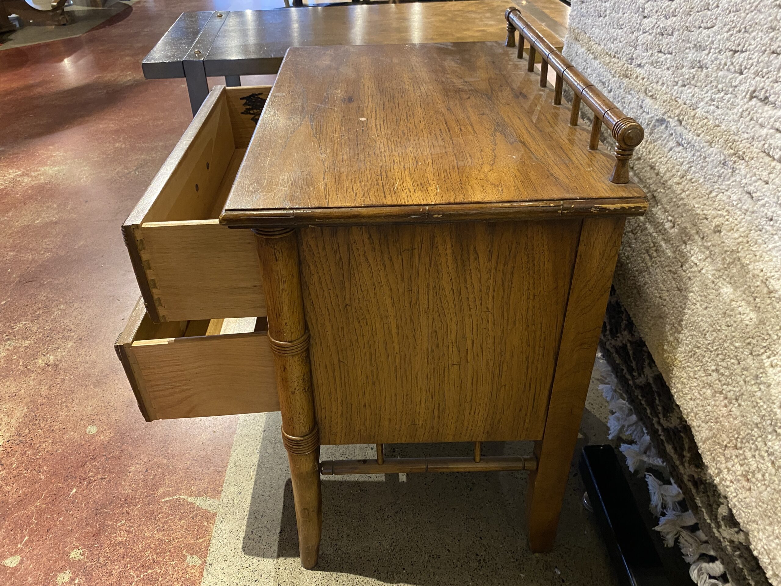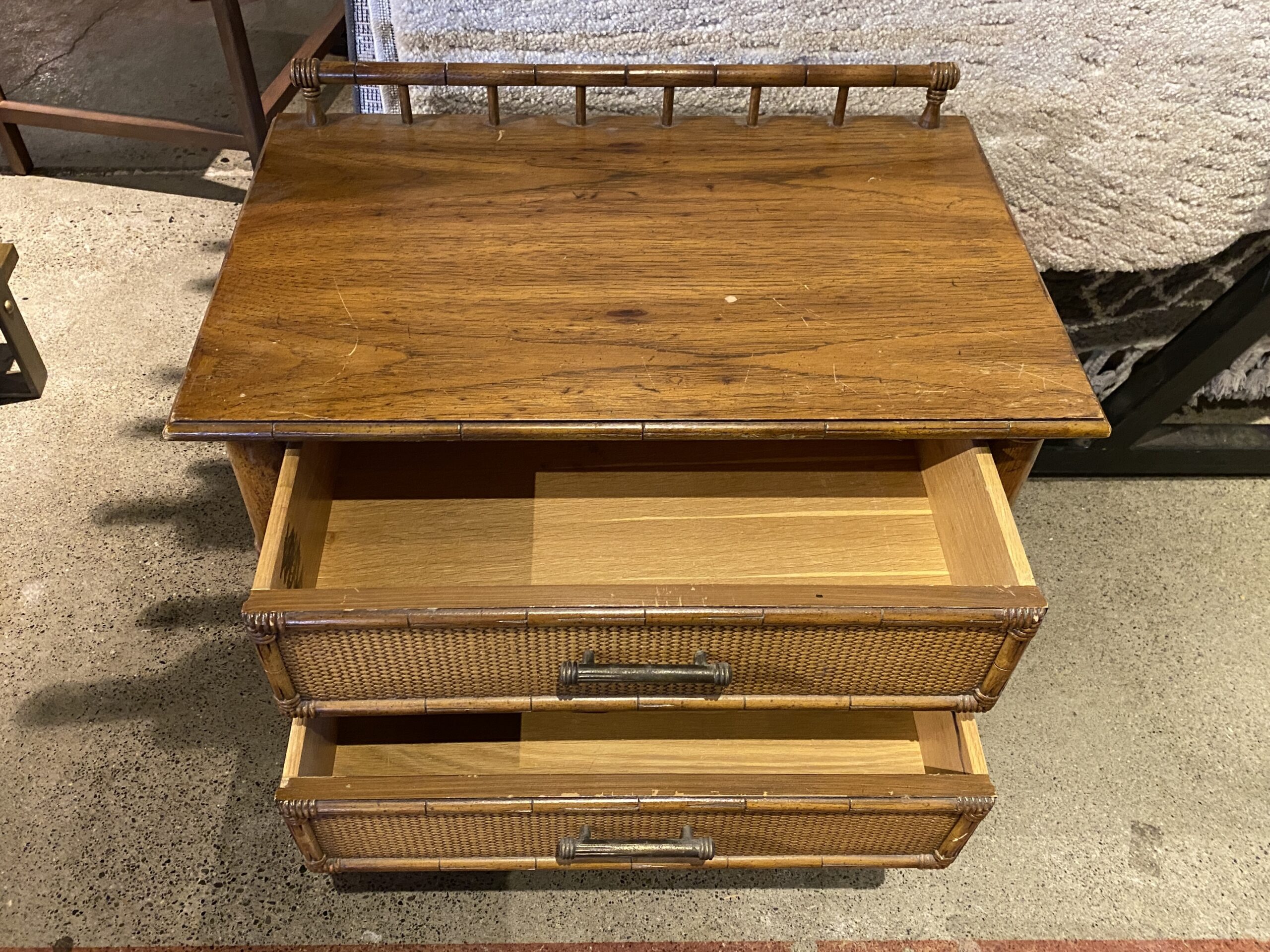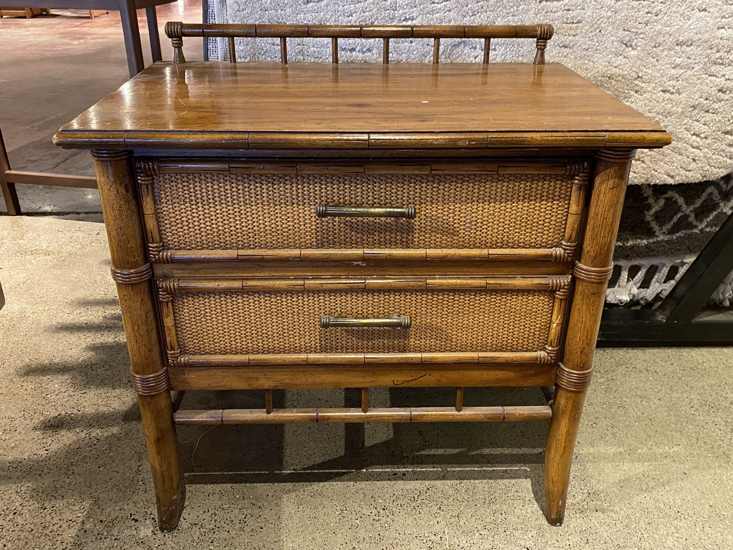 Mid-Century Faux Bamboo 2-Drawer Side Table