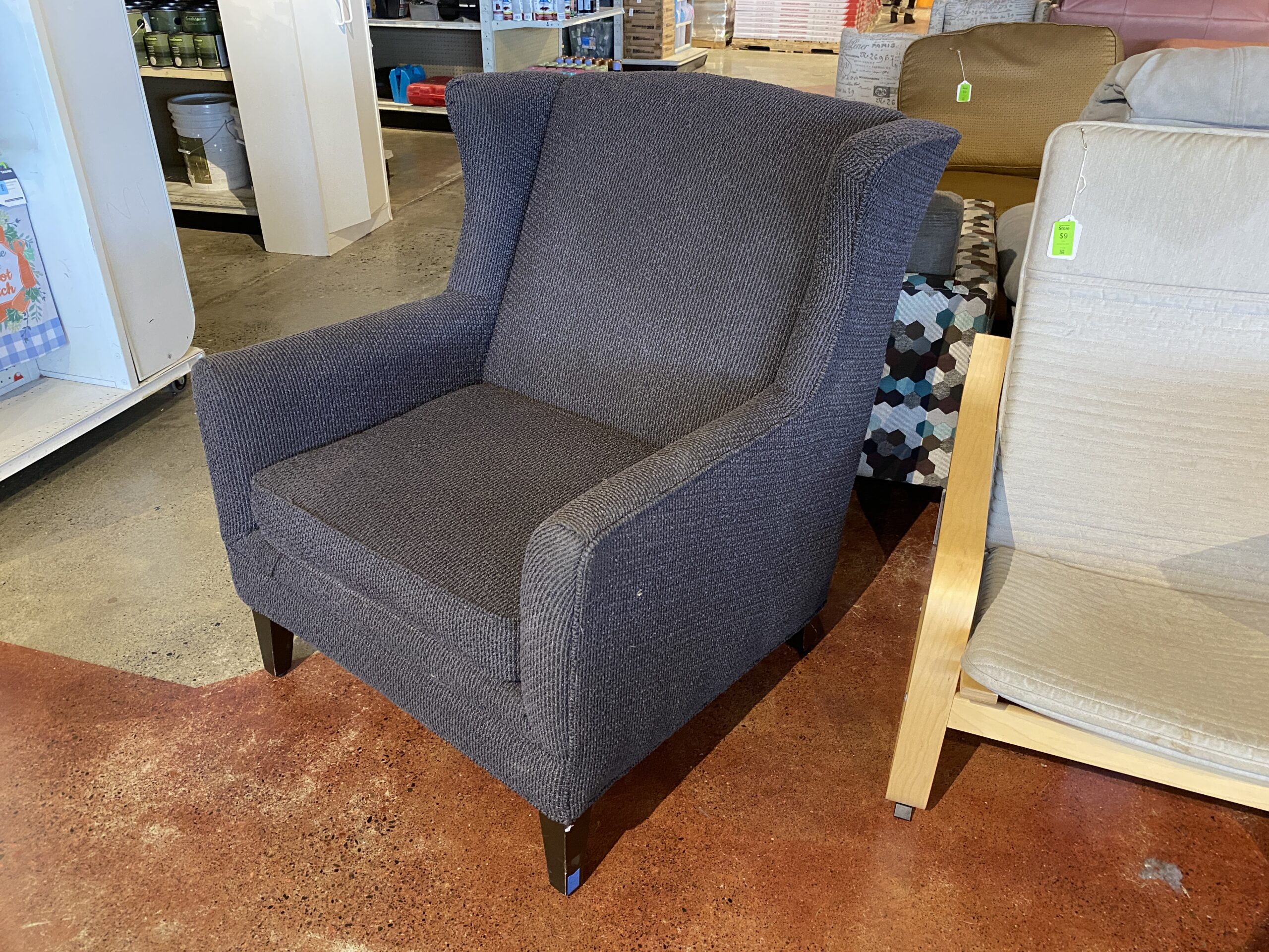Modern Charcoal Colored Wingback Chair