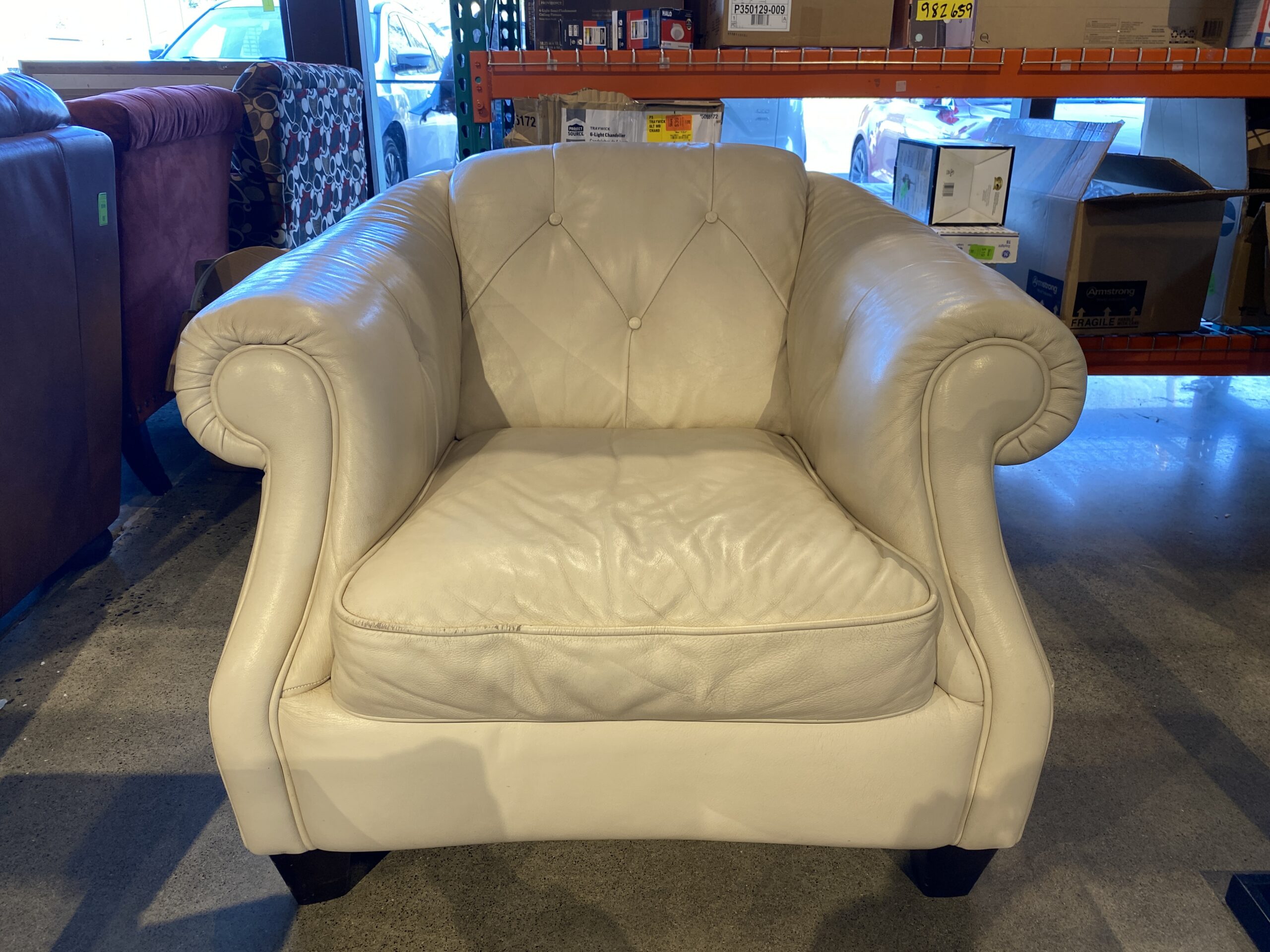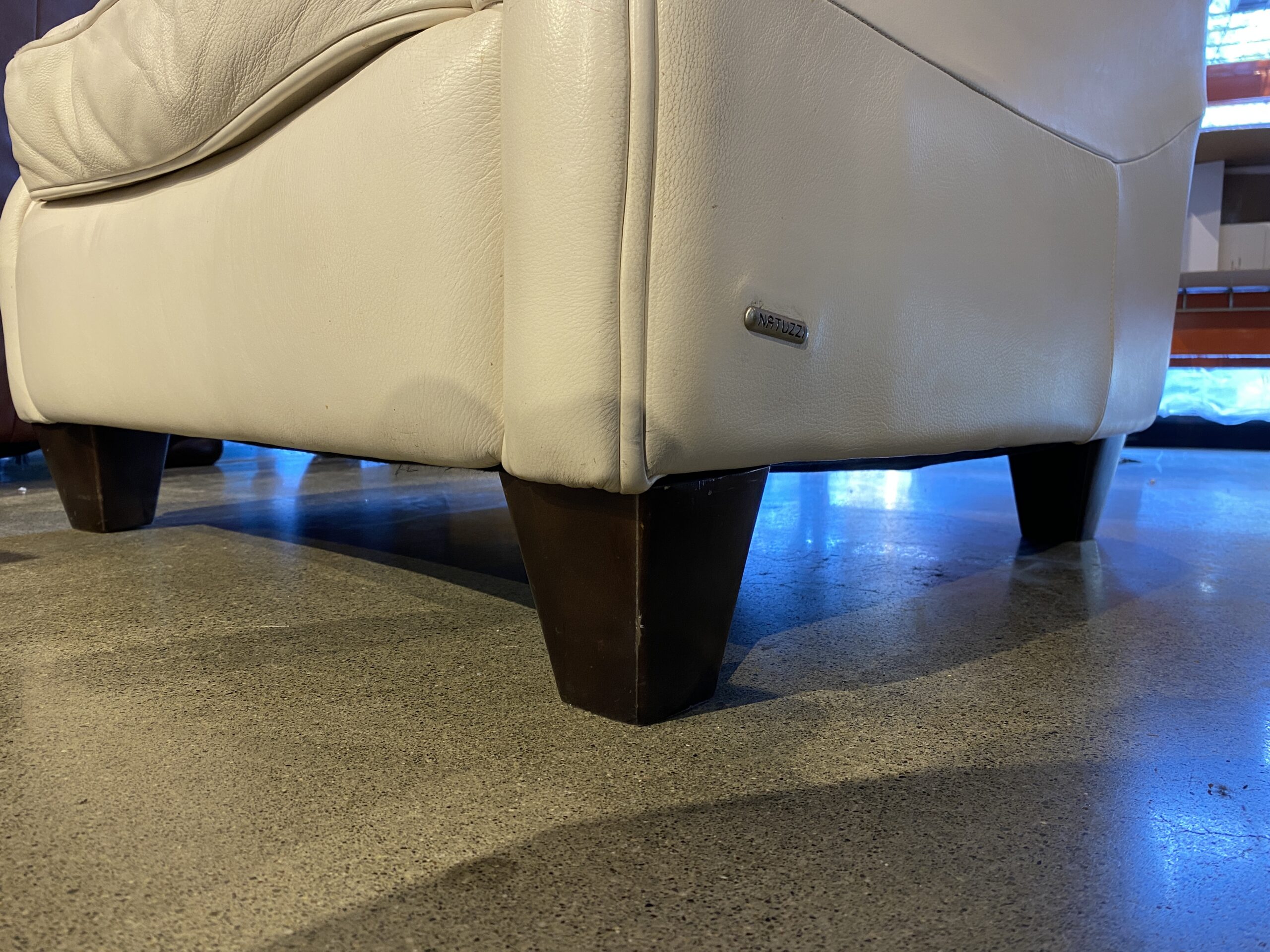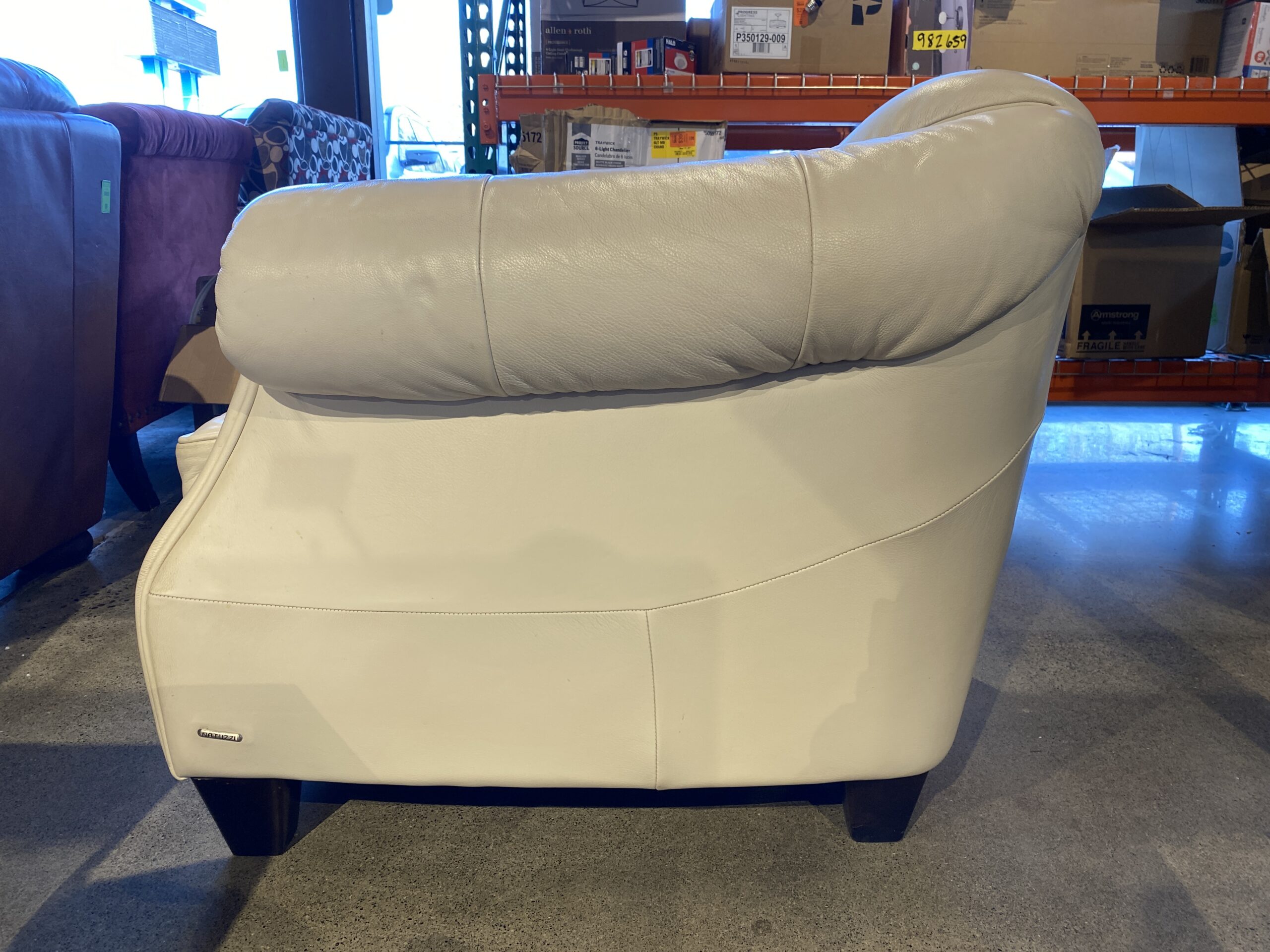 NATUZZI B520 Italian White Leather Tufted Armchair with Rolled Arms