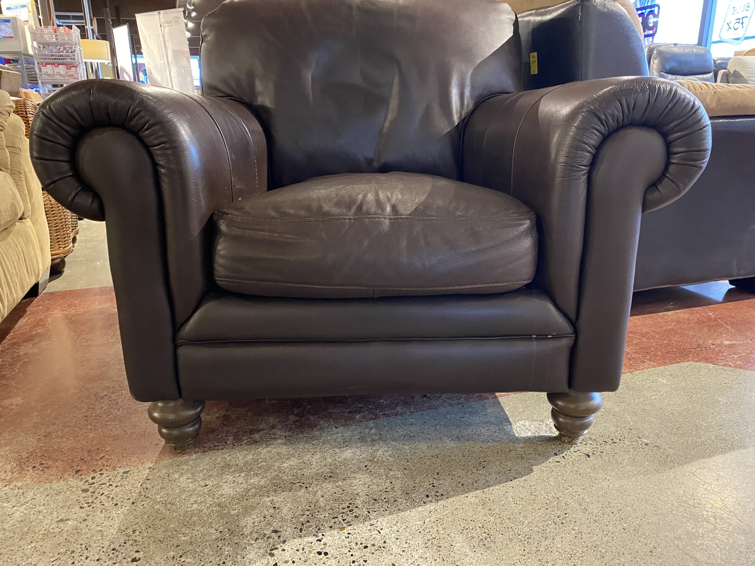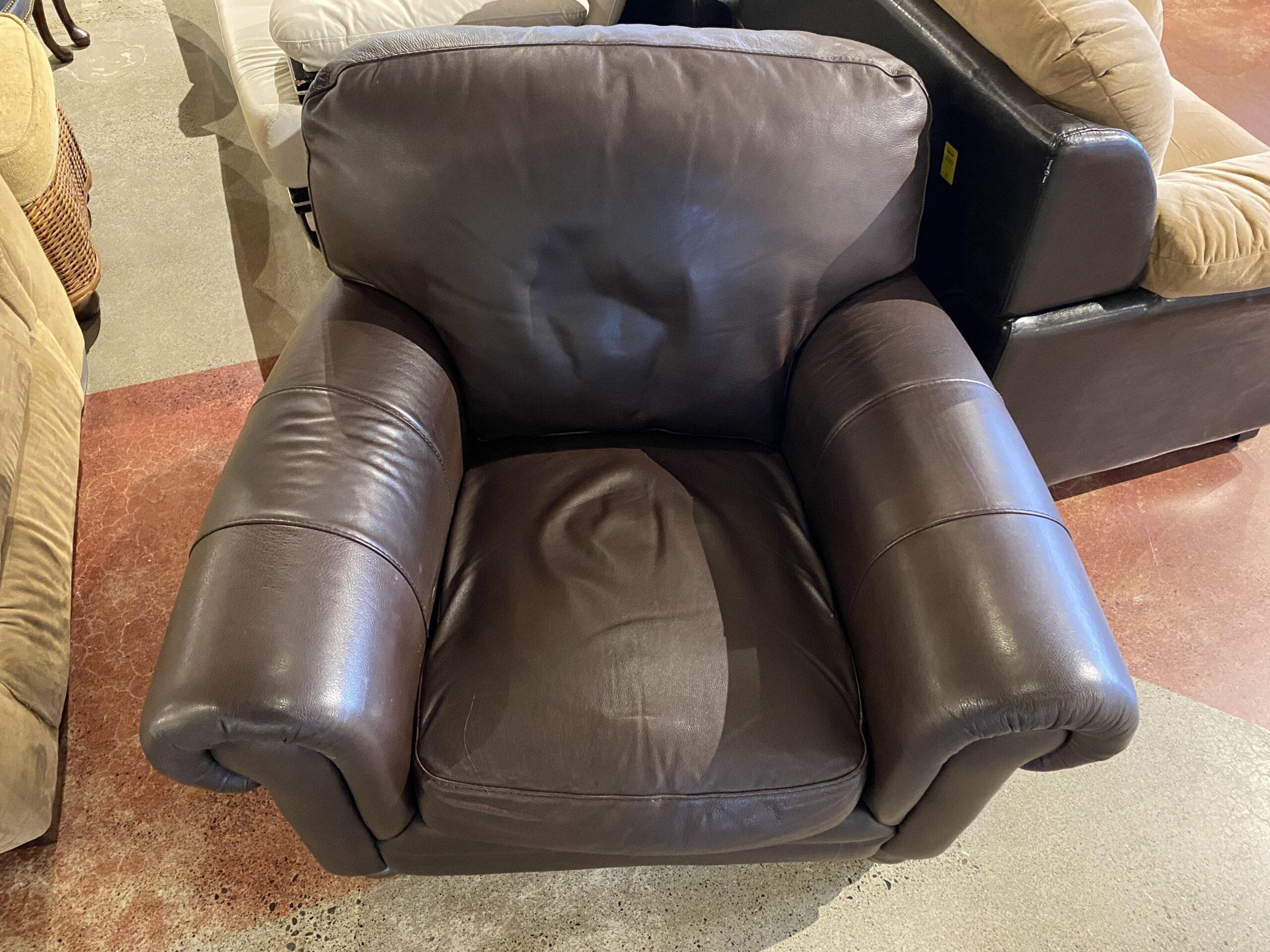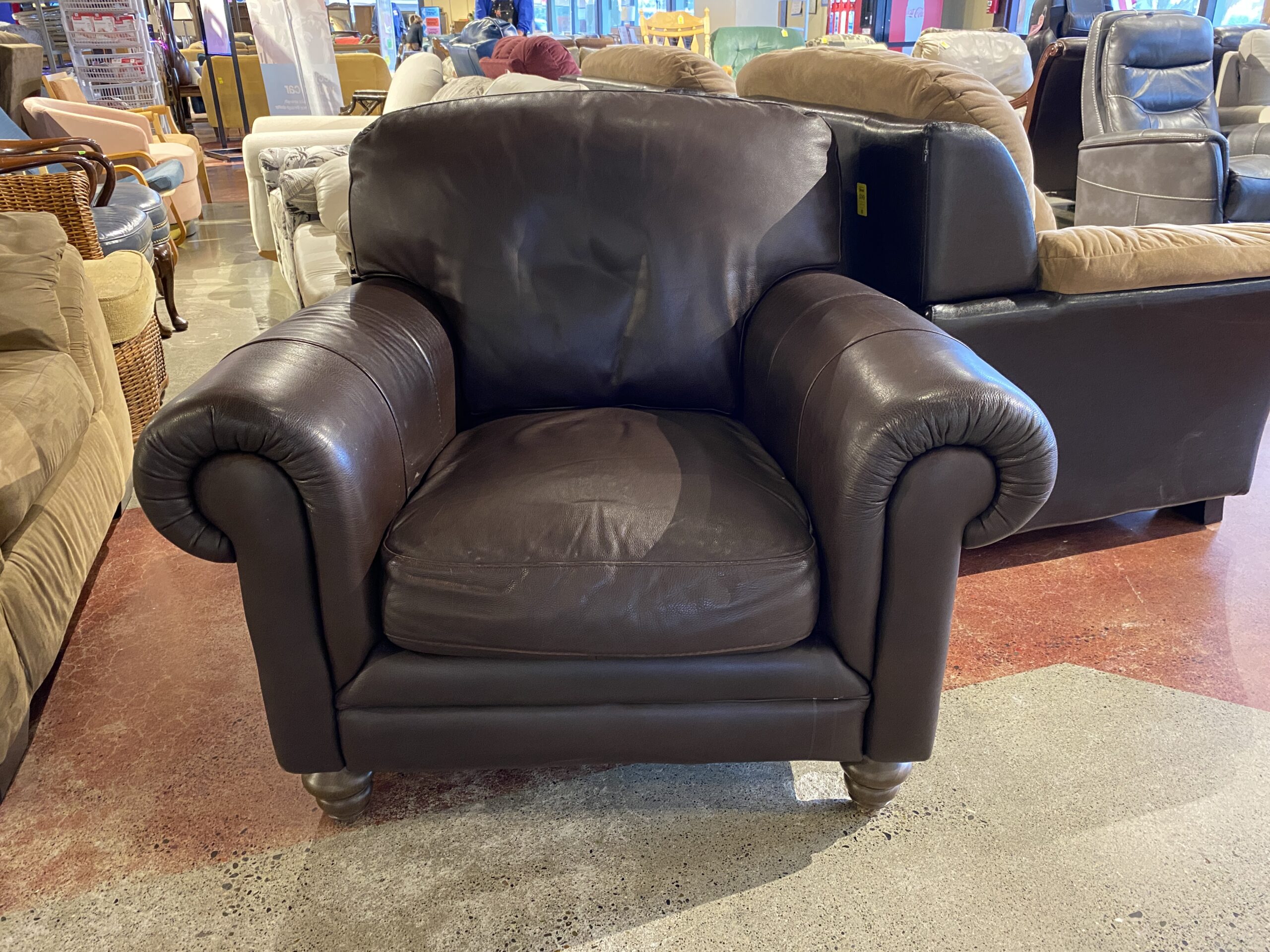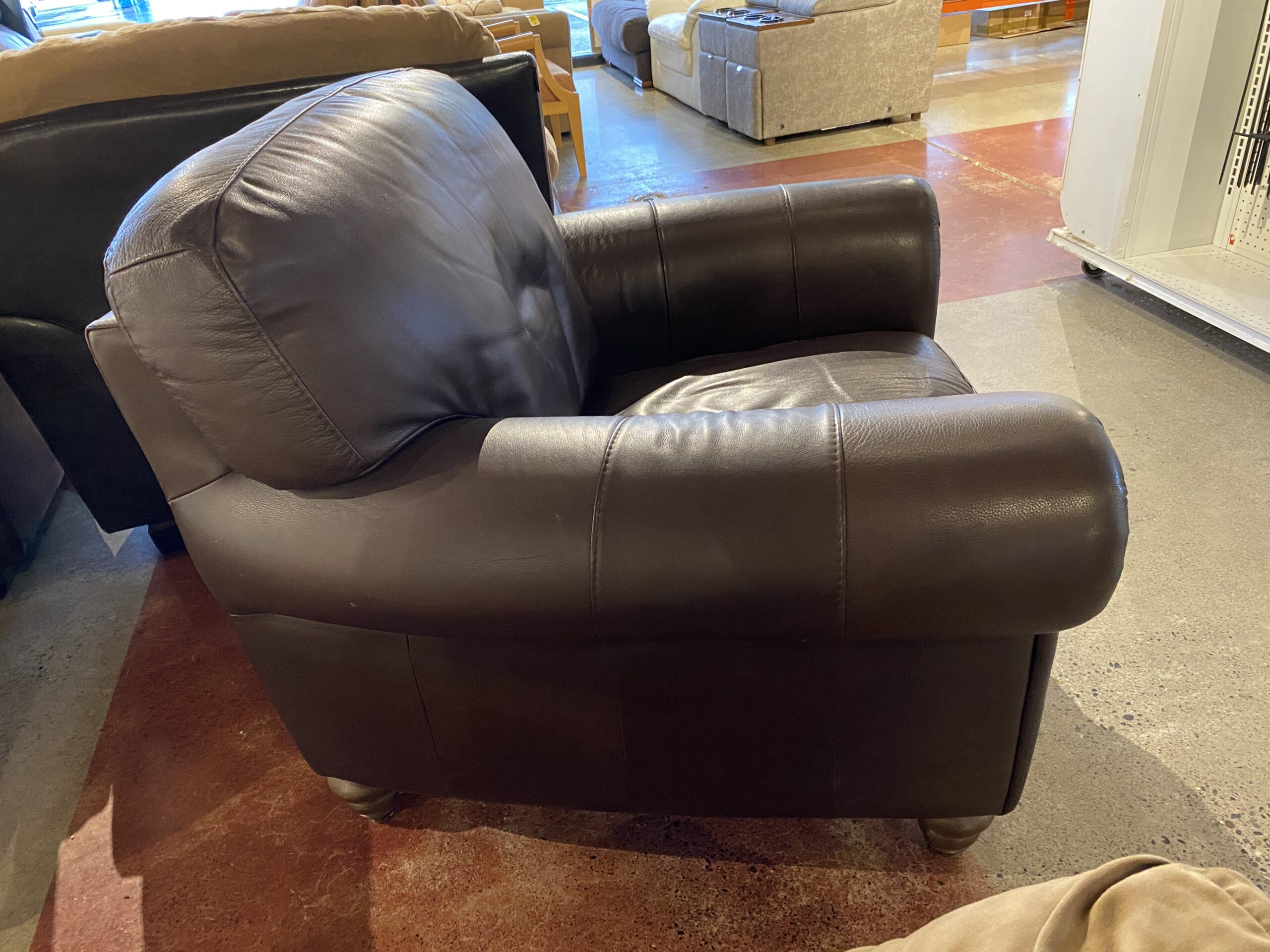 NATUZZI Brown Leather Armchair with Rolled Arms