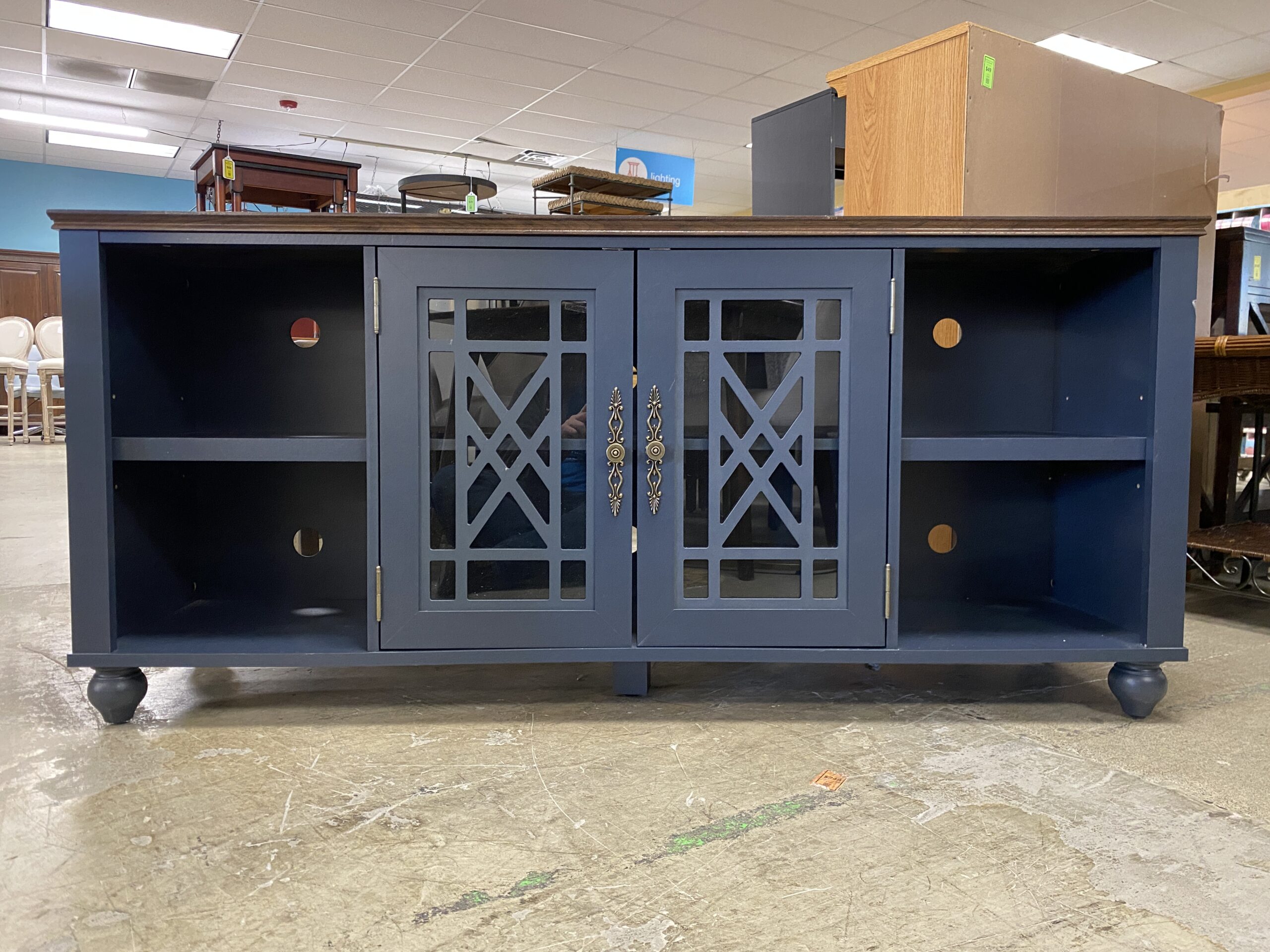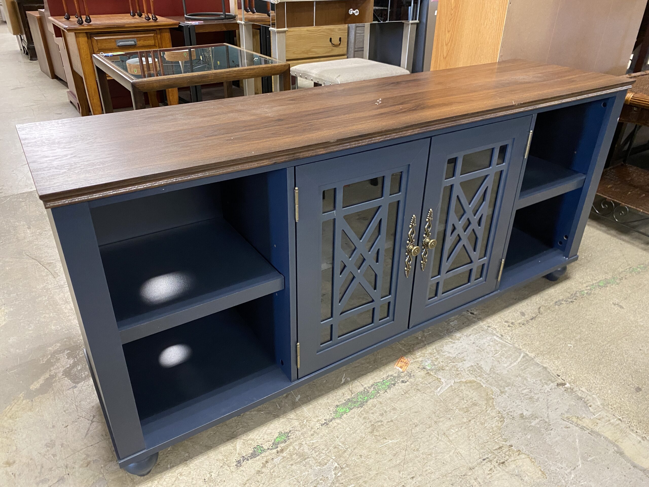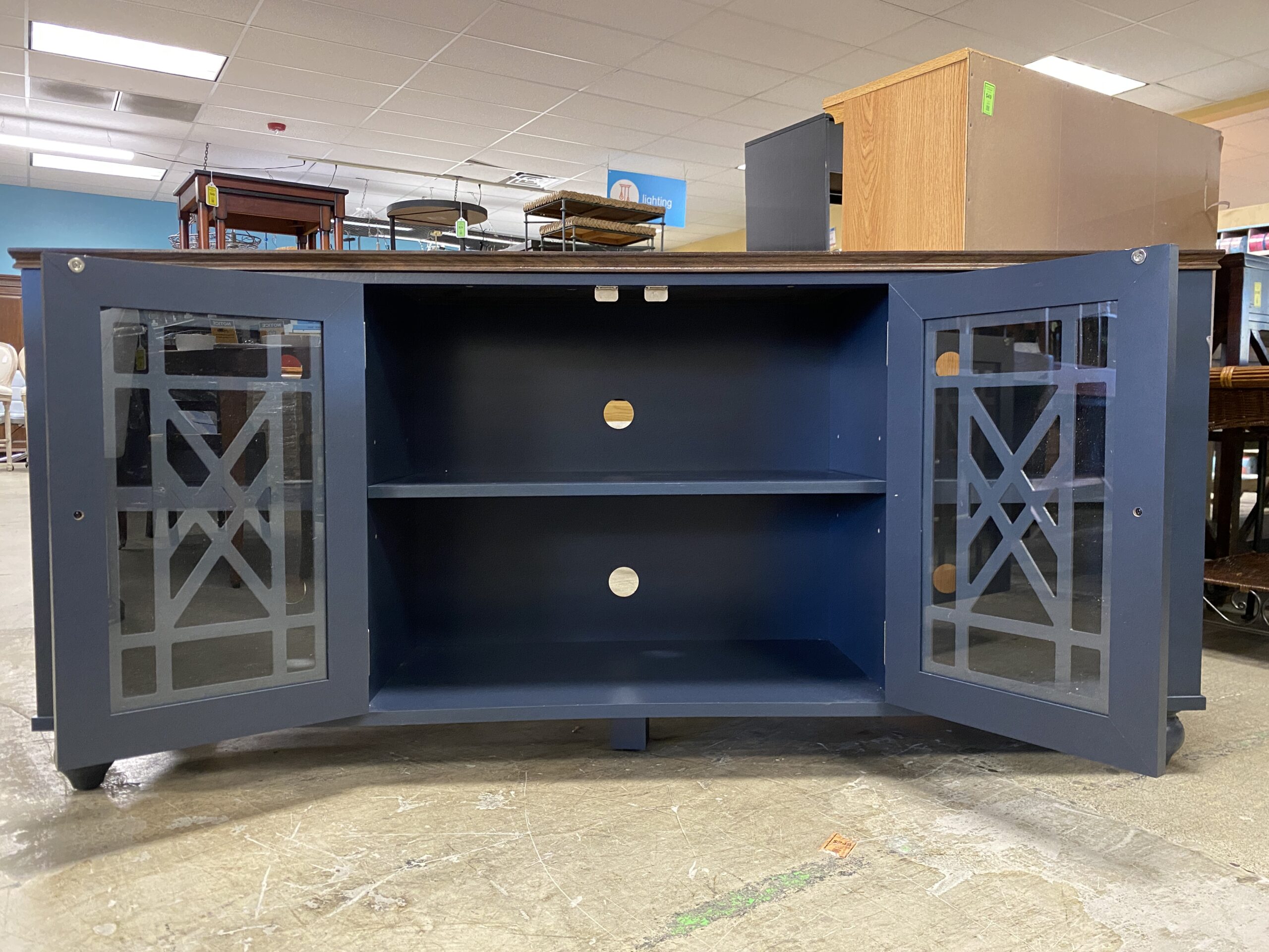 Navy Blue Media Stand w/ Glass Door