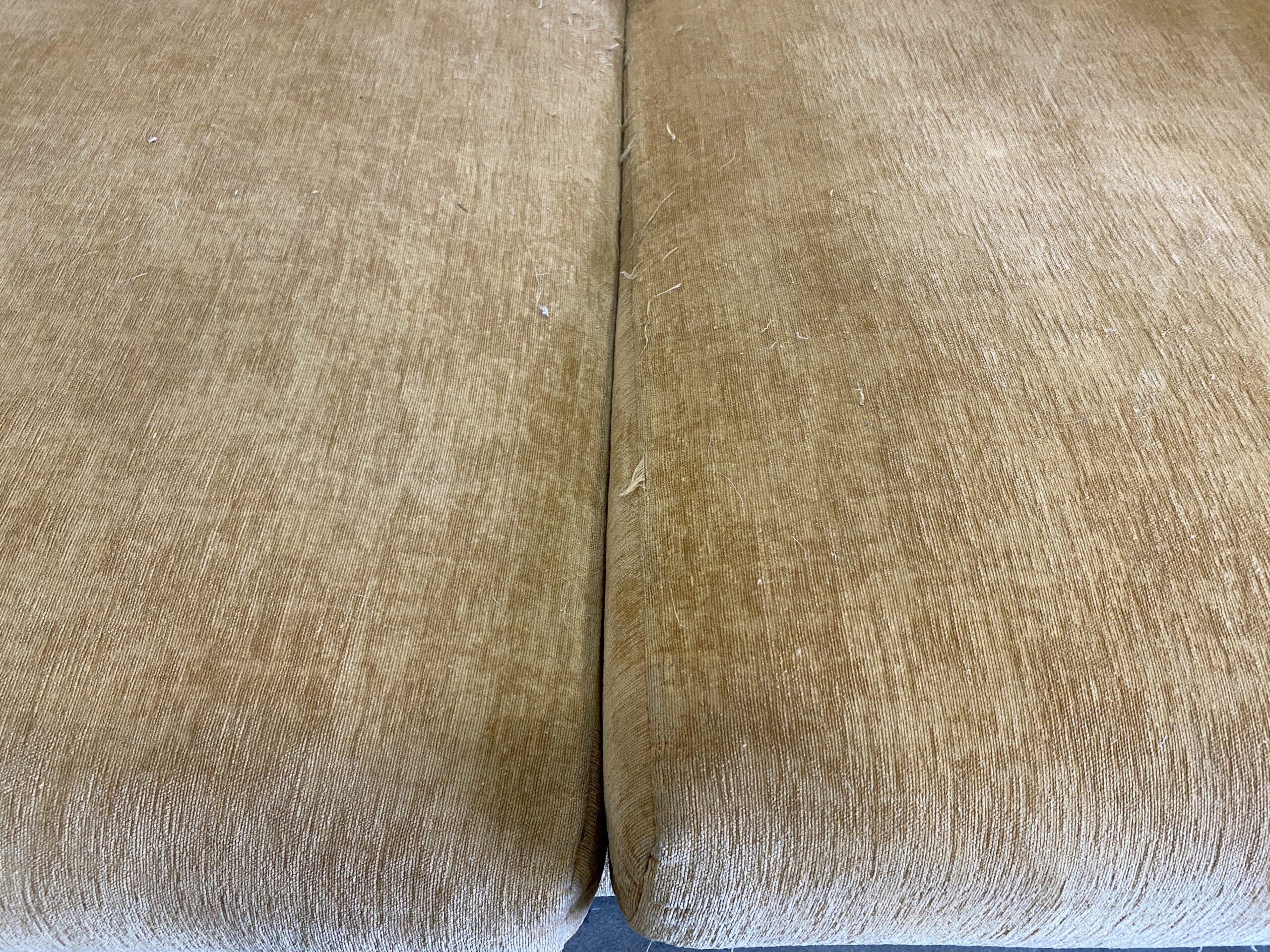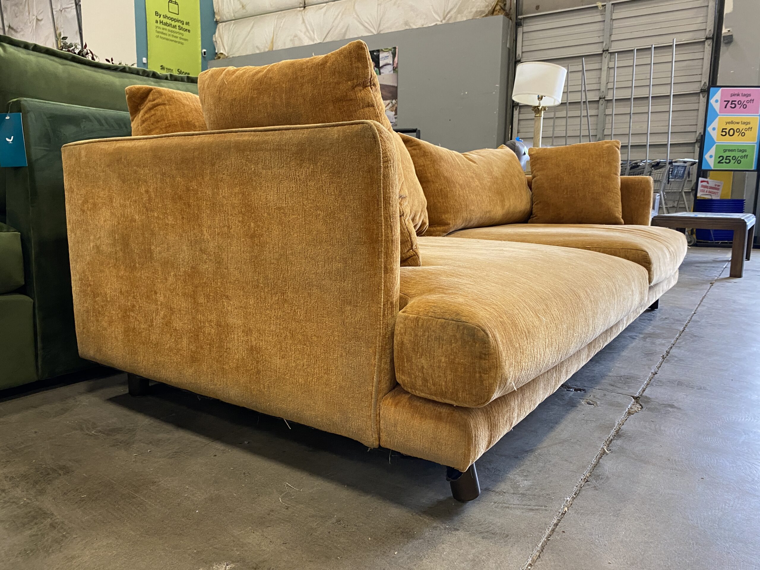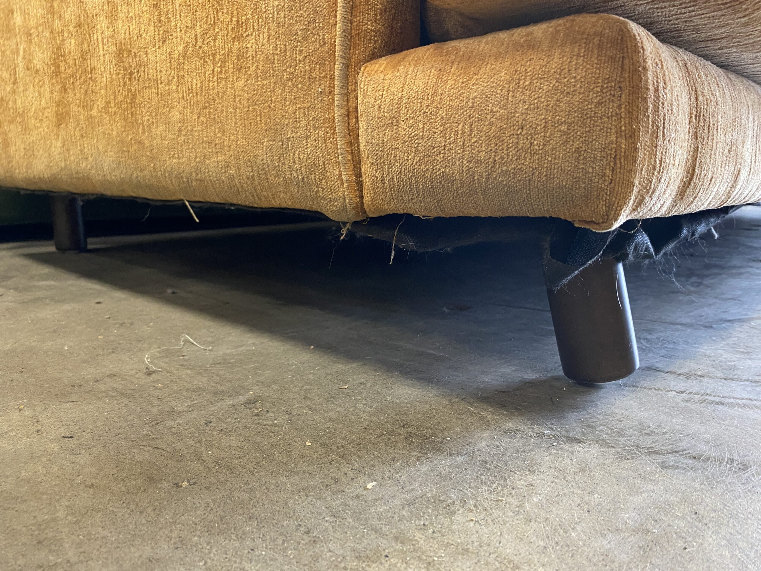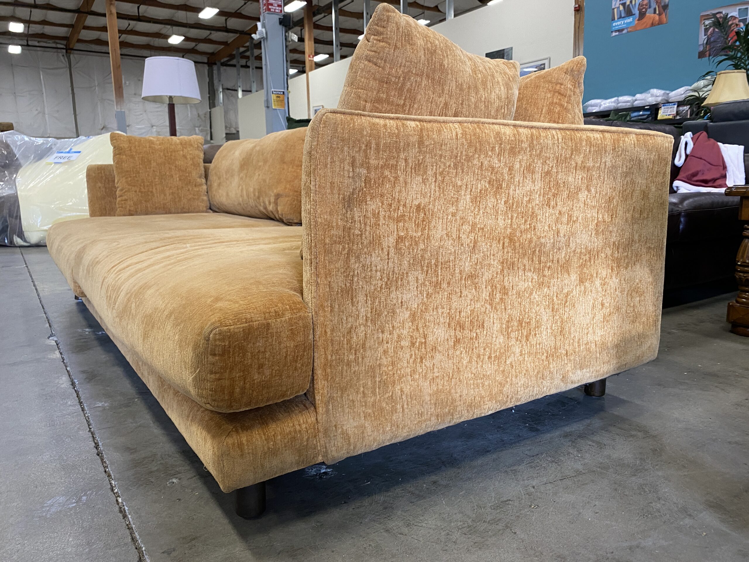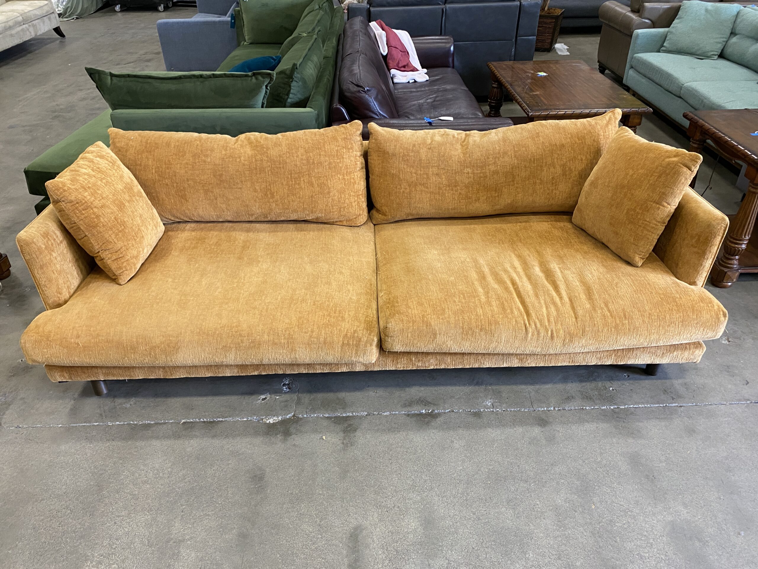 Orange Creamsicle Low Back High Arm Sofa with Round Wooden Feet