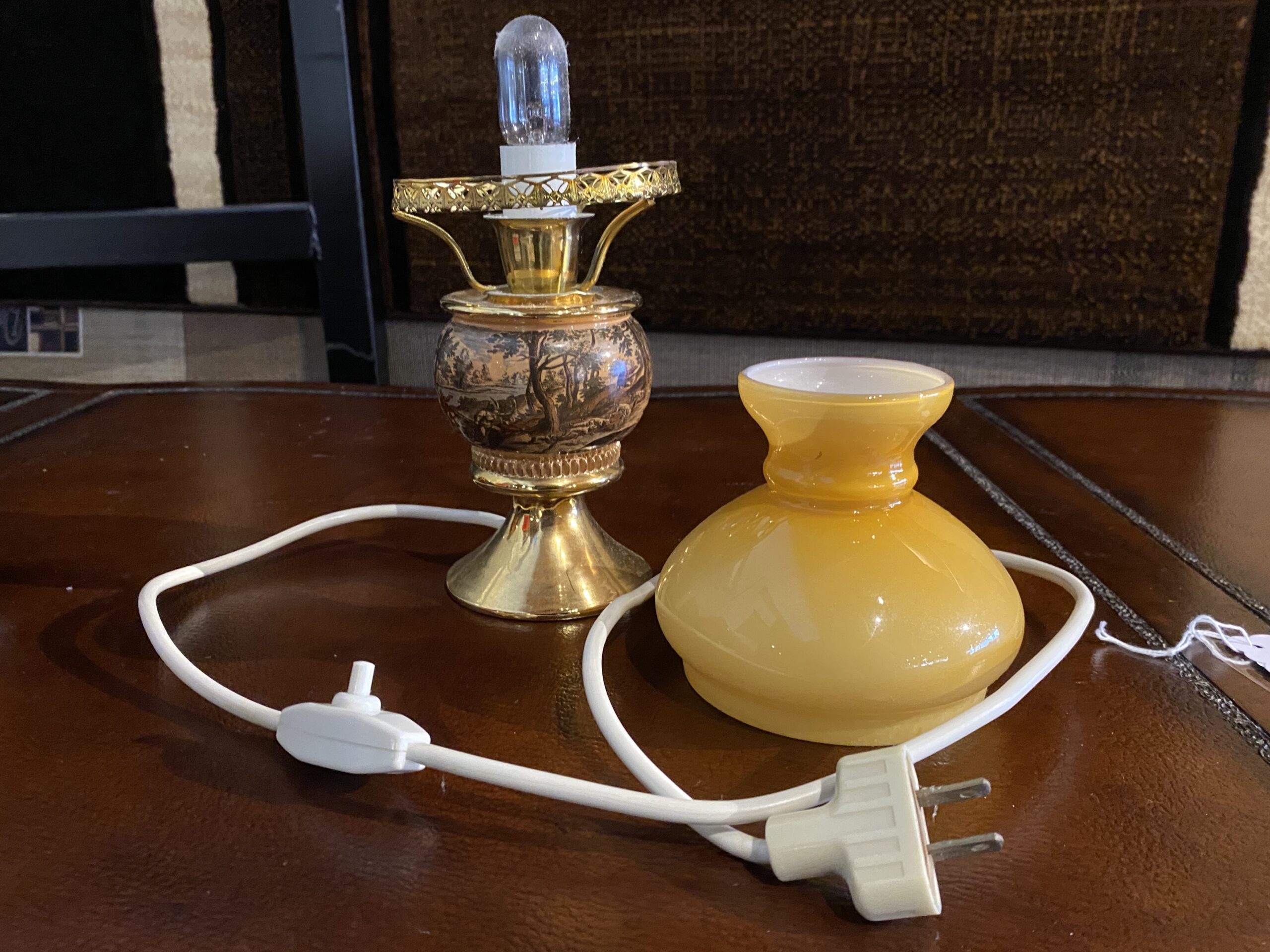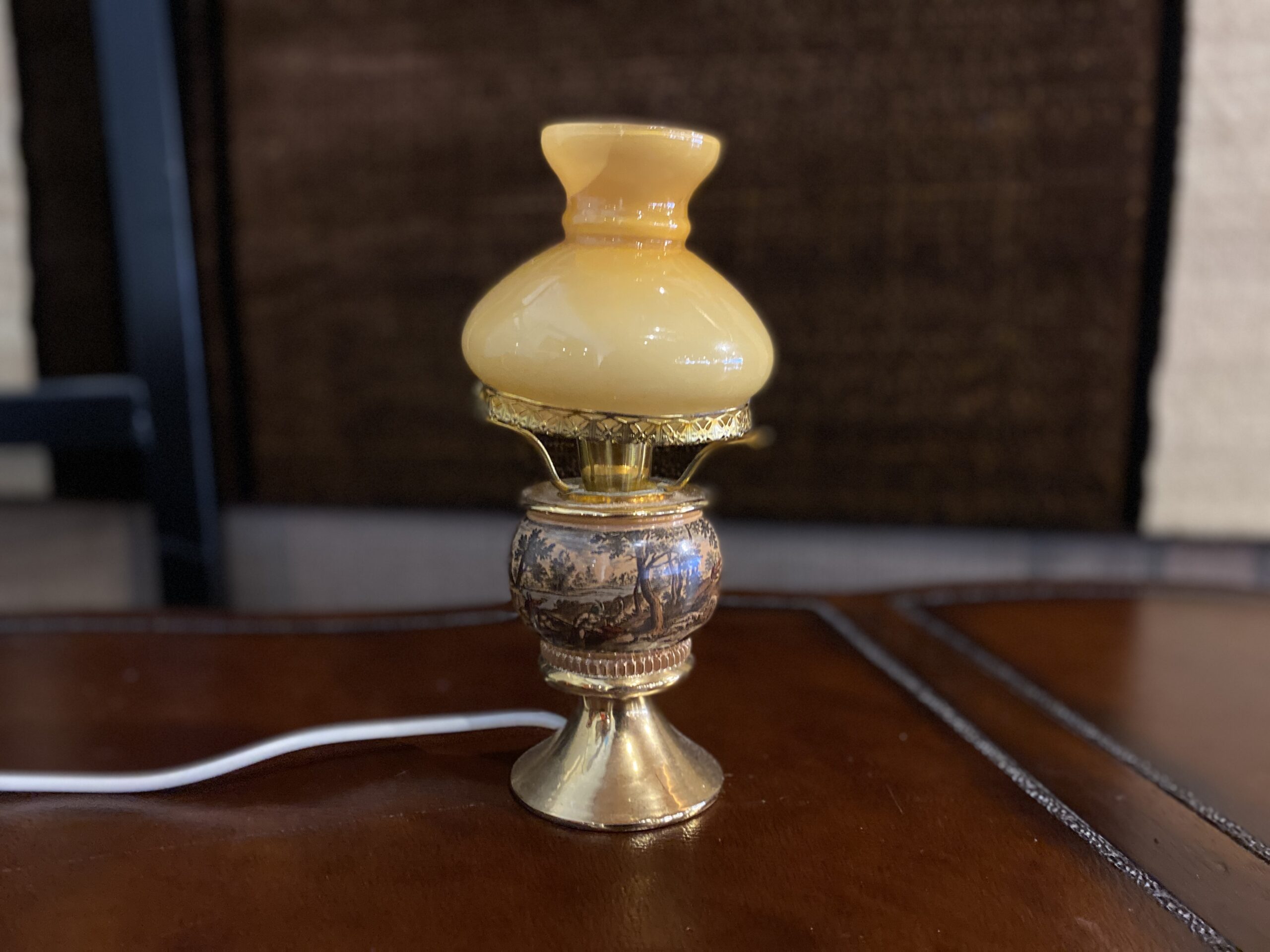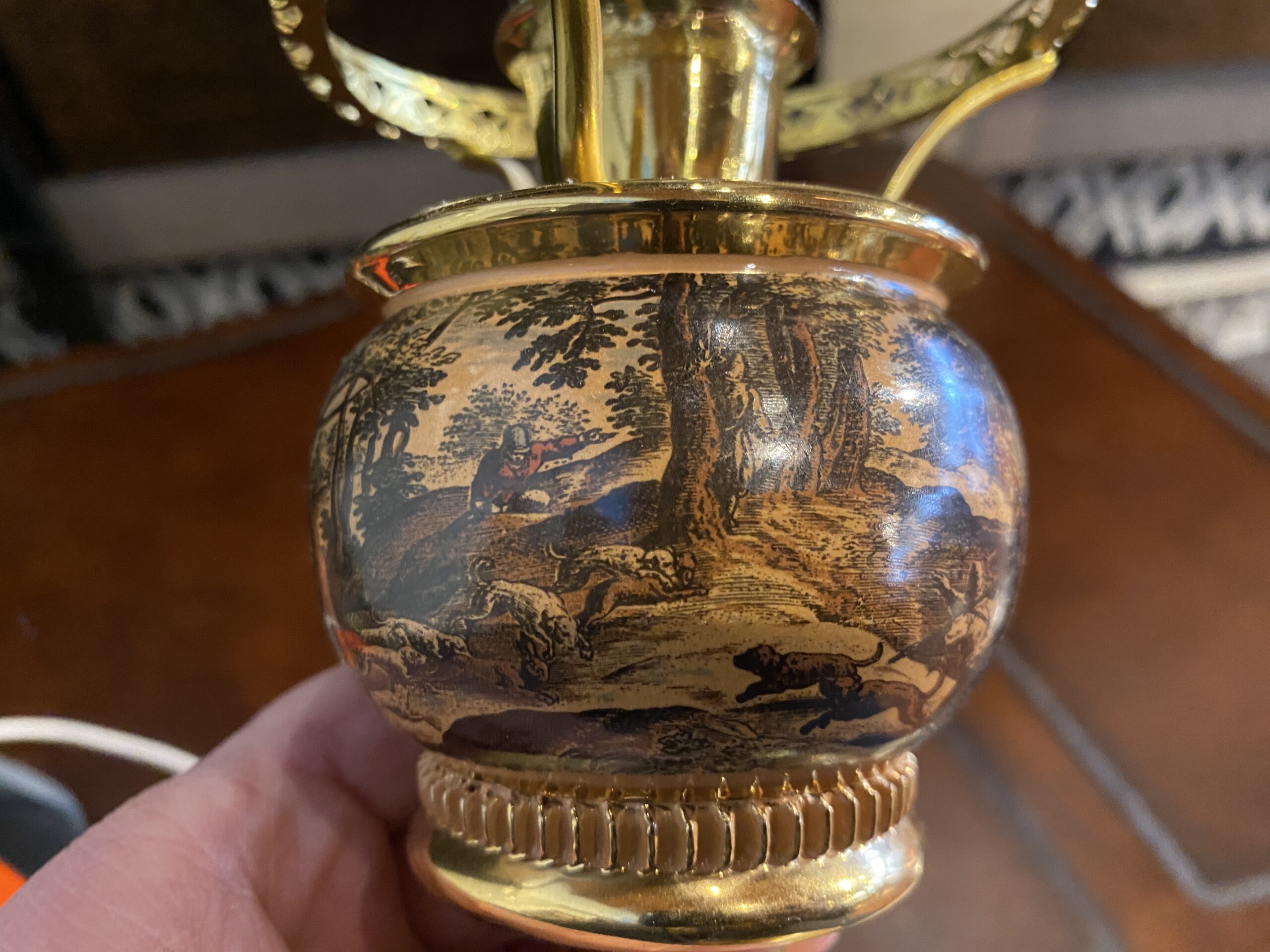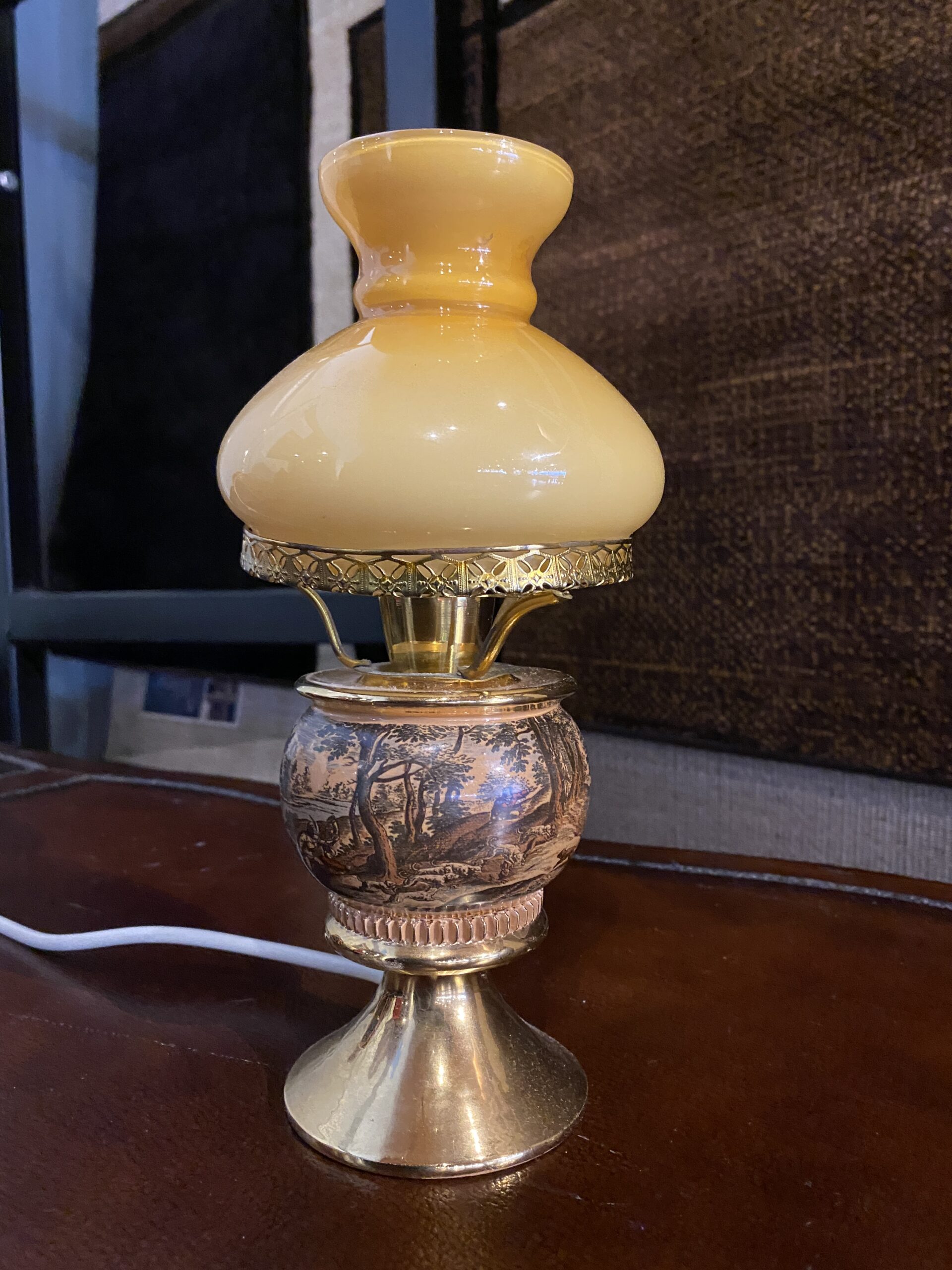 Petite Vintage Murray Feiss Hunt Scene Hurricane Lamp