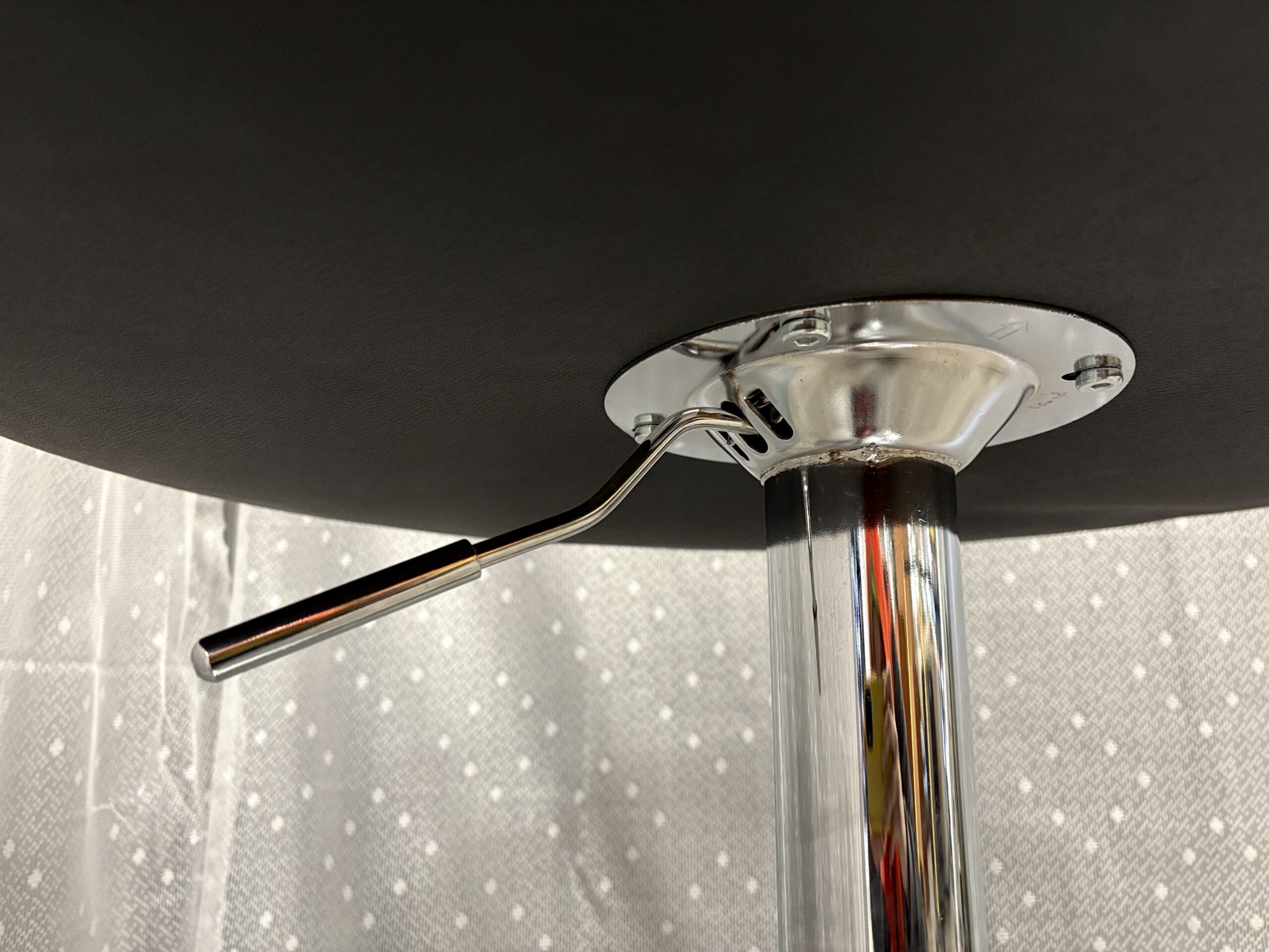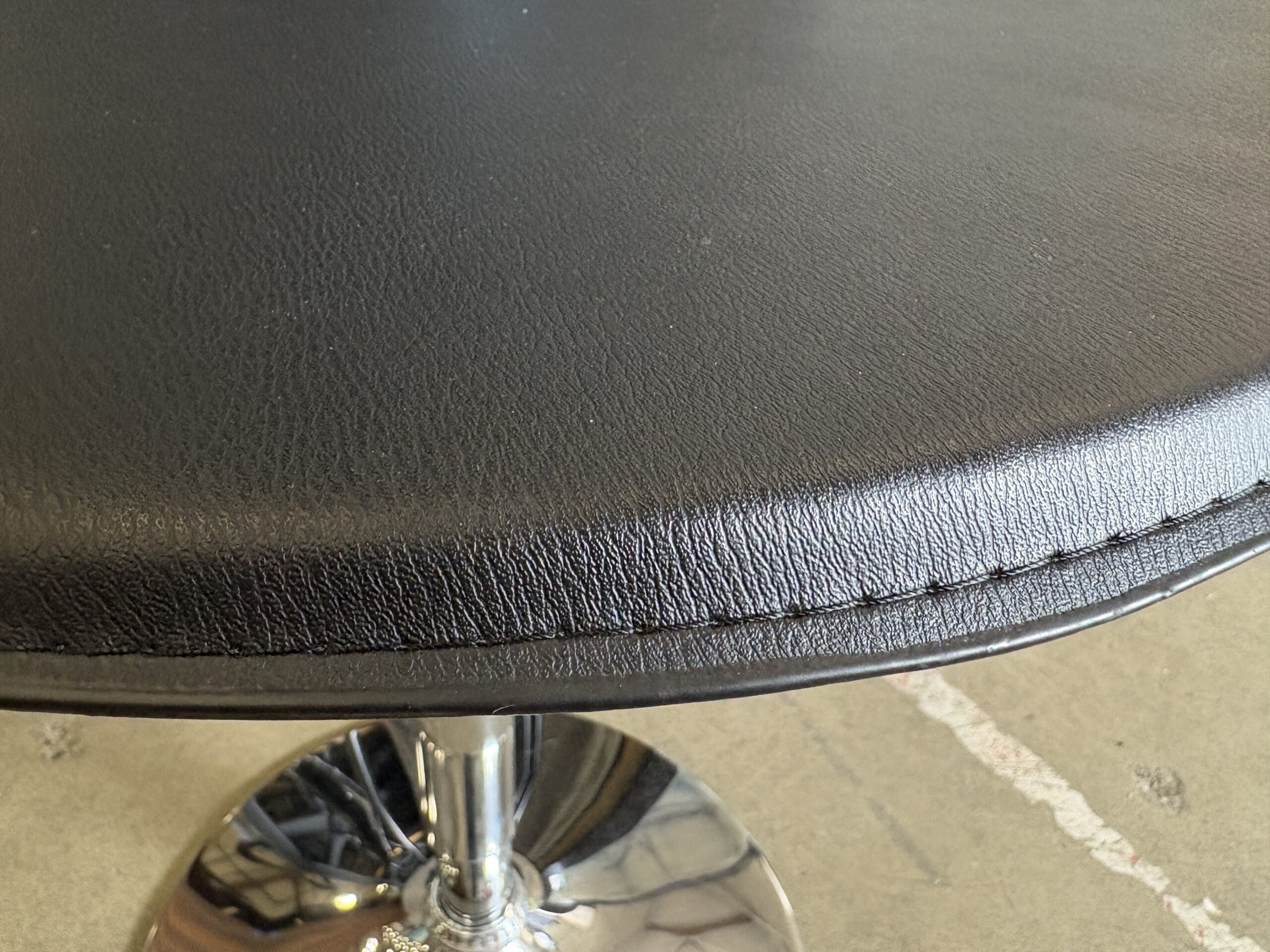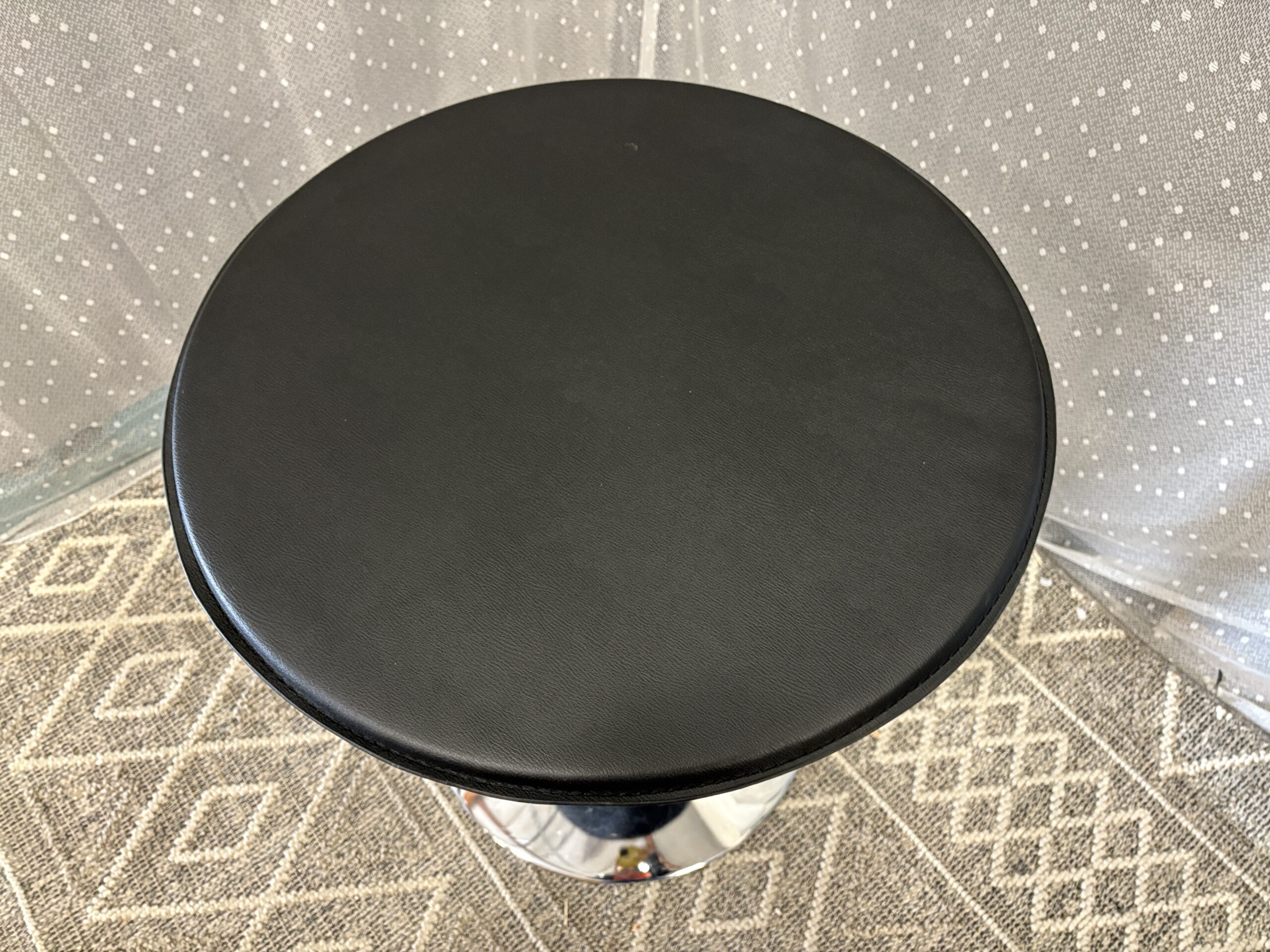 Round Pneumatic Side Table with Black Leather Top and Chrome Pedestal Base