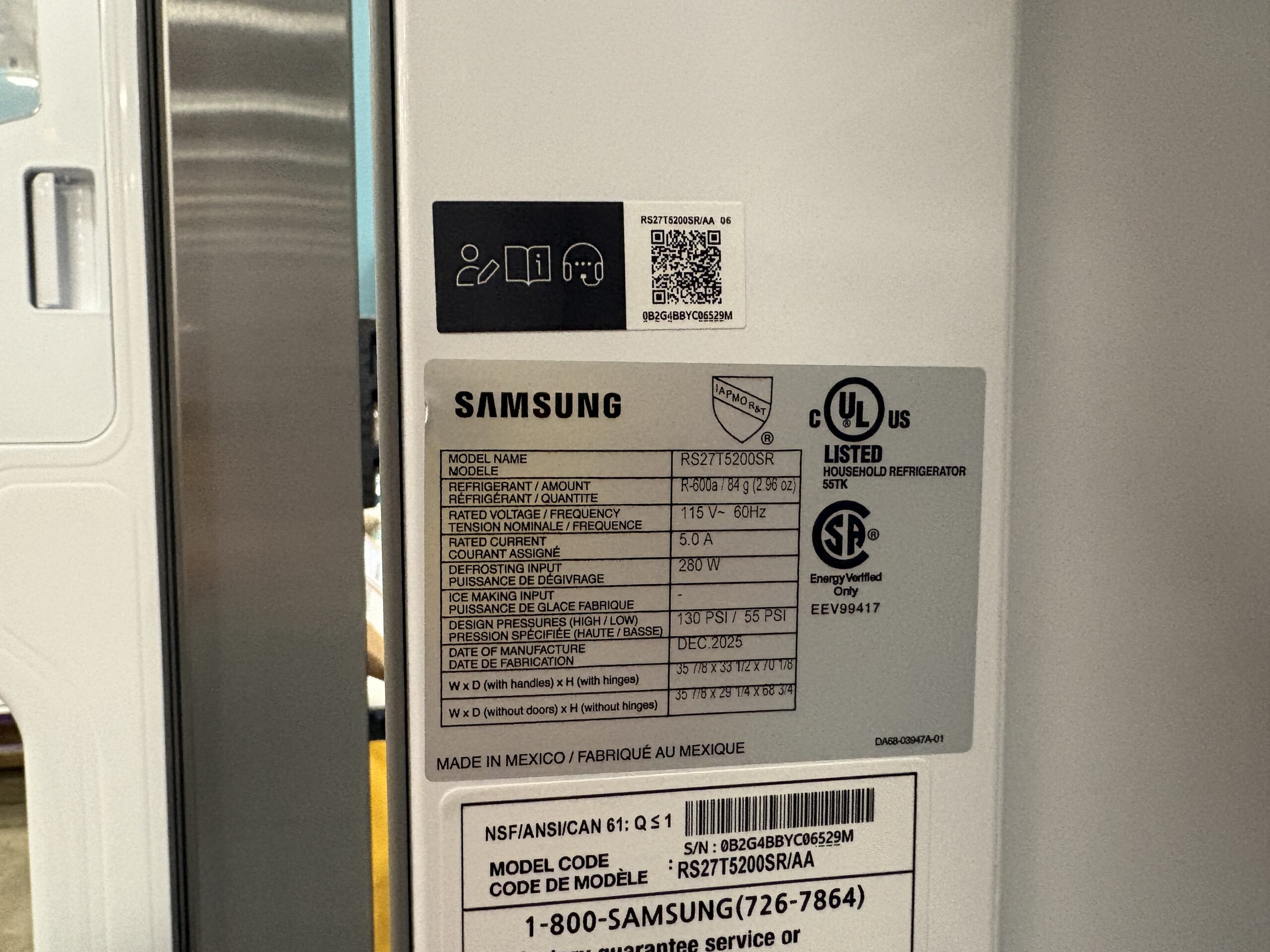 SAMSUNG Stainless Steel Side-by-Side Refrigerator Model: RS27T5200SR