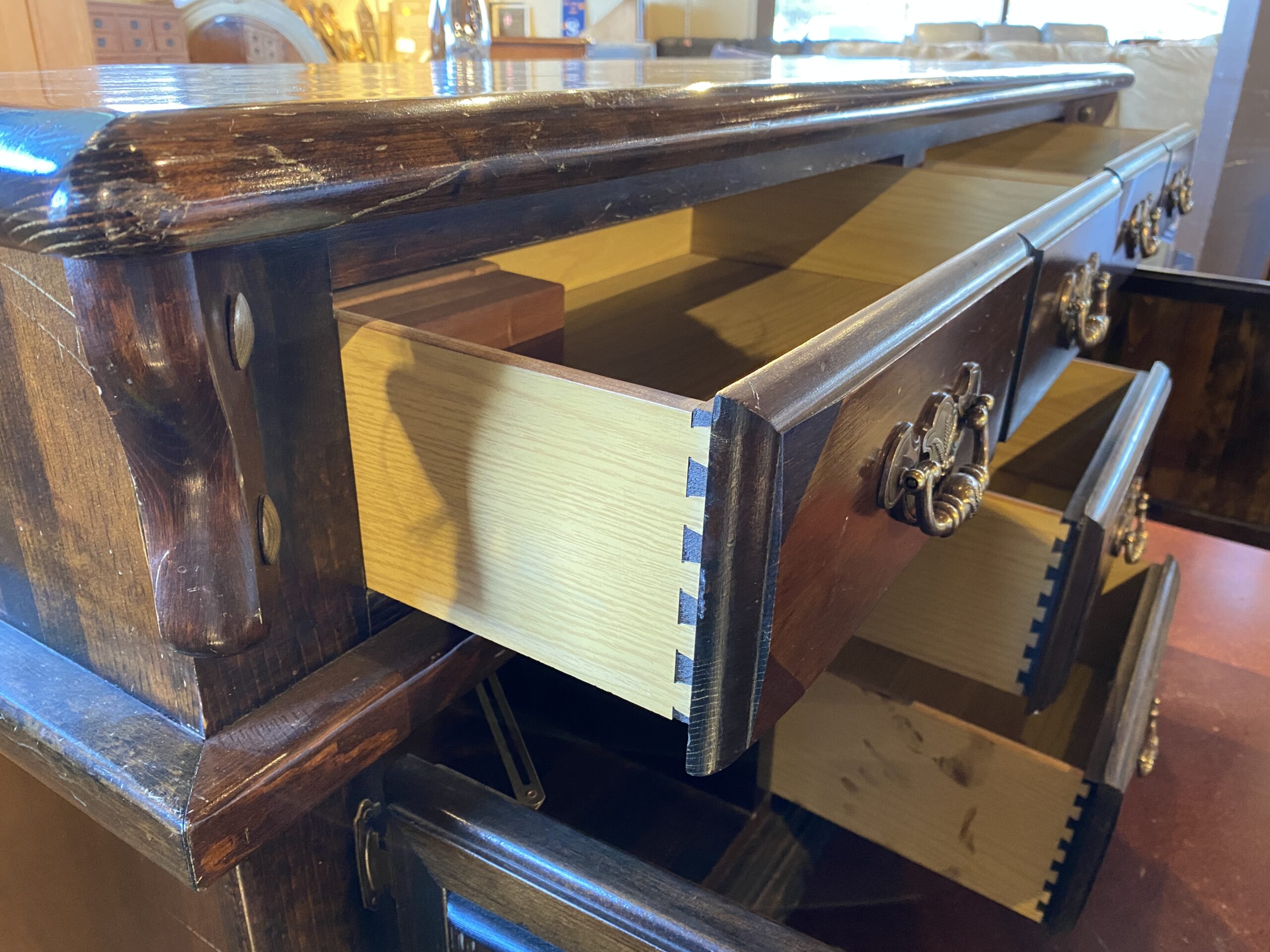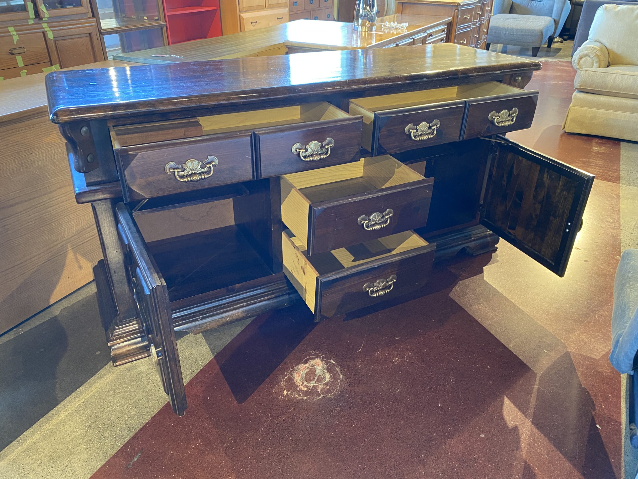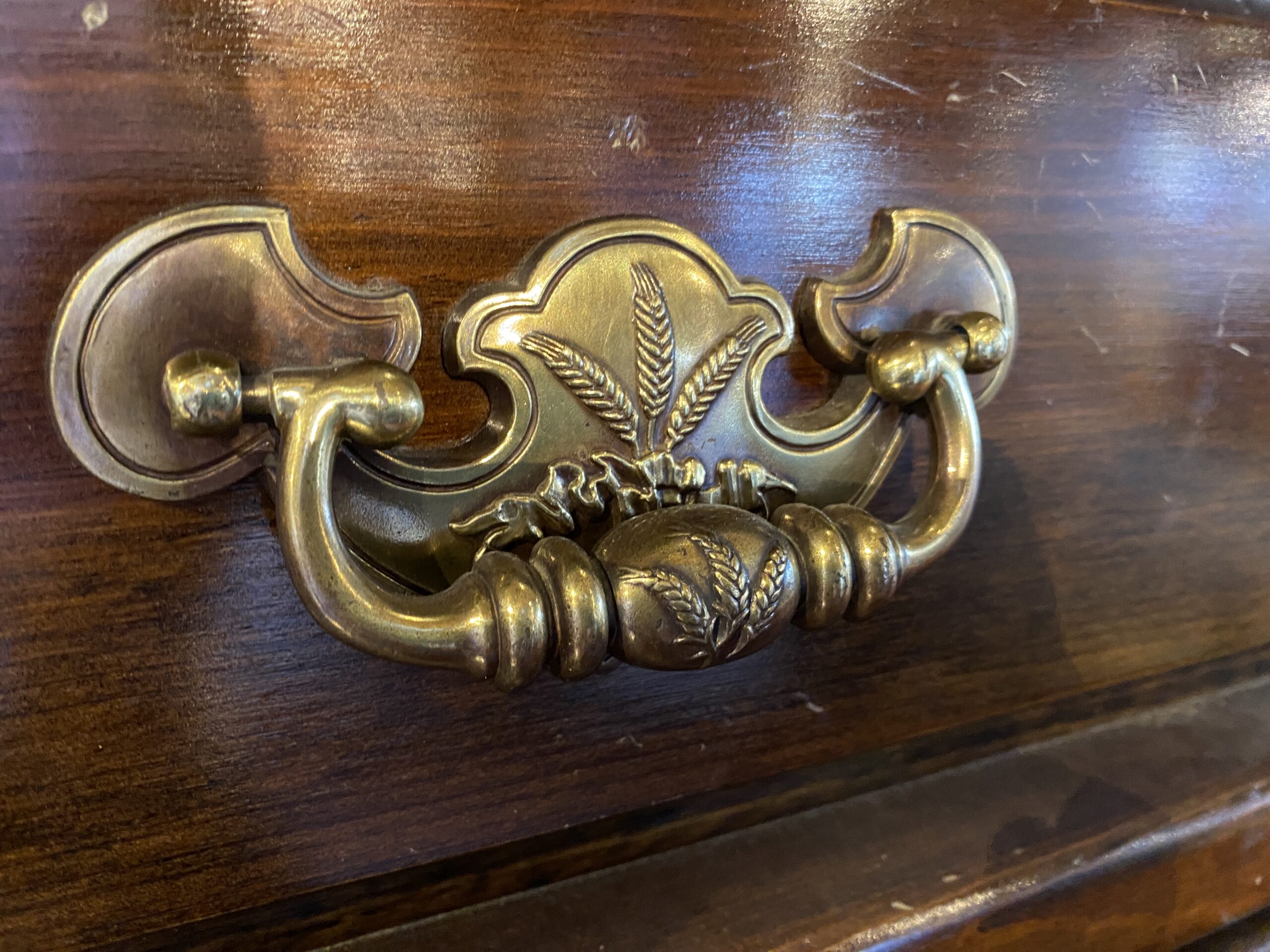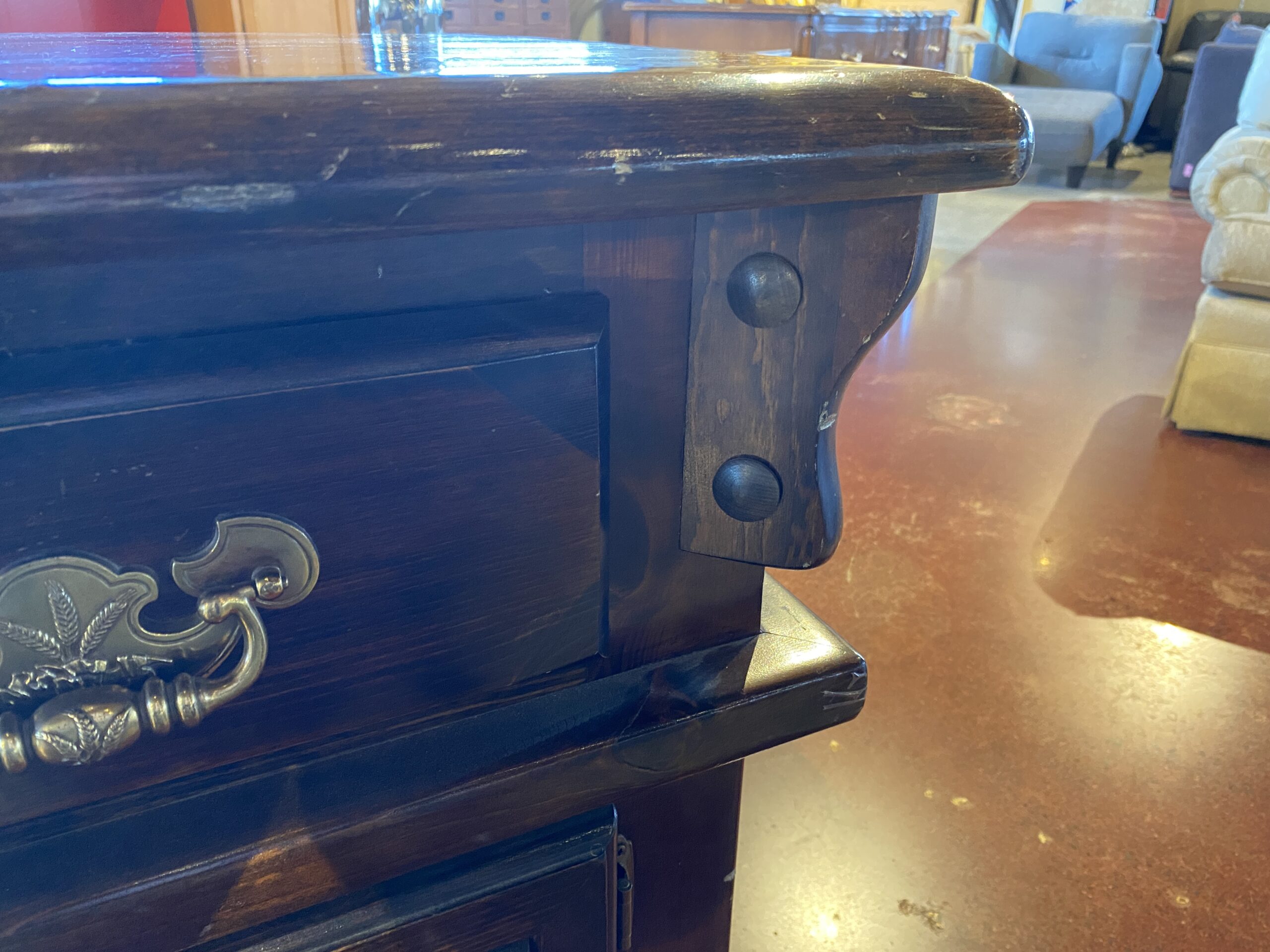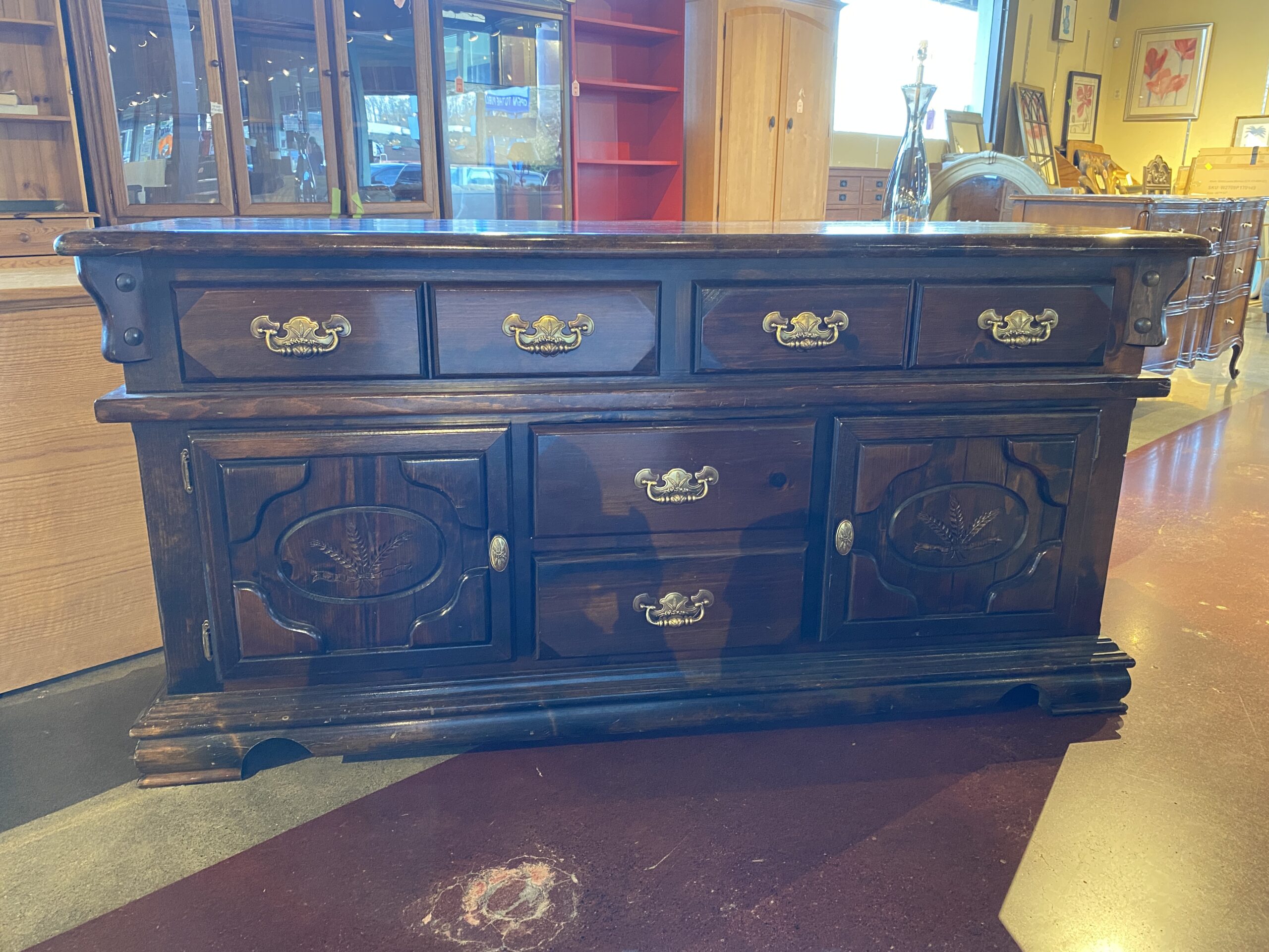 Solid Wood Dark Wood Sideboard with Wheat Motif