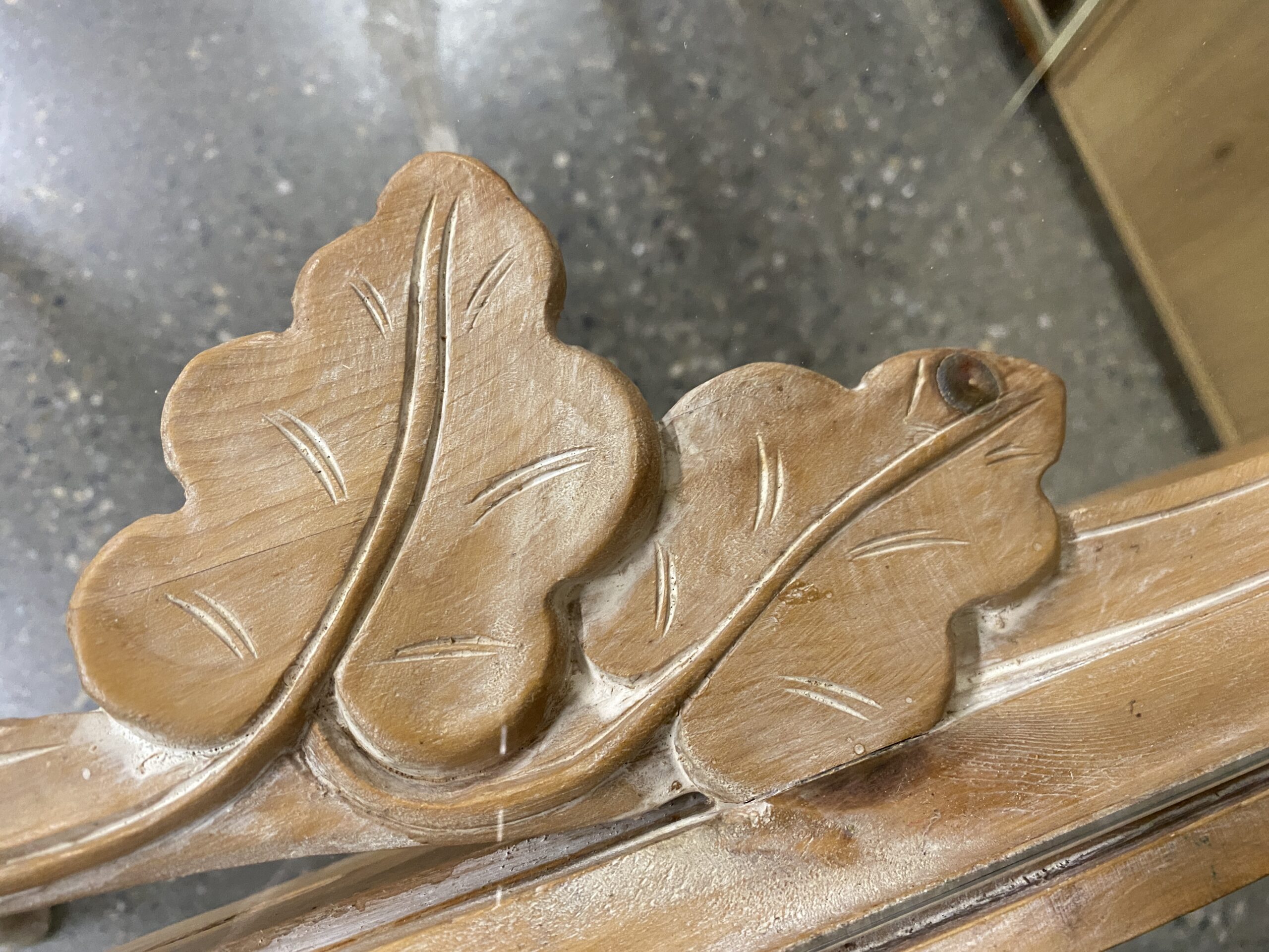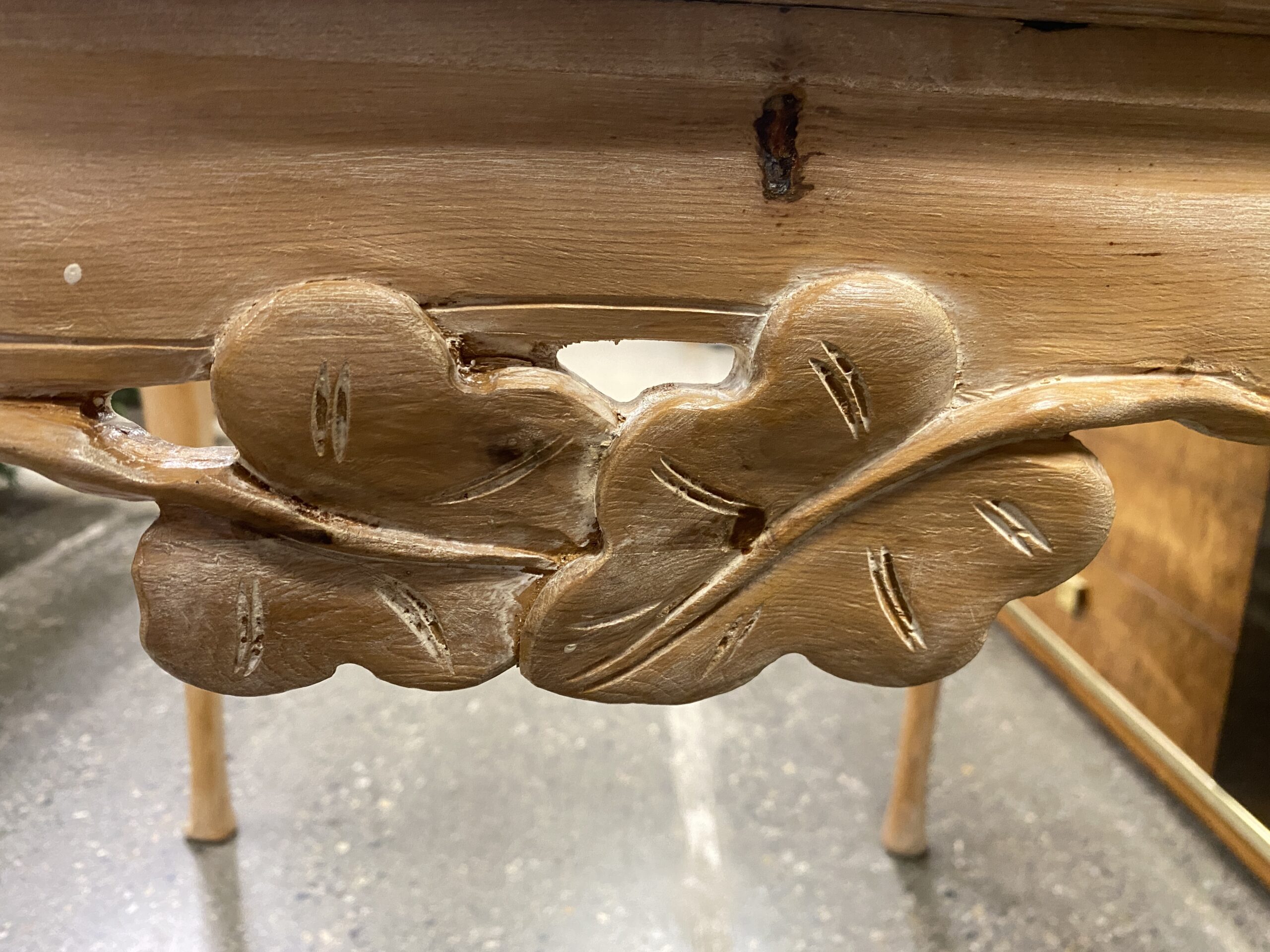 Solid Wood Leaf Carved Glass Top Table