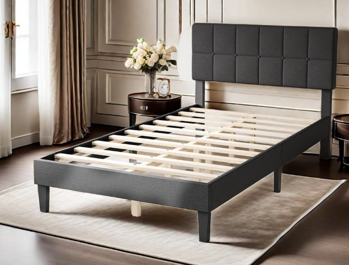 NEW! Twin Bed Frame w/ Adjustable Upholstered Headboard in Dark Grey