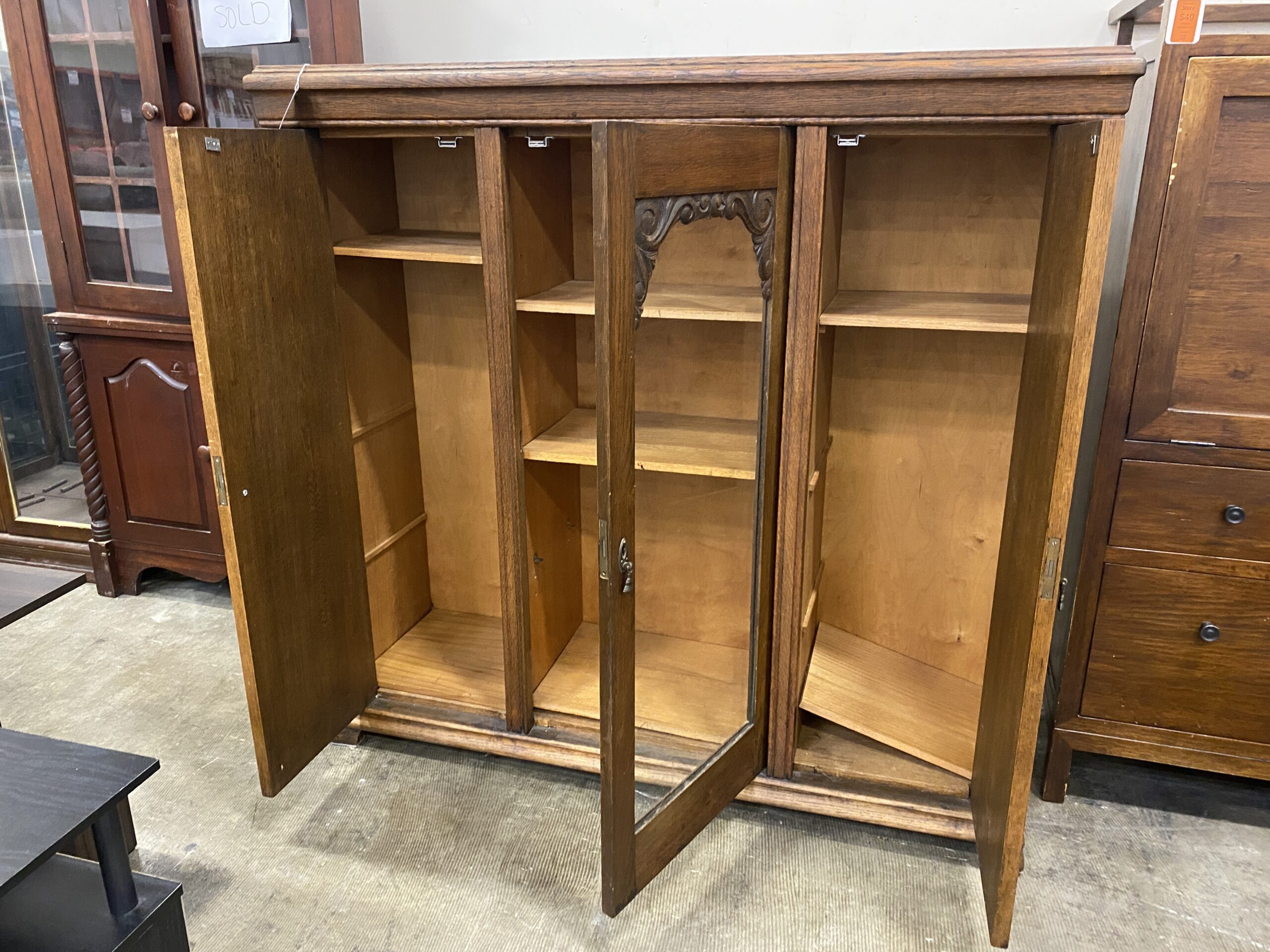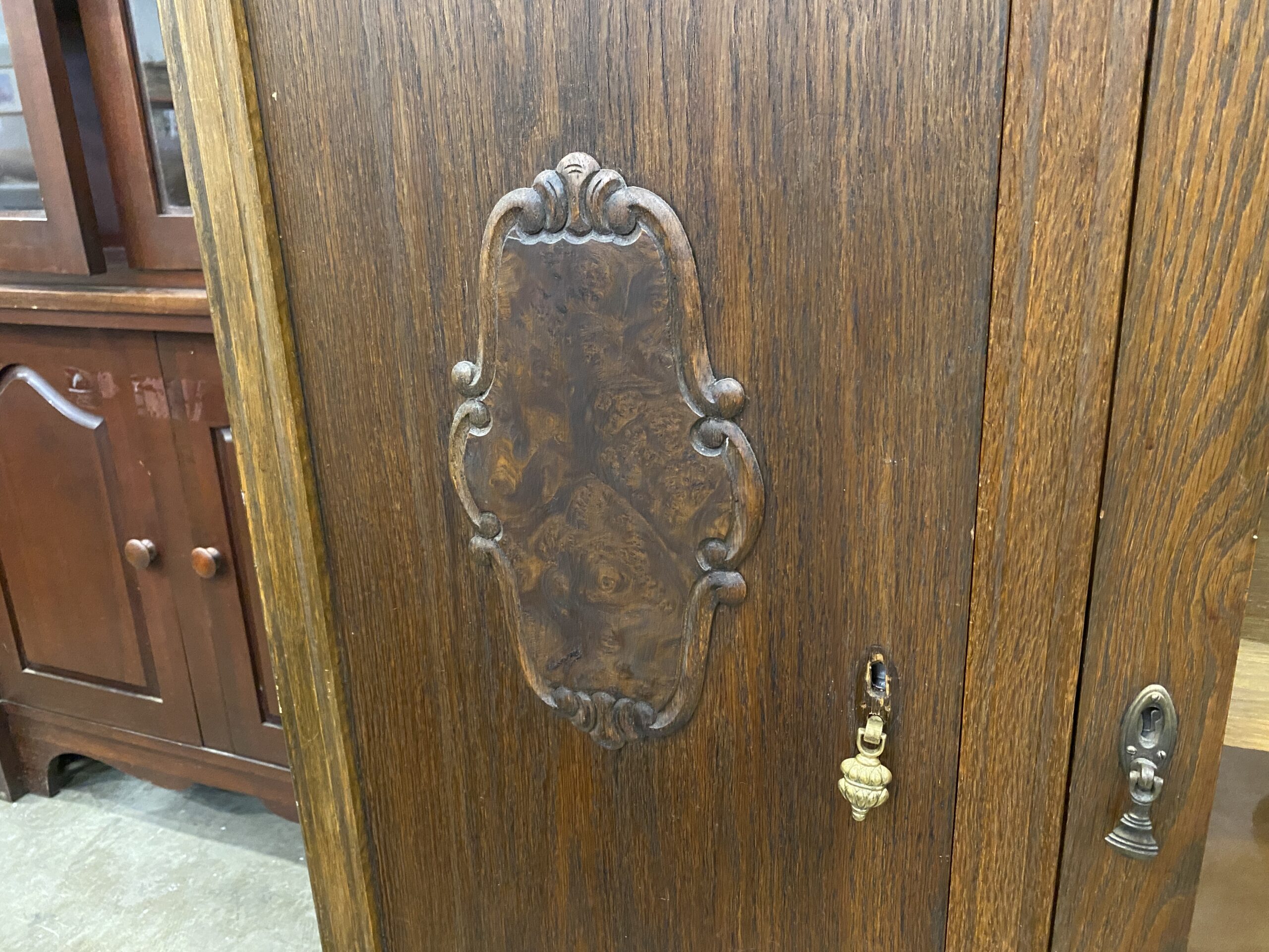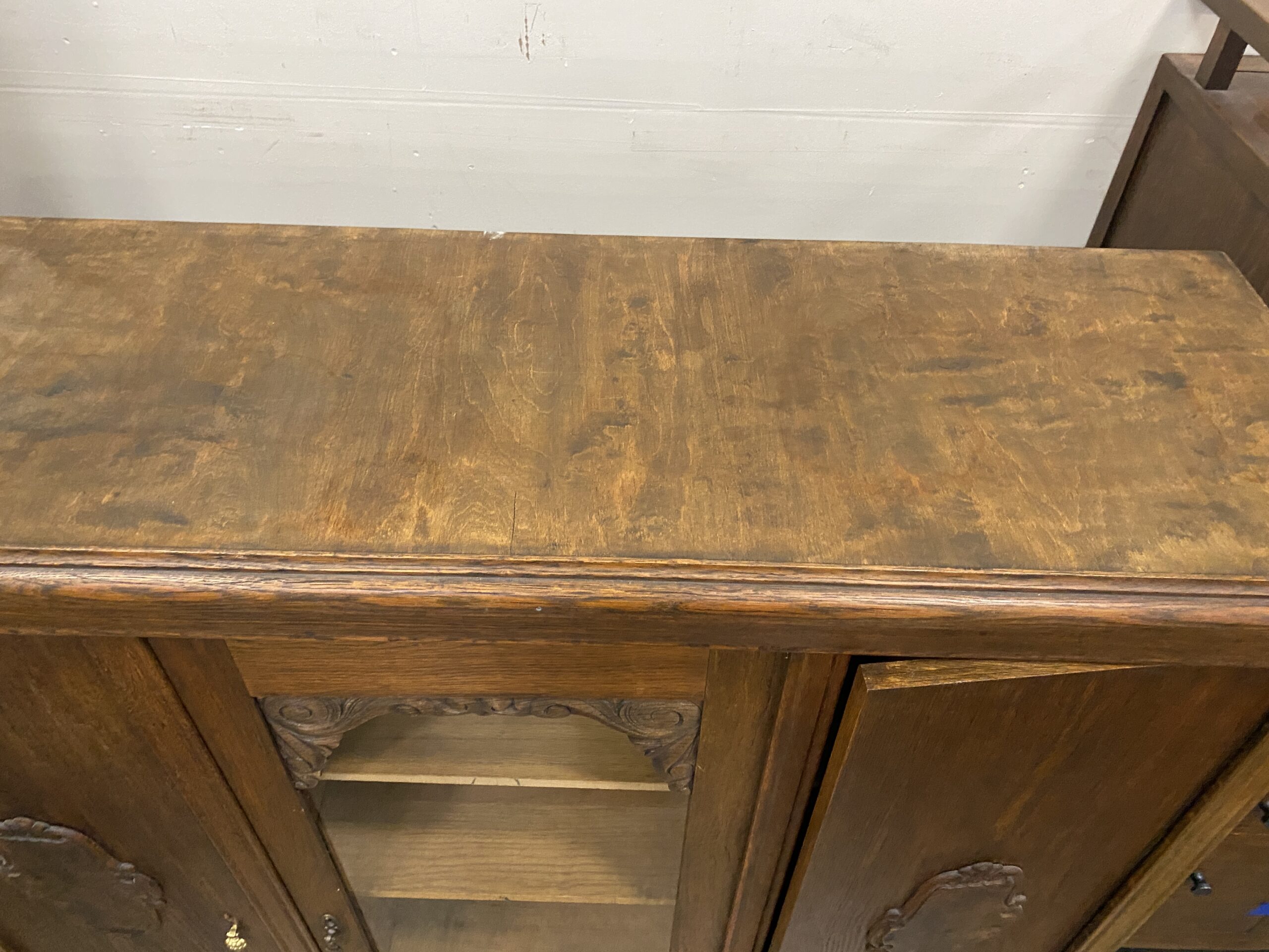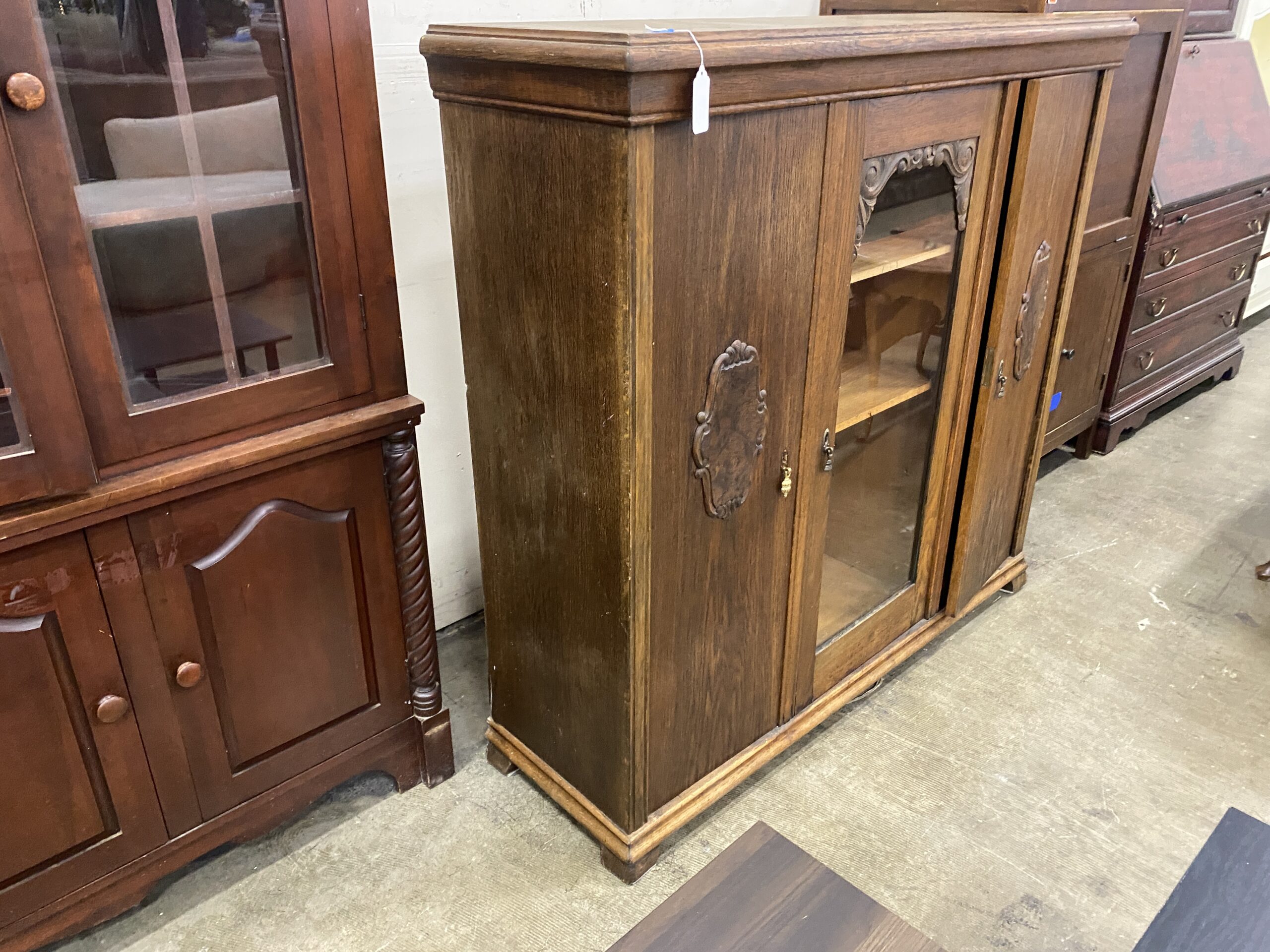 Vintage Armoire with Glass Cabinets and Carved Wood Details