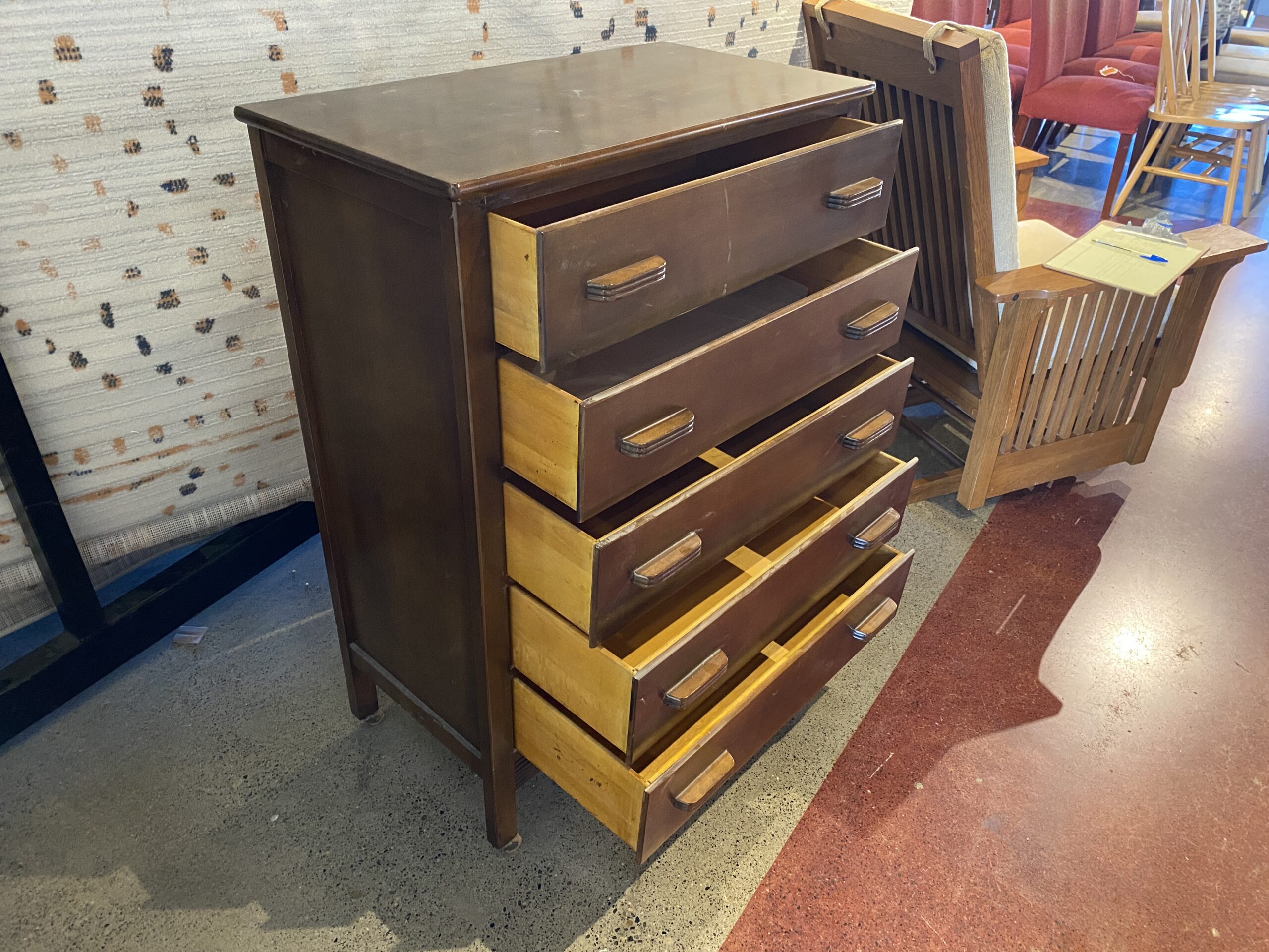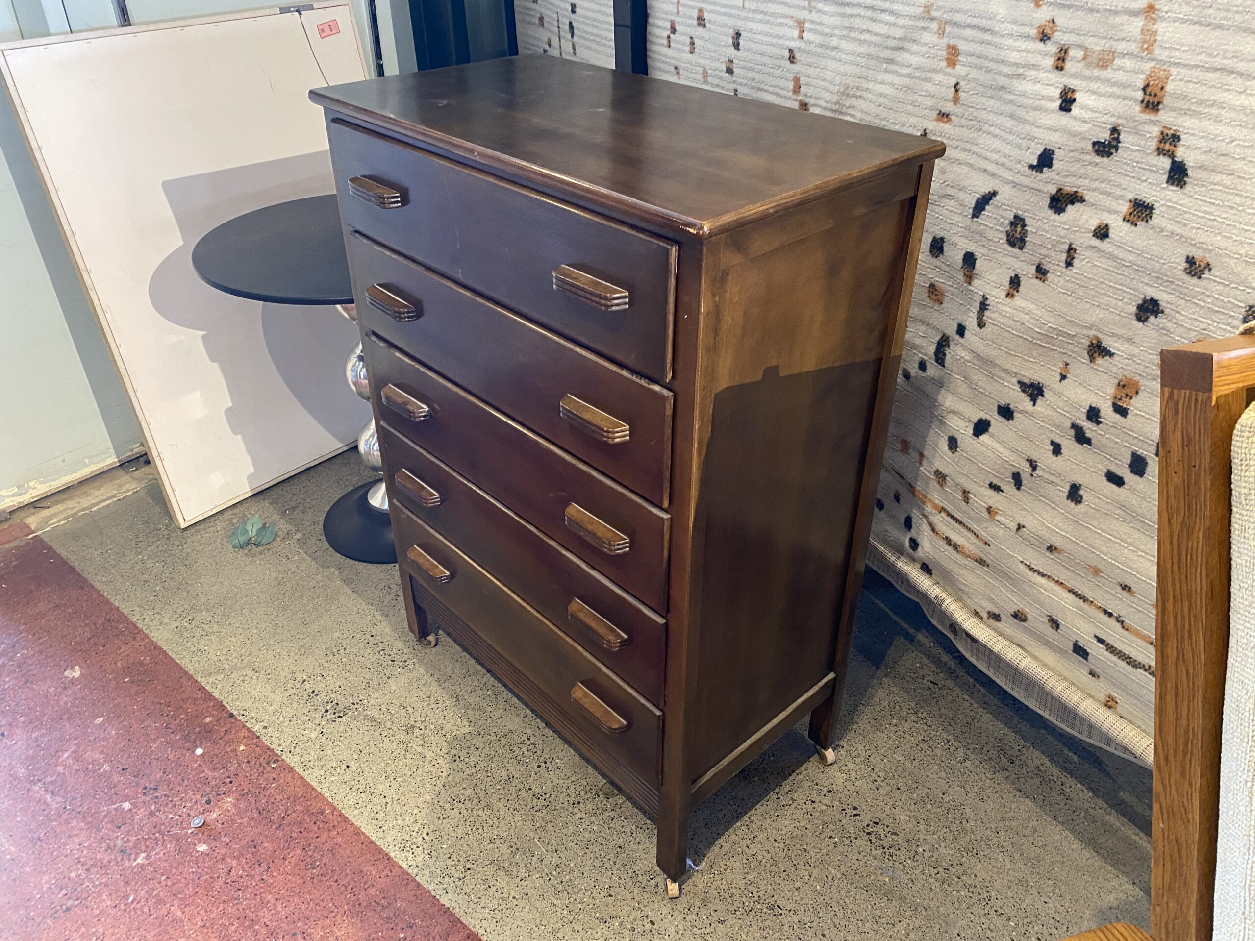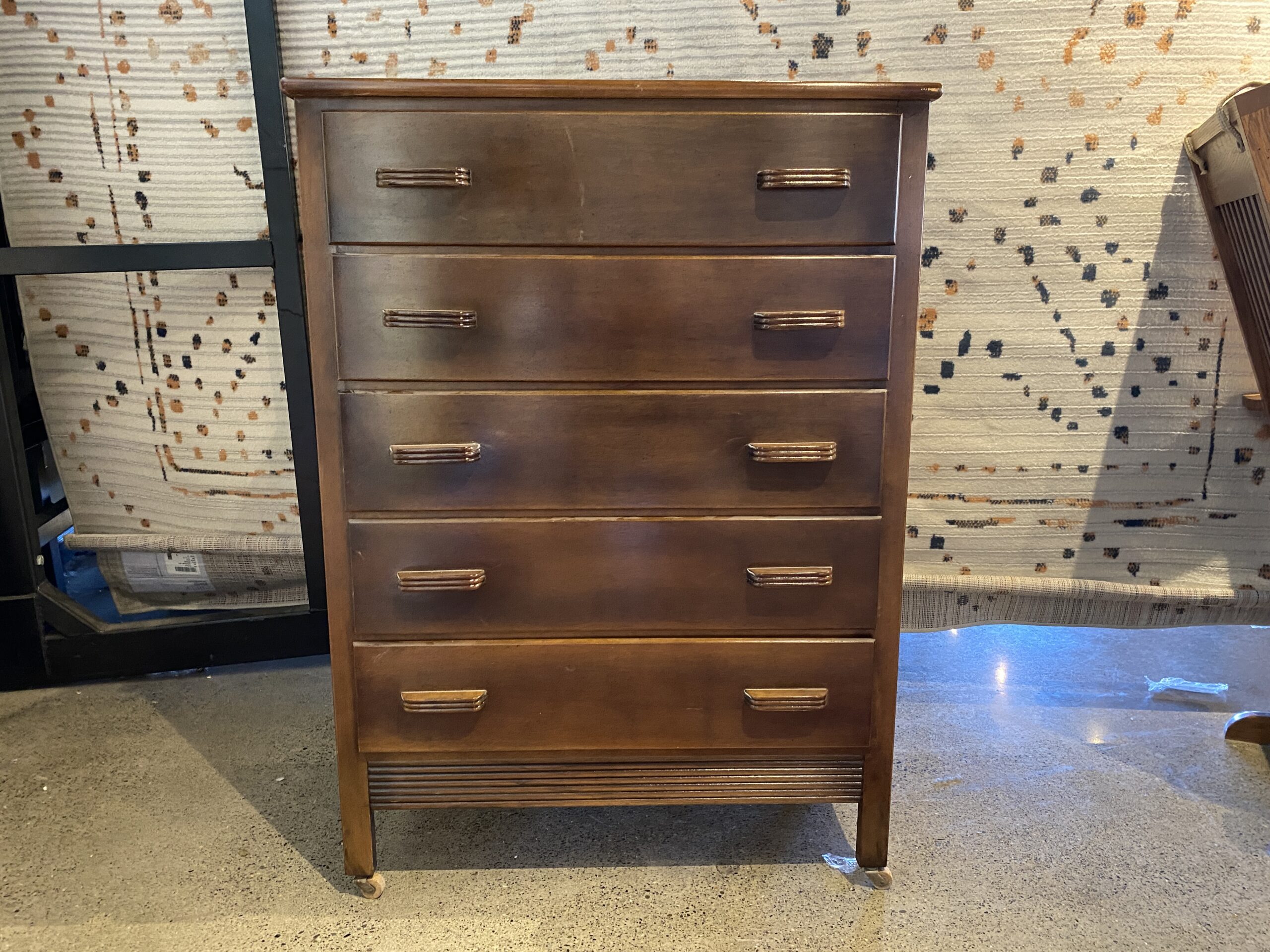 Vintage Art Deco Five Drawer Dresser on Casters