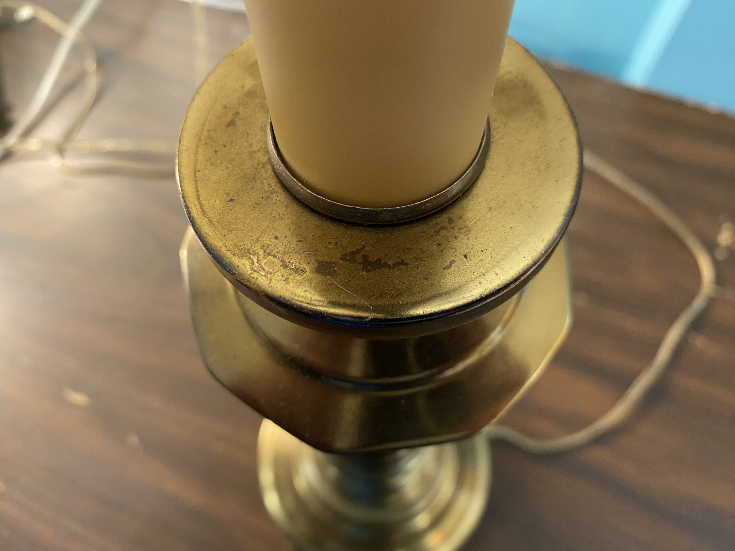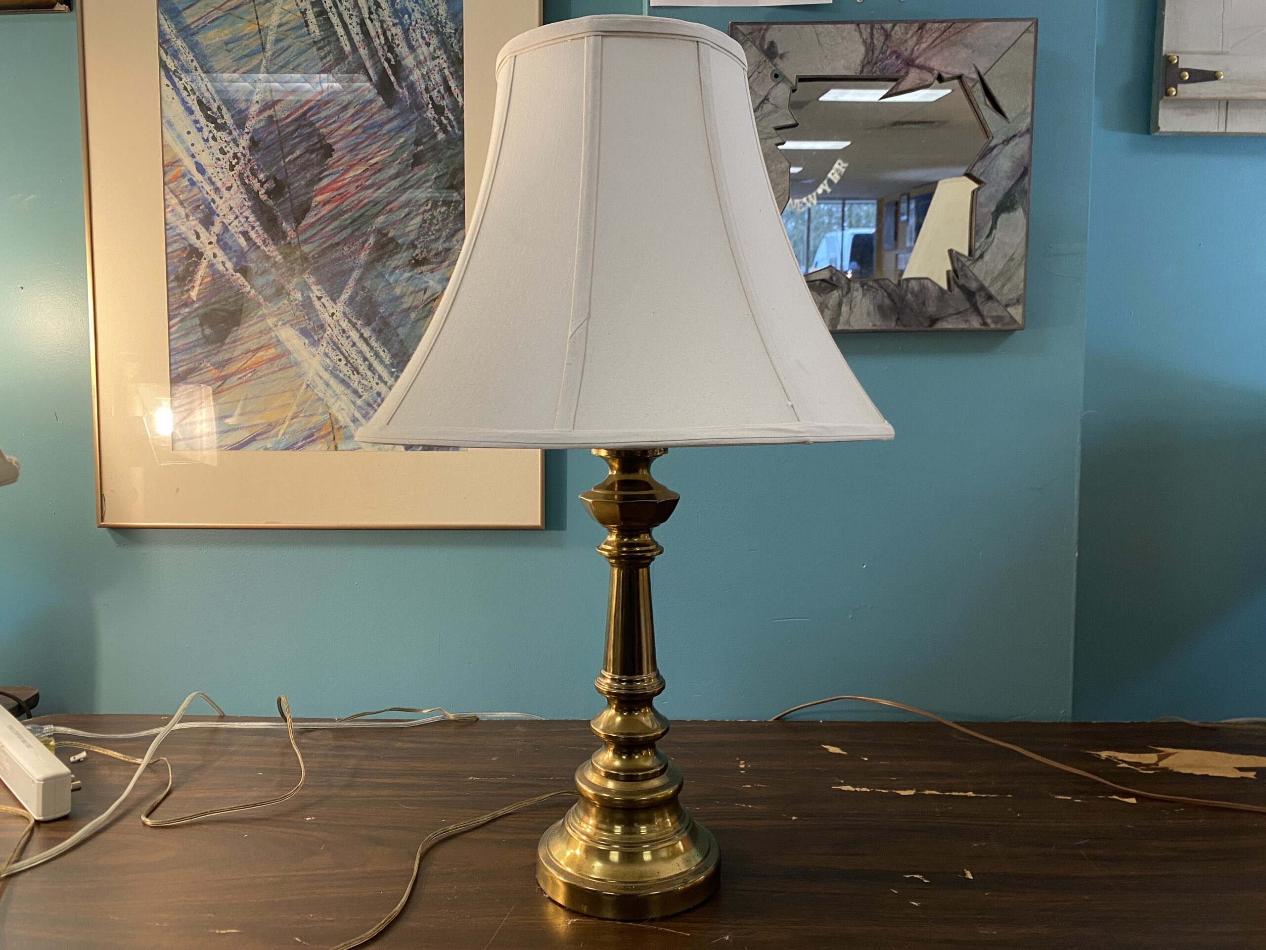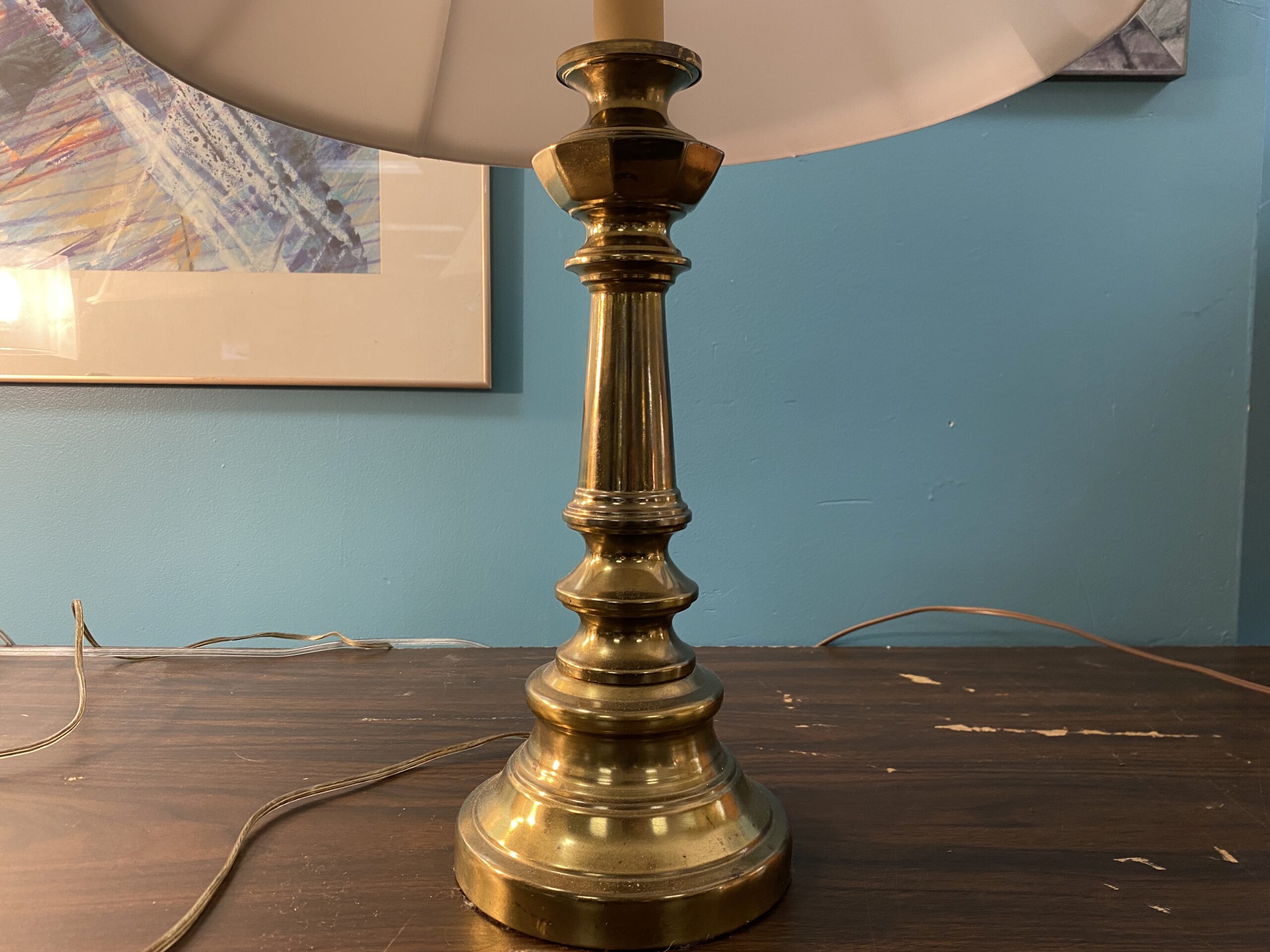 Vintage Brass Candlestick Lamp w/ White Shade