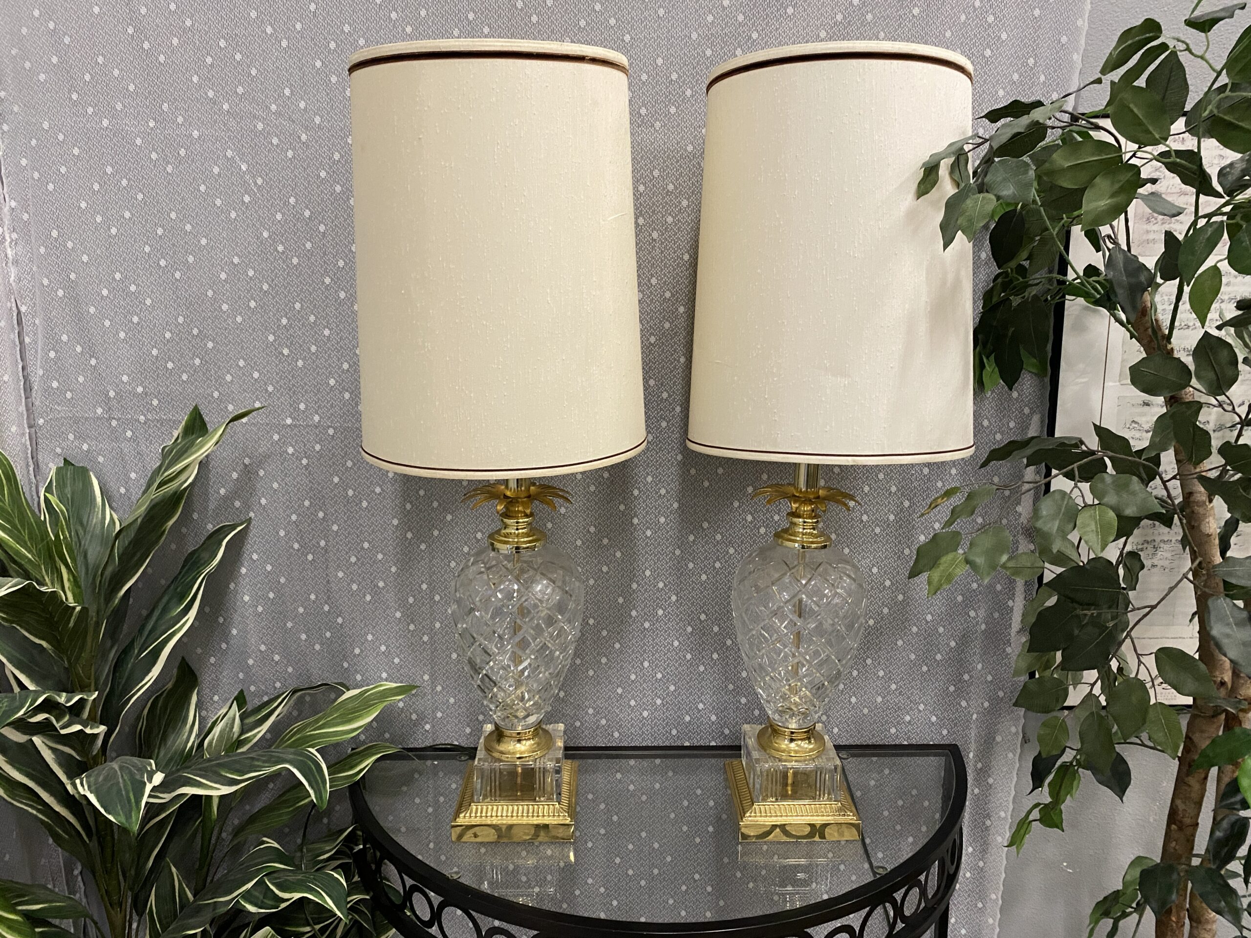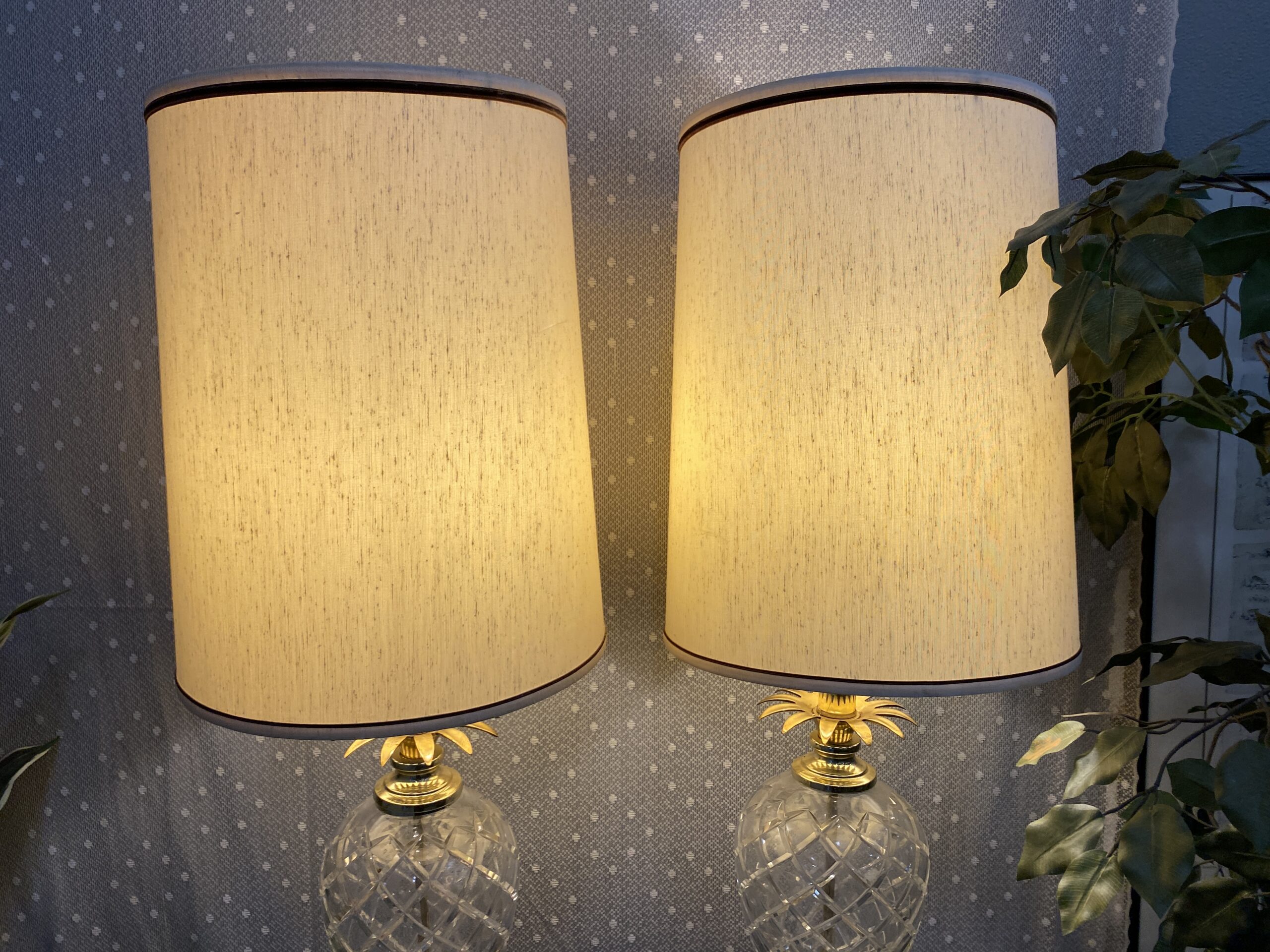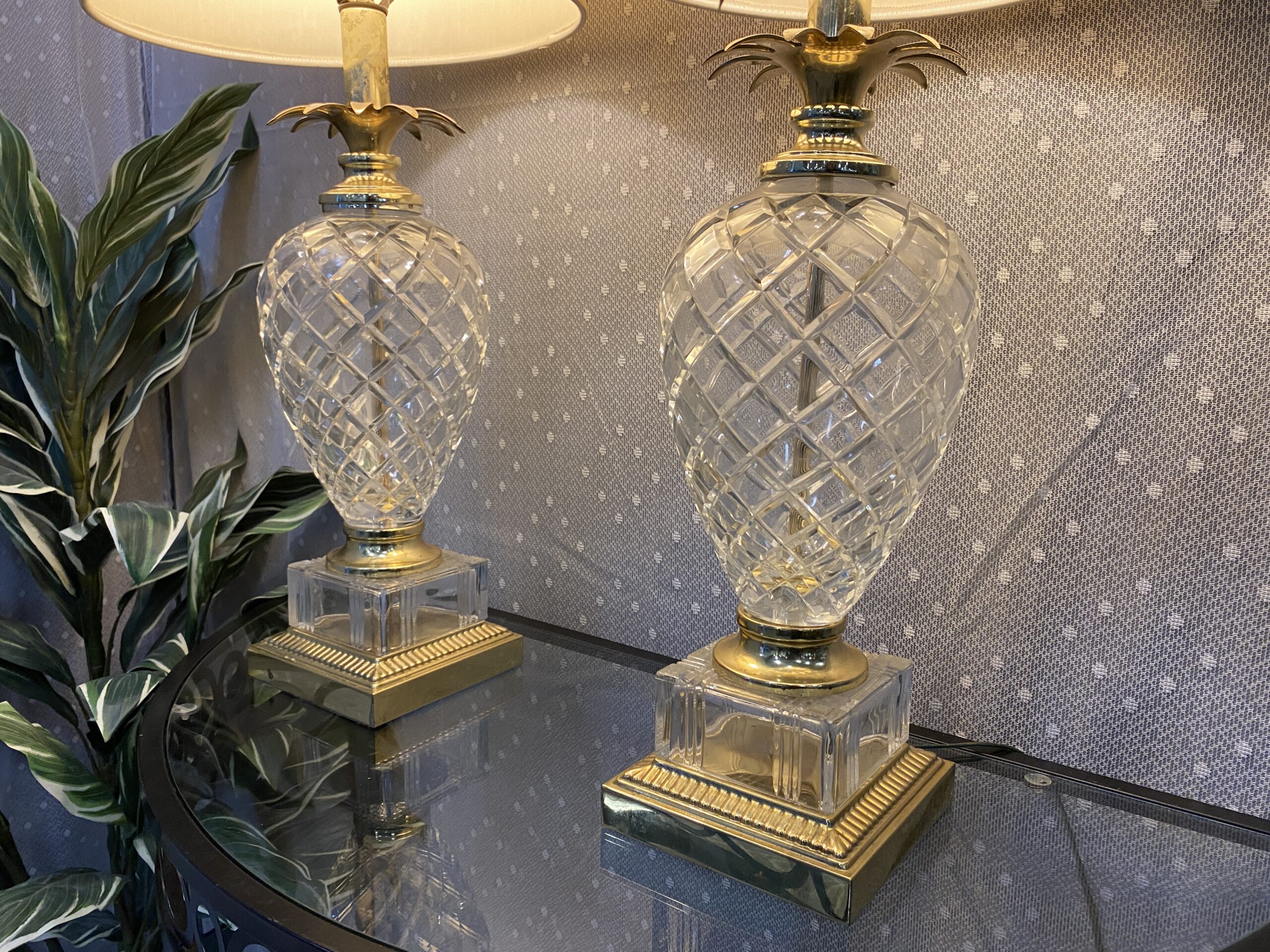 Vintage Glass Pineapple Style Table Lamps (Set of 2)