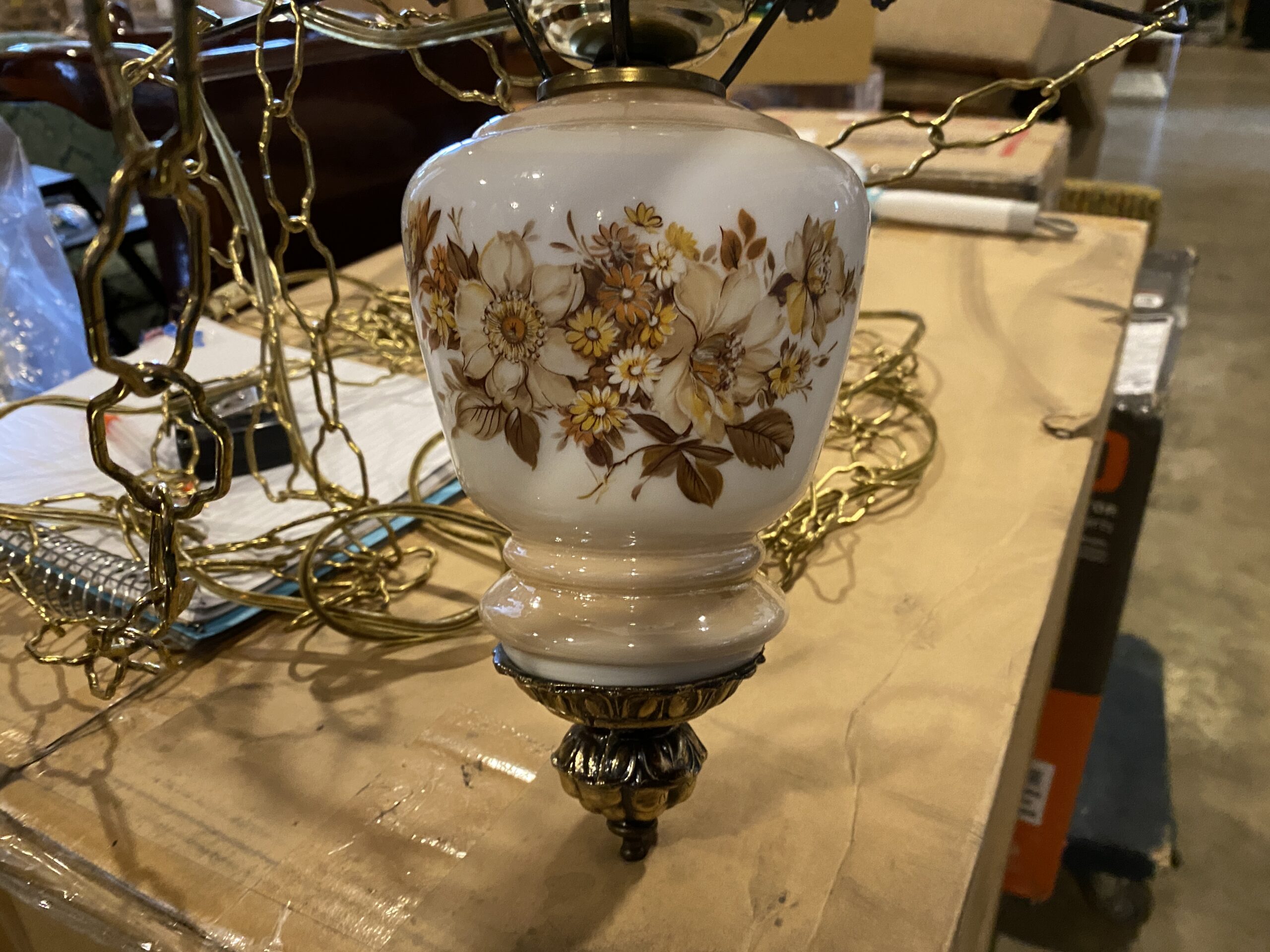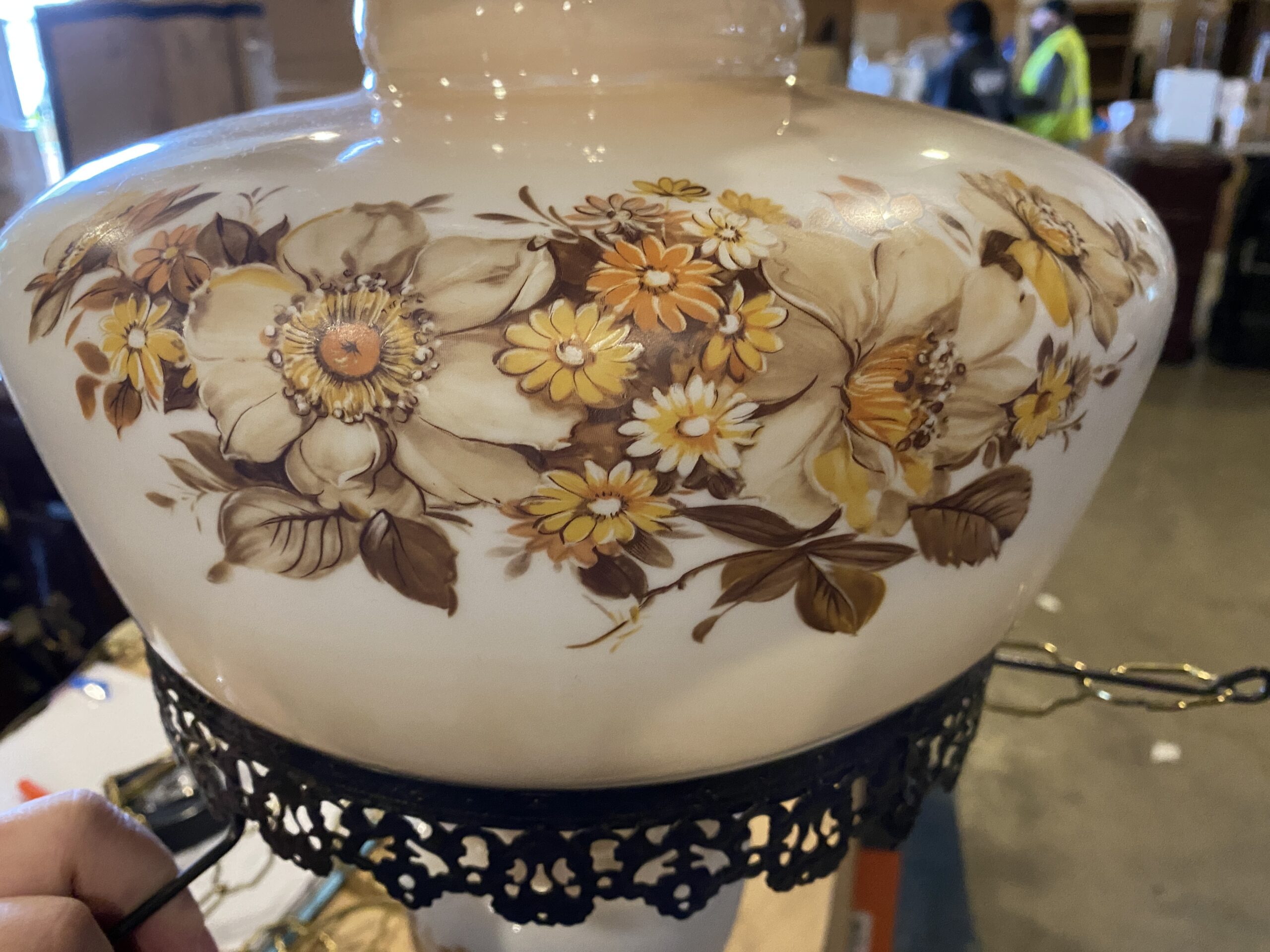 / Vintage Hanging Glass Shade Hurricane Lamp