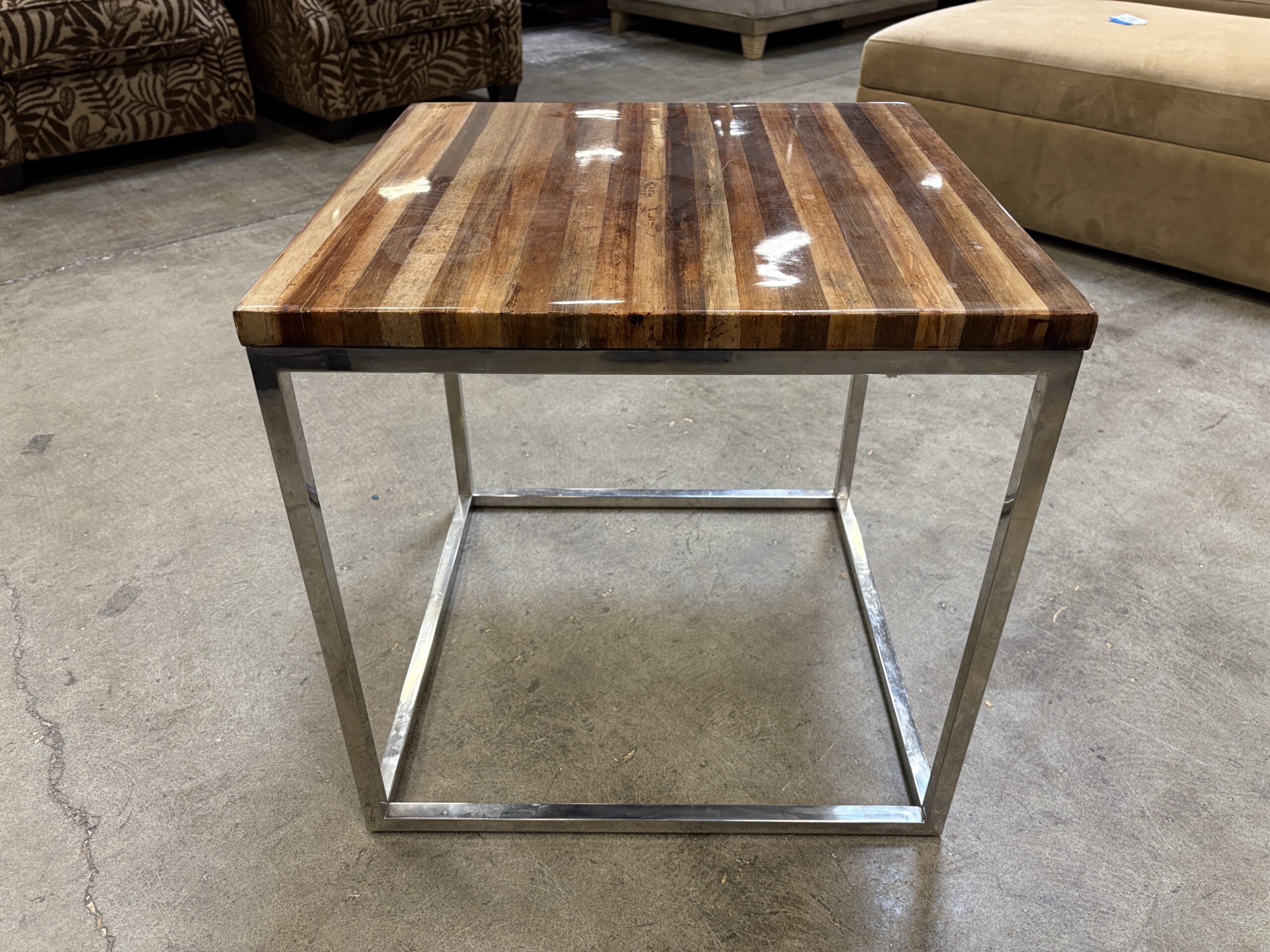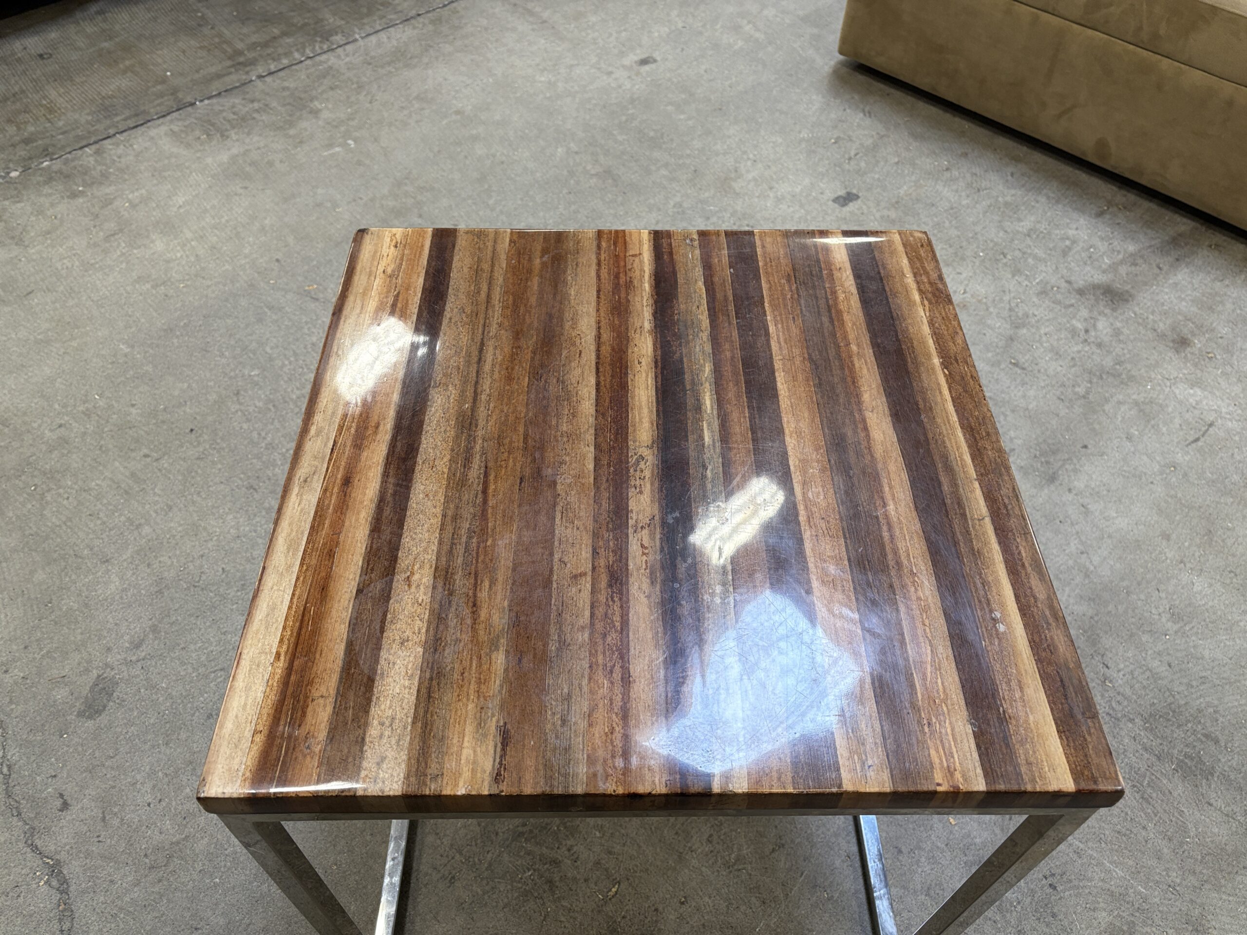 Vintage Lacquered Wooden Top Table with Sleek Metal Base