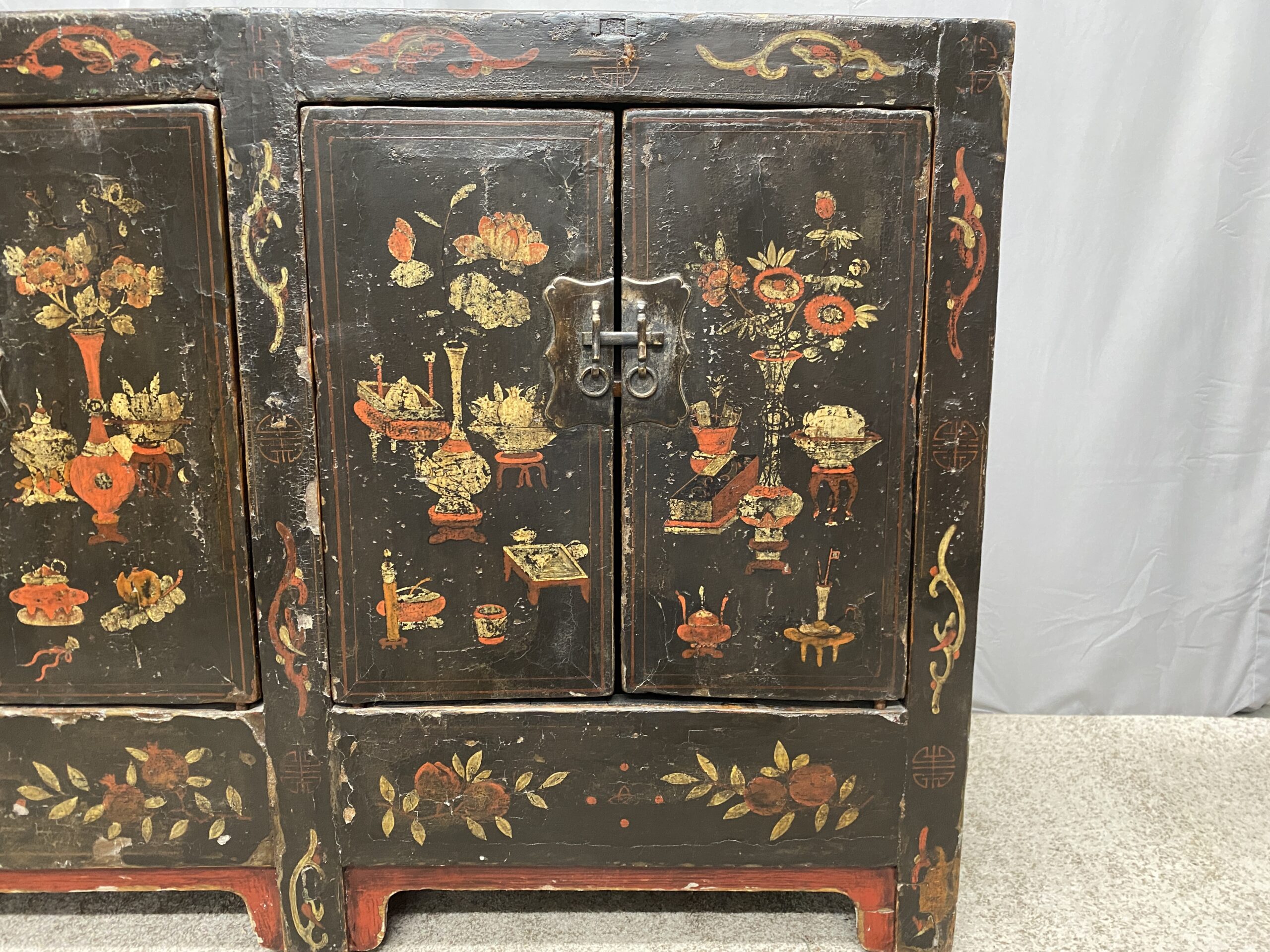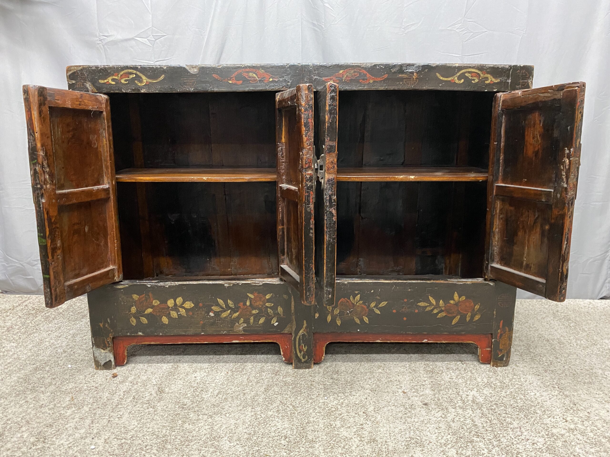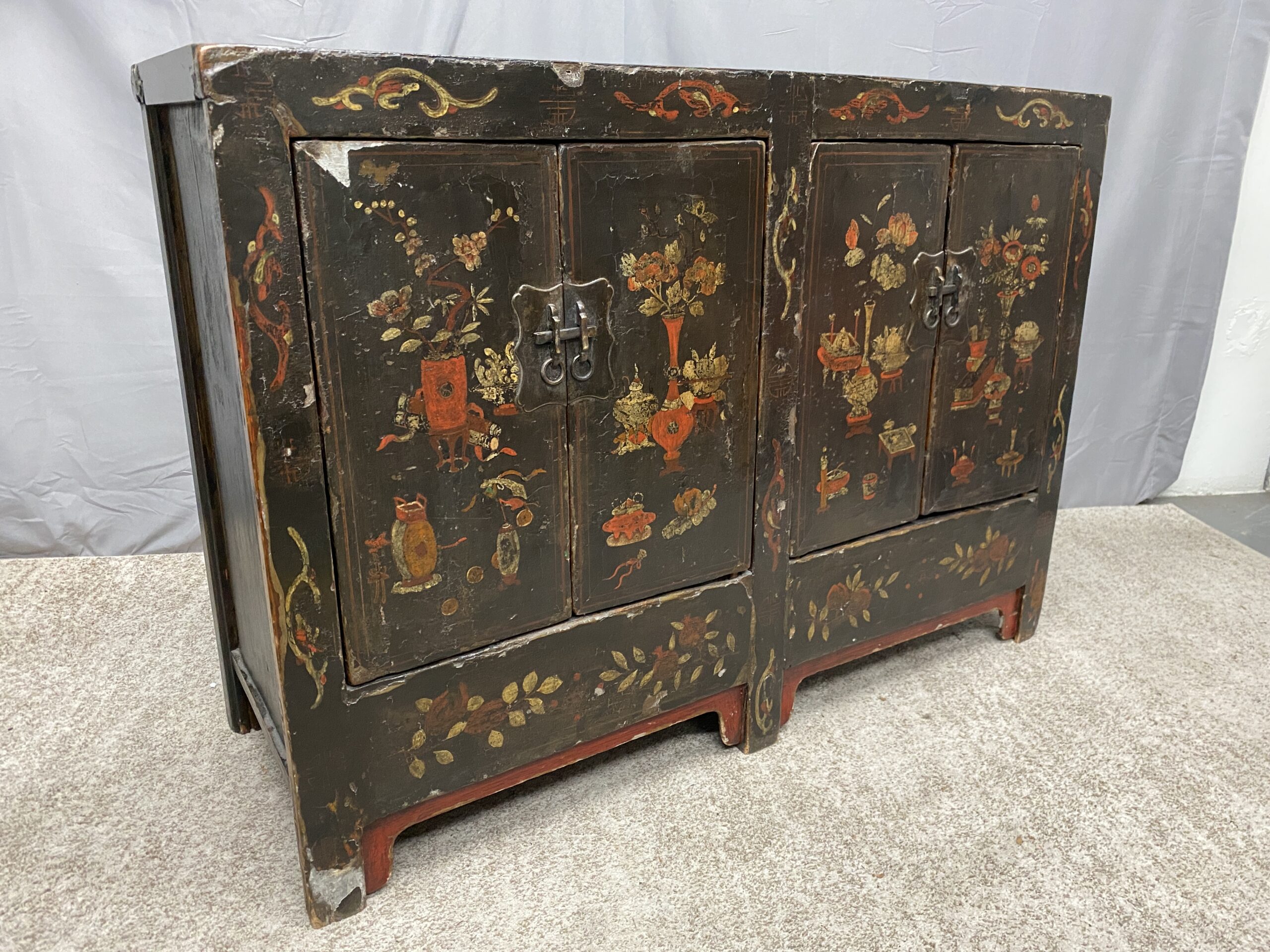 Vintage Painted Dark Wood Cabinet