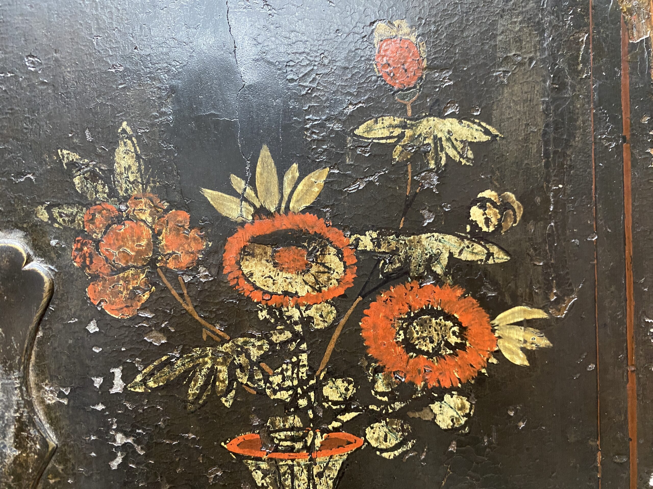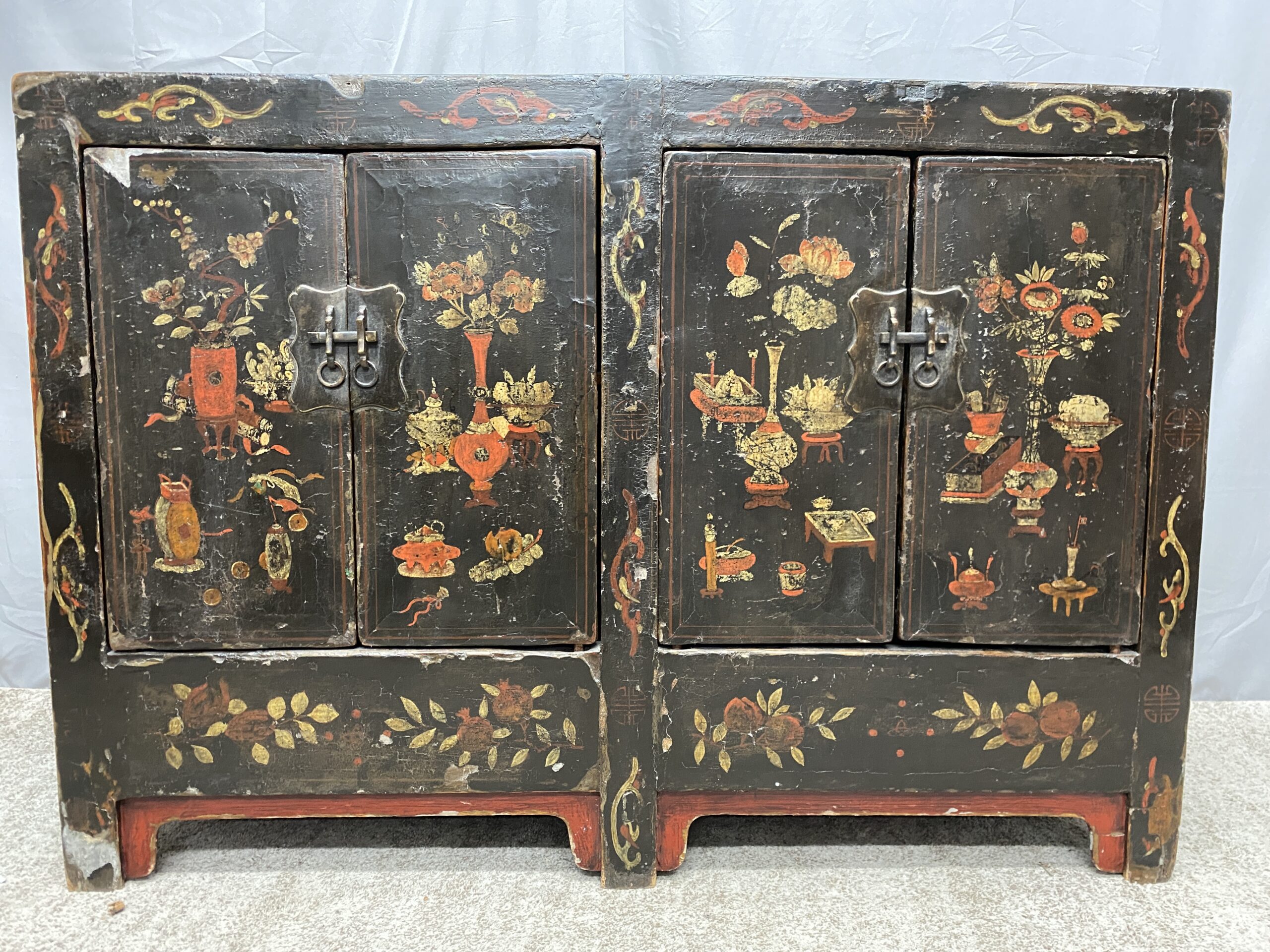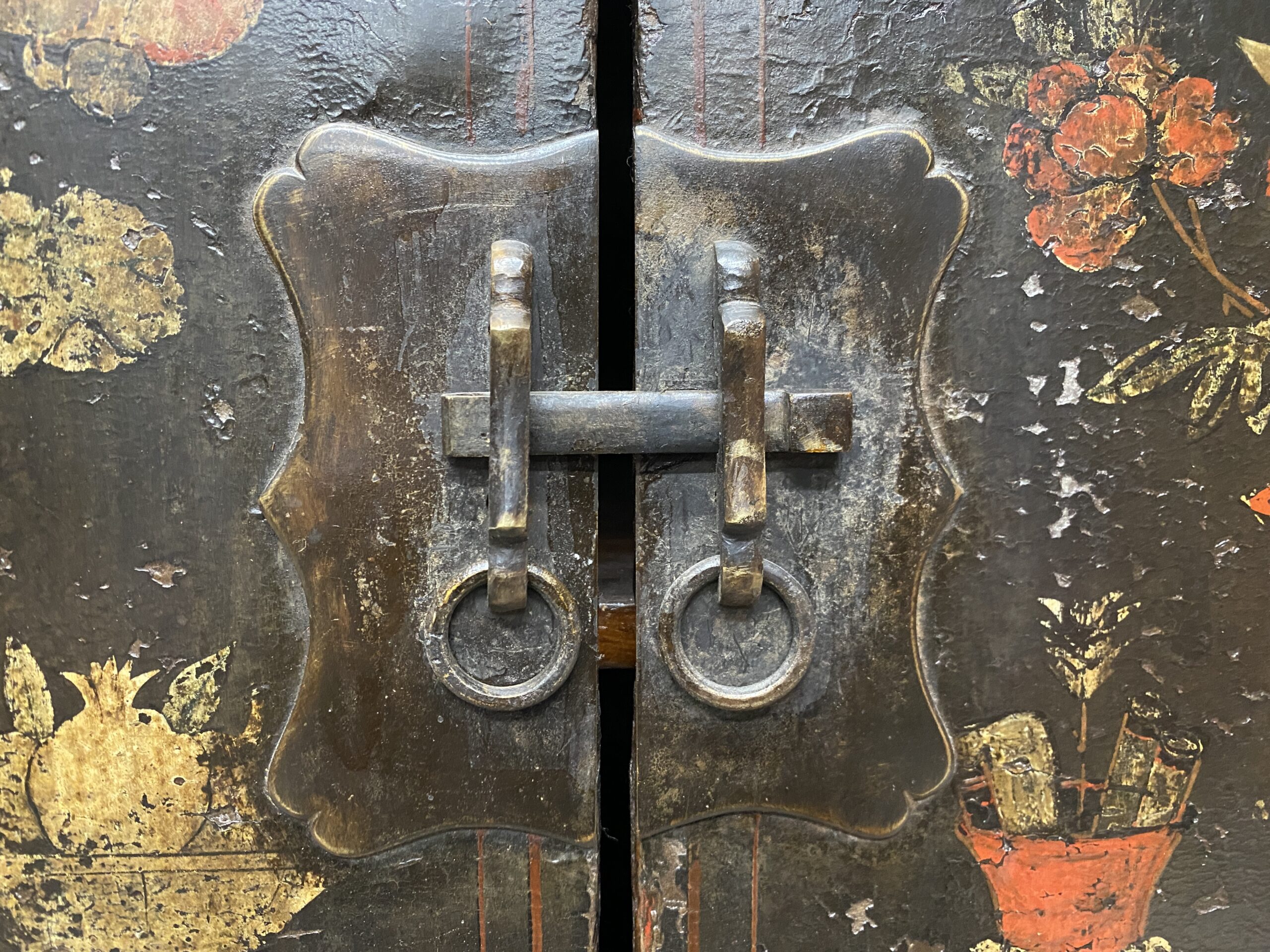 Vintage Painted Dark Wood Cabinet