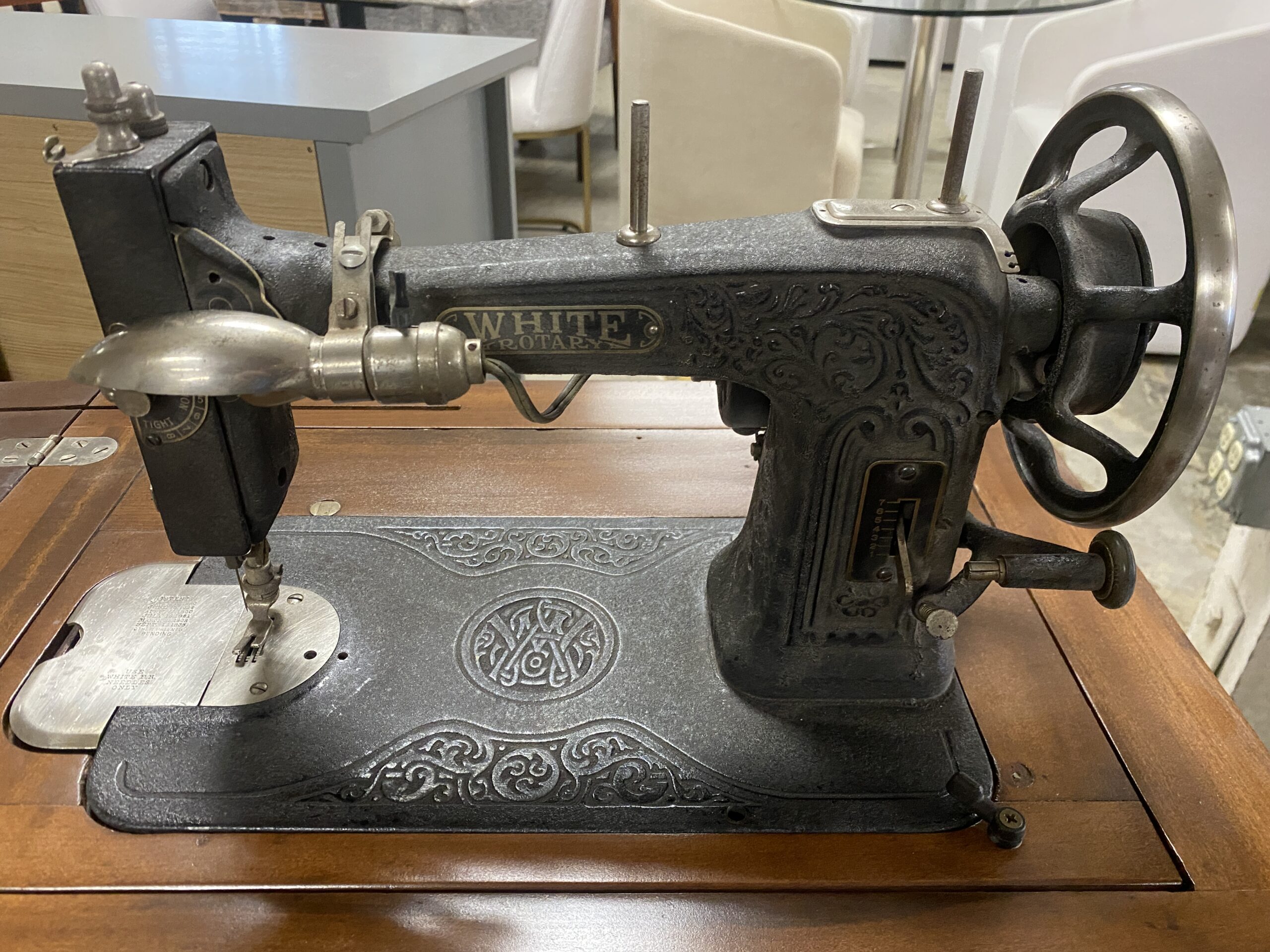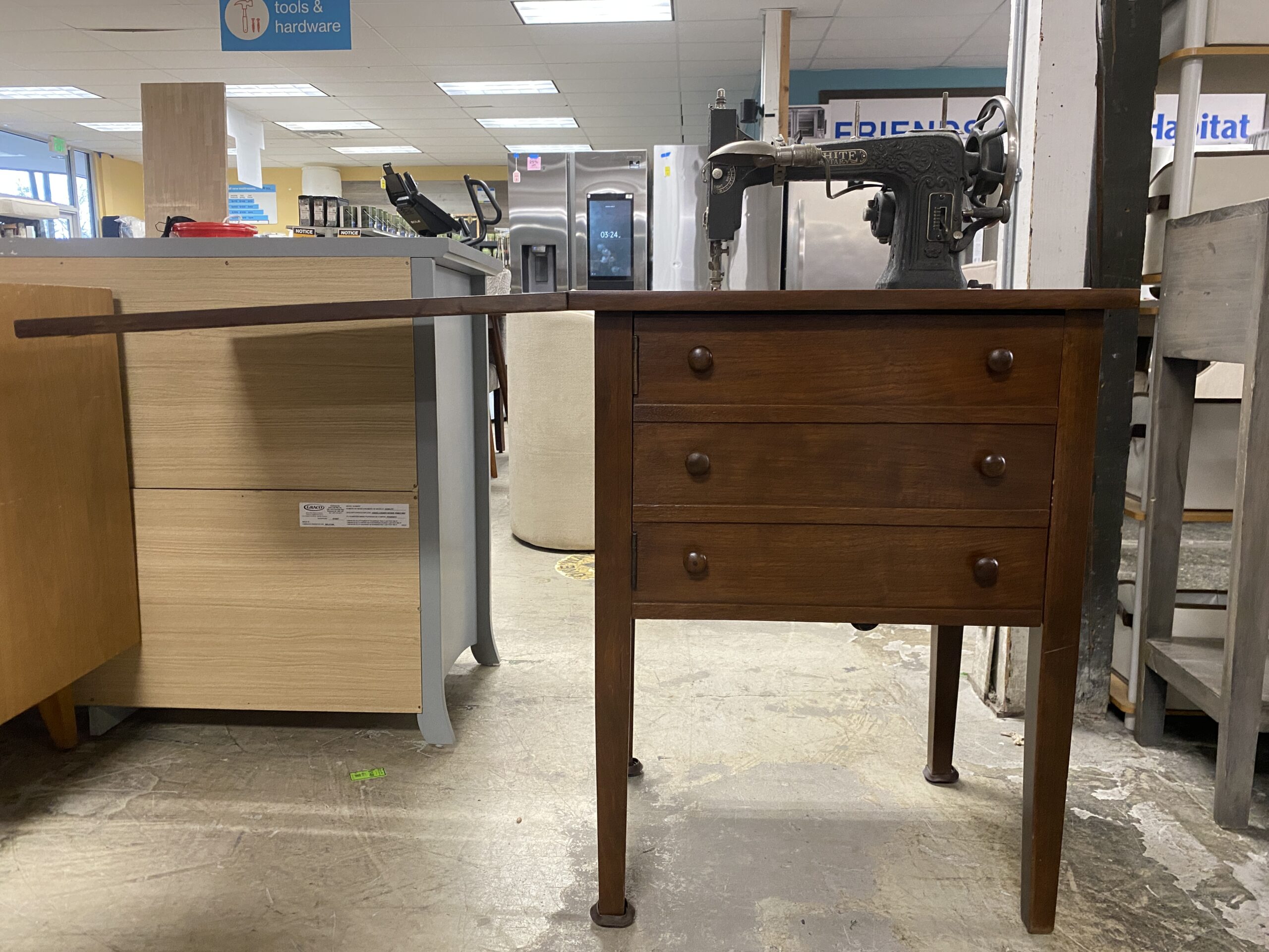 WHITE Antique Sewing Machine Table